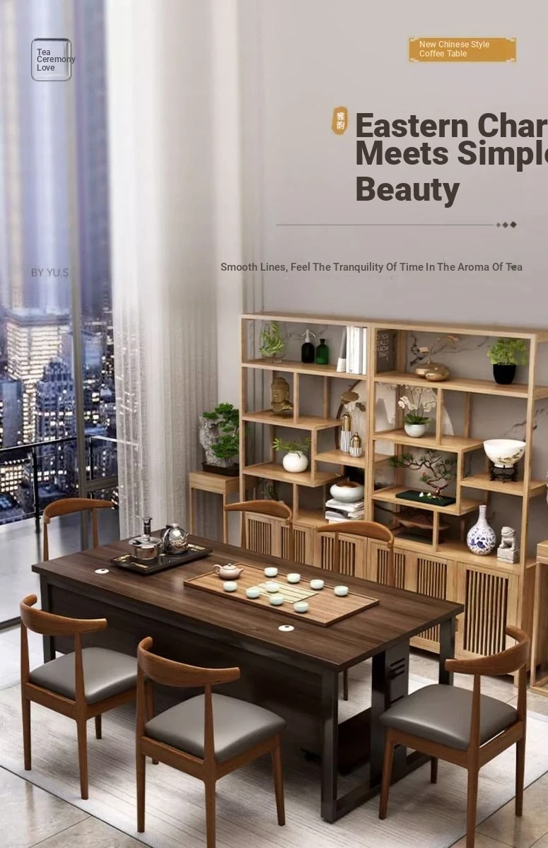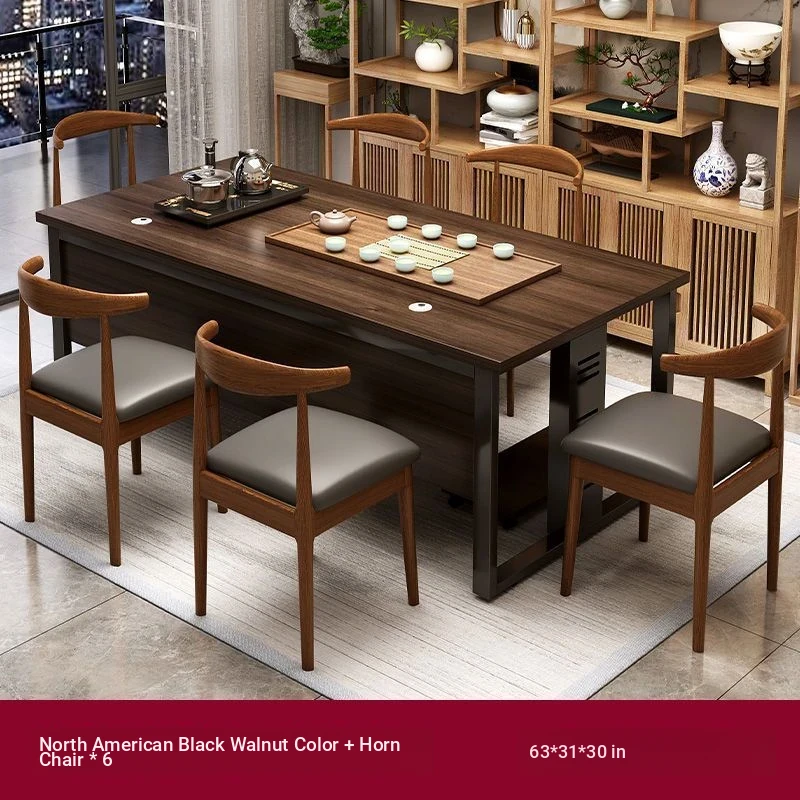 [One Table and Six Chairs] Black Walnut Color 55.12 in