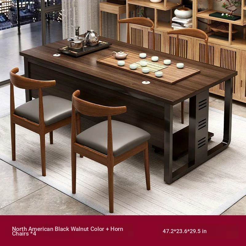 [One Table and Four Chairs] Black Walnut Color 47.24 in