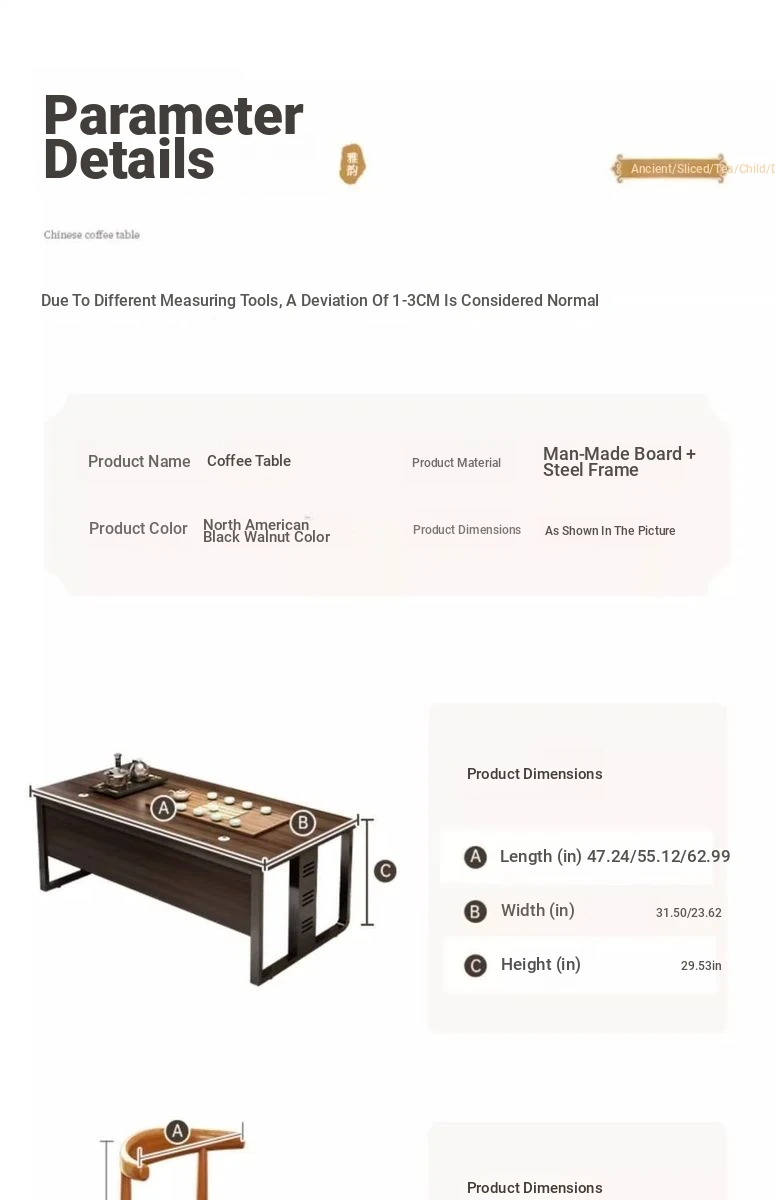 Recoinend [Table 3 chairs] black walnut color 55.12 ins