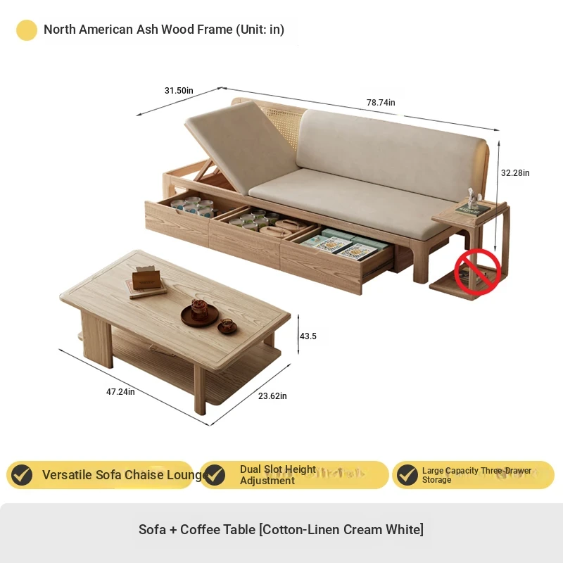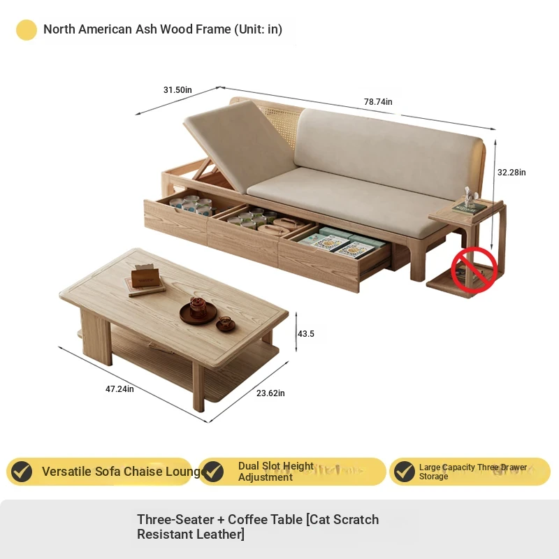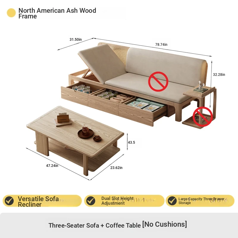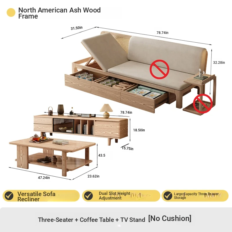 Three people 78.74 ins + tea table + TV cabinet [no cushion]♤♤--------------------------------------------------------------------------------------------