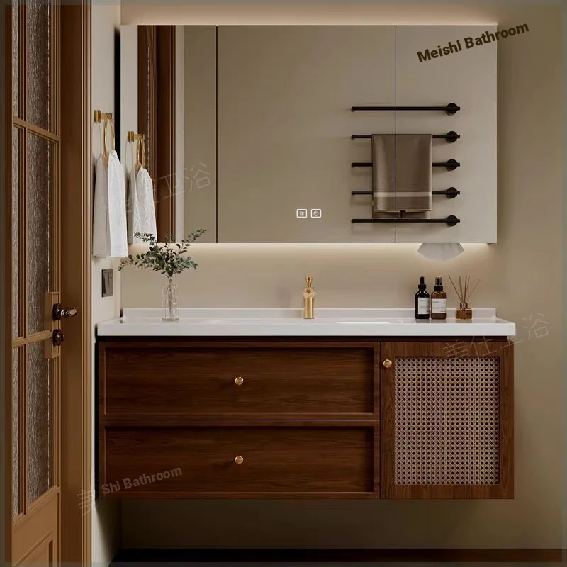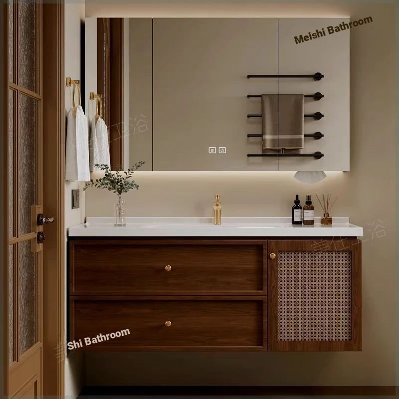 Smart mirror cabinet + ceramic integrated basin-oak 47.24in