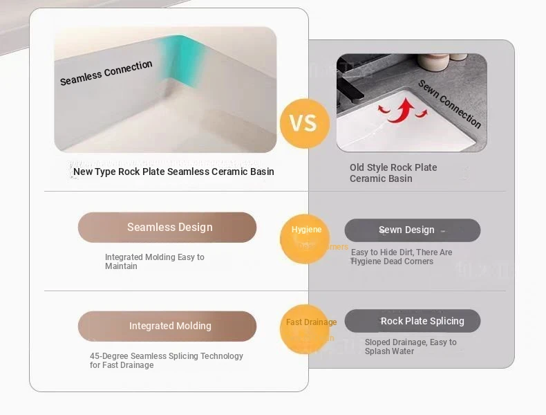 Intelligent mirror cabinet + Rock plate seamless Basin-Oak 43.31in