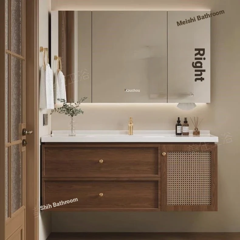 Intelligent mirror cabinet + Rock seamless Basin-oak 47.24in