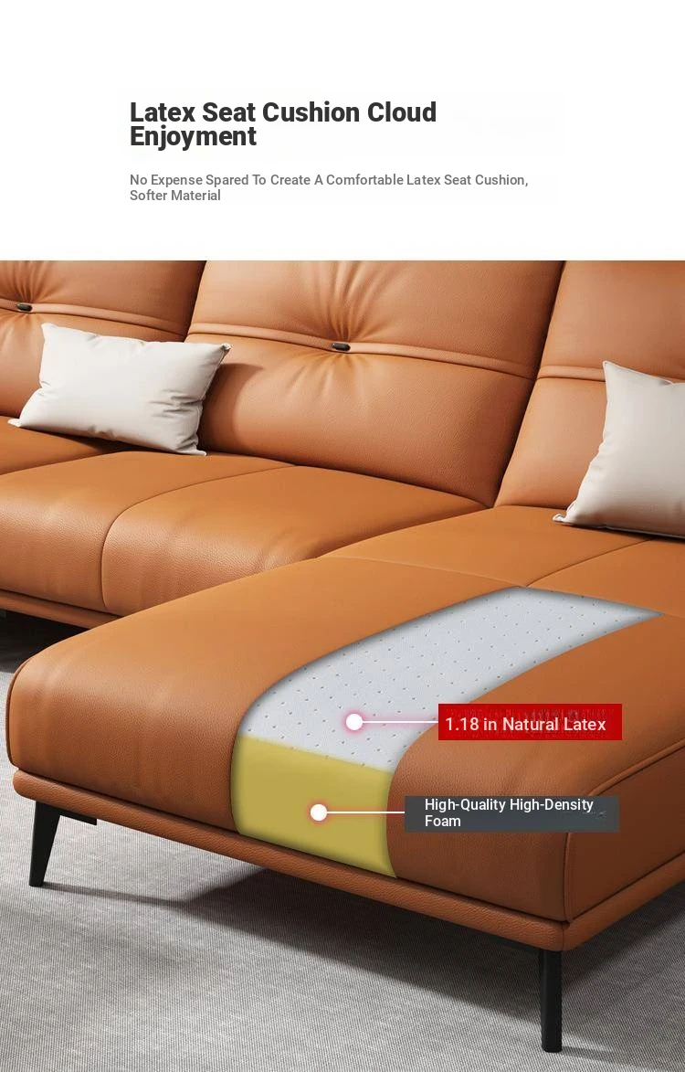 Genuine Leather Italian Minimalist Corner Sofa – Modern Luxury for Small to Medium Living Rooms – Top-Grain Cowhide with Latex Comfort