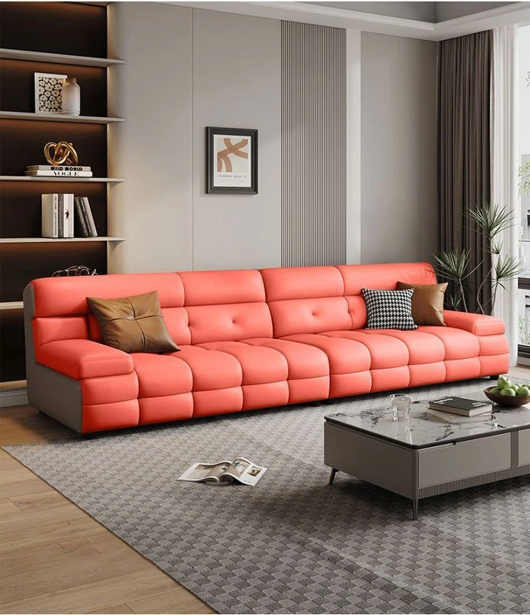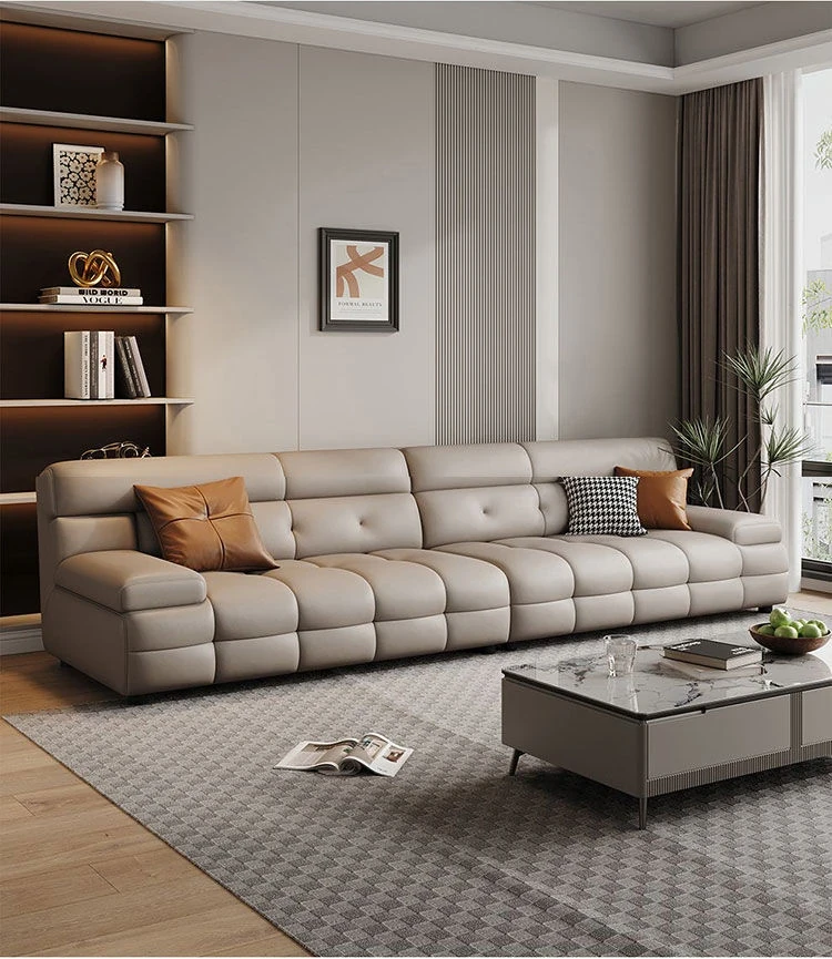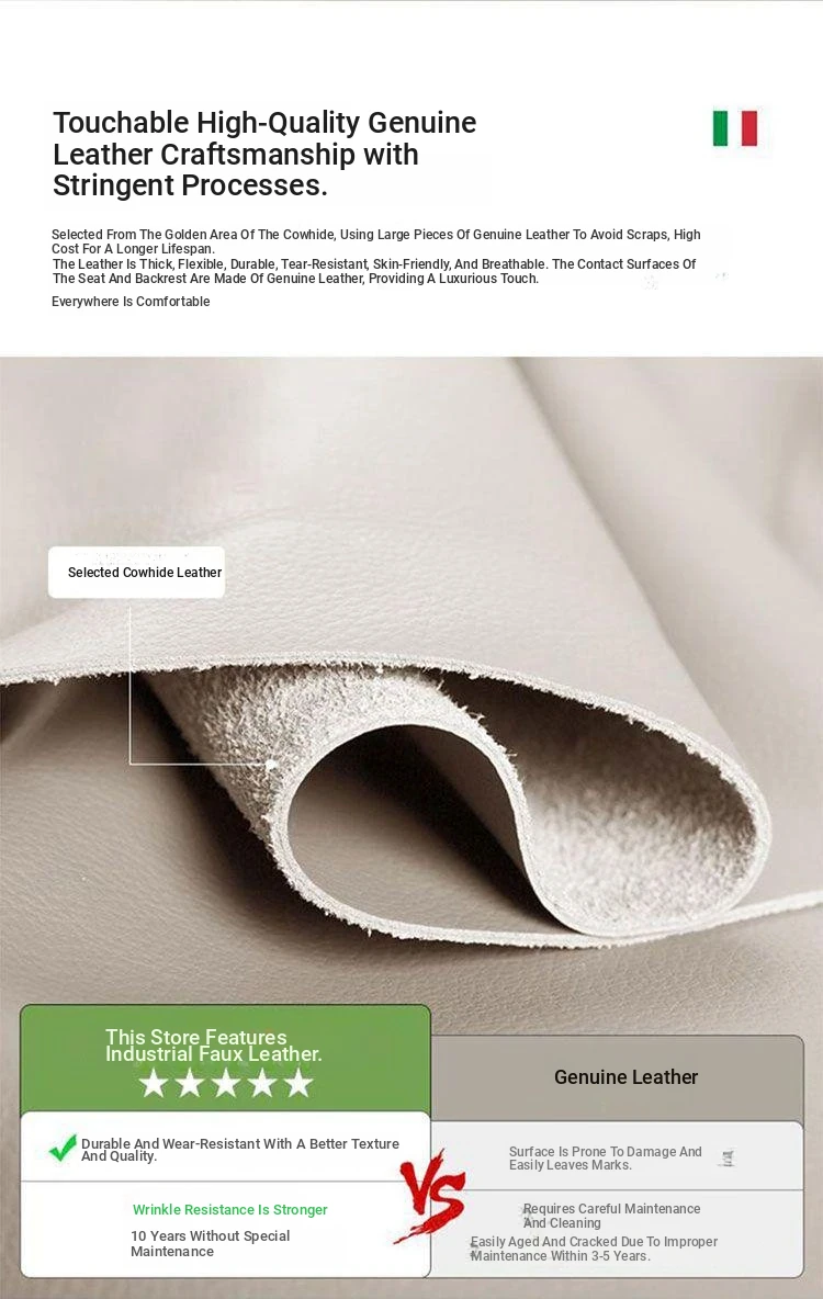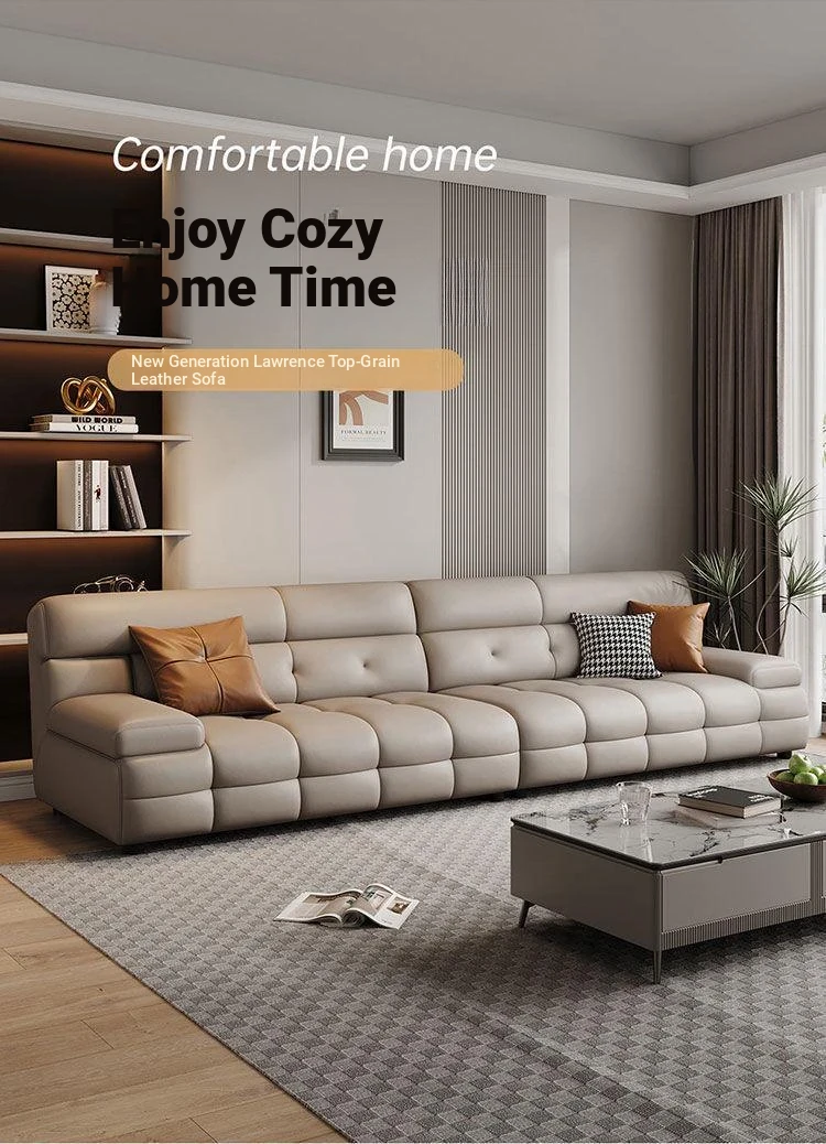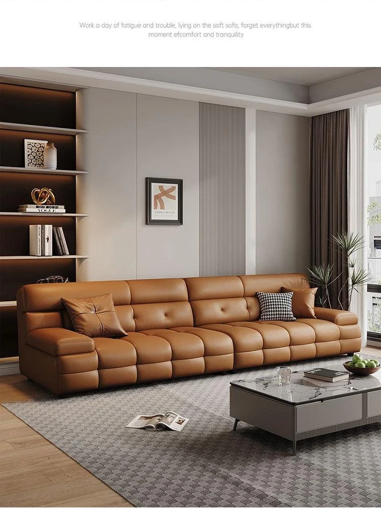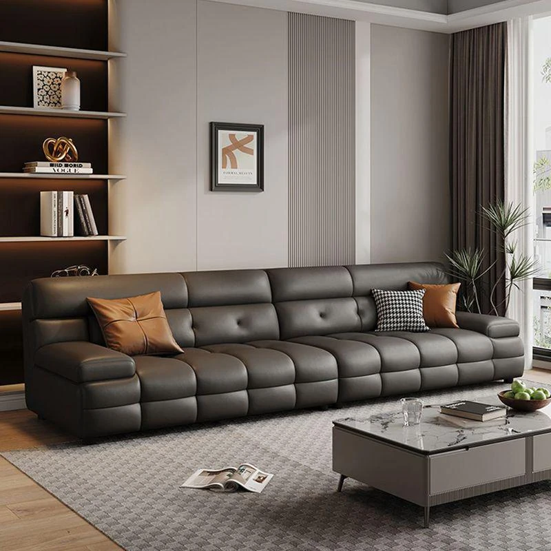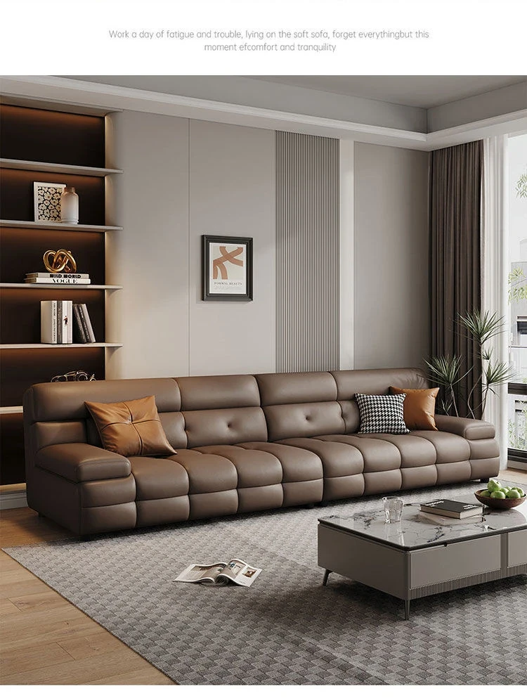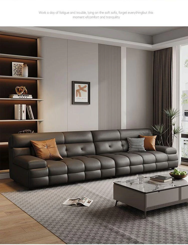 Genuine Leather Sofa - Modern Minimalist Design for Living Rooms, Featuring Top-Grain Cowhide, Perfect for Any Home Size and Style