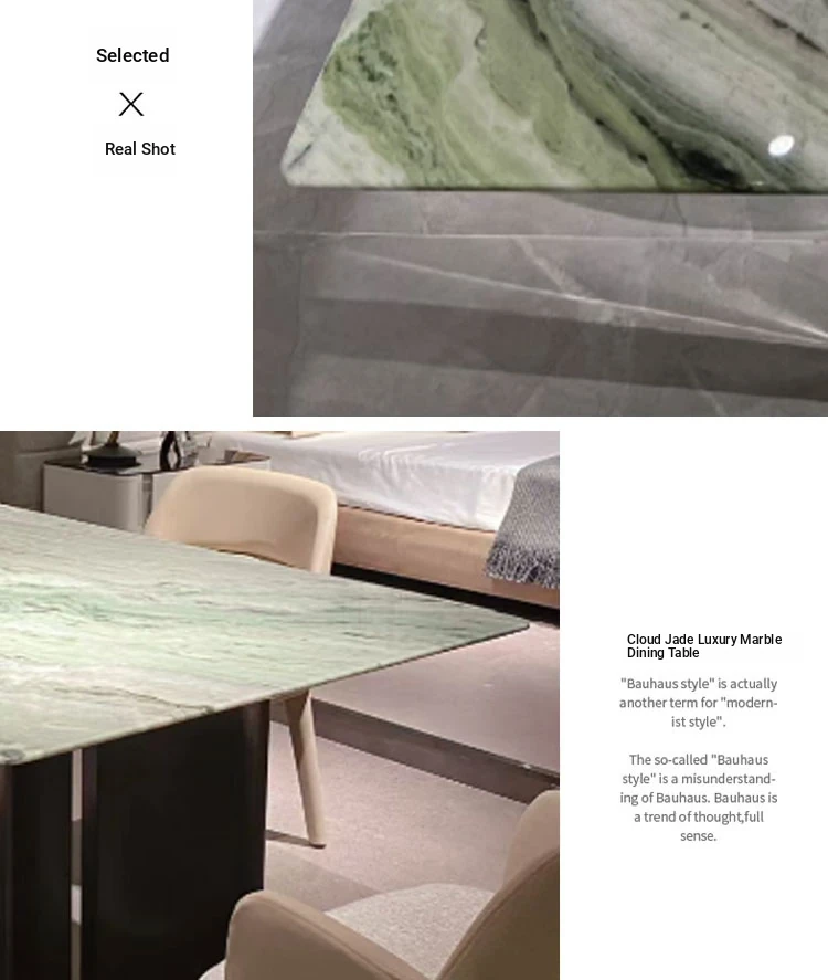 Luxury Designer Rectangular Dining Table in Natural Marble - Premium Jade Cloud Collection for High-End Homes, Perfect for Spacious Living Areas