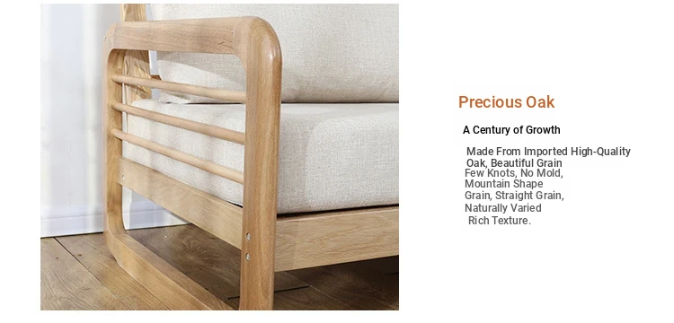 Manufacturer Direct Supply Solid Wood Sofa Set for Small Spaces - Washable Fabric Sofa with White Oak Finish - Perfect Living Room Furniture Solution