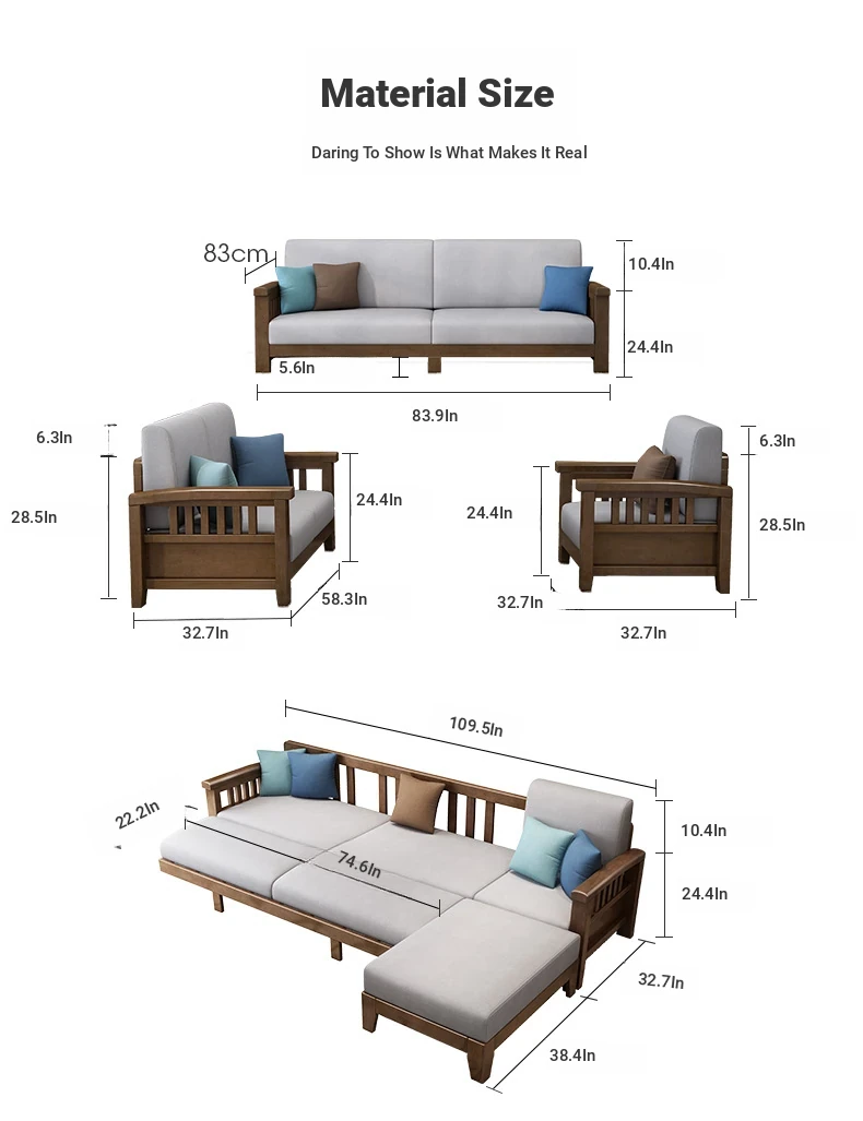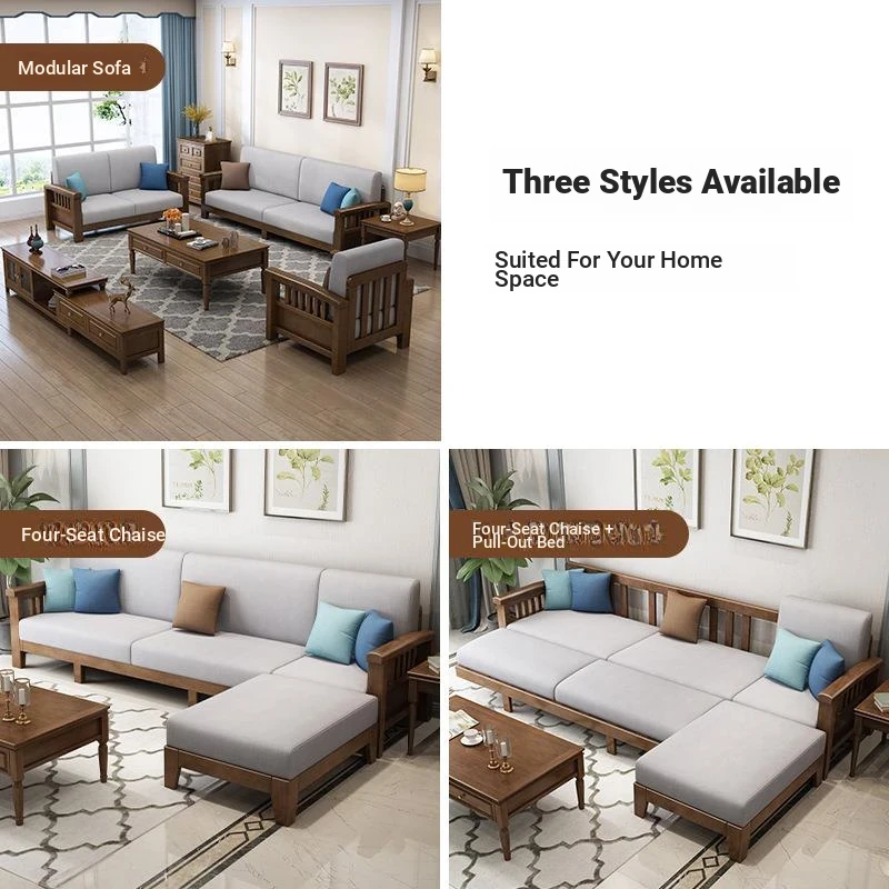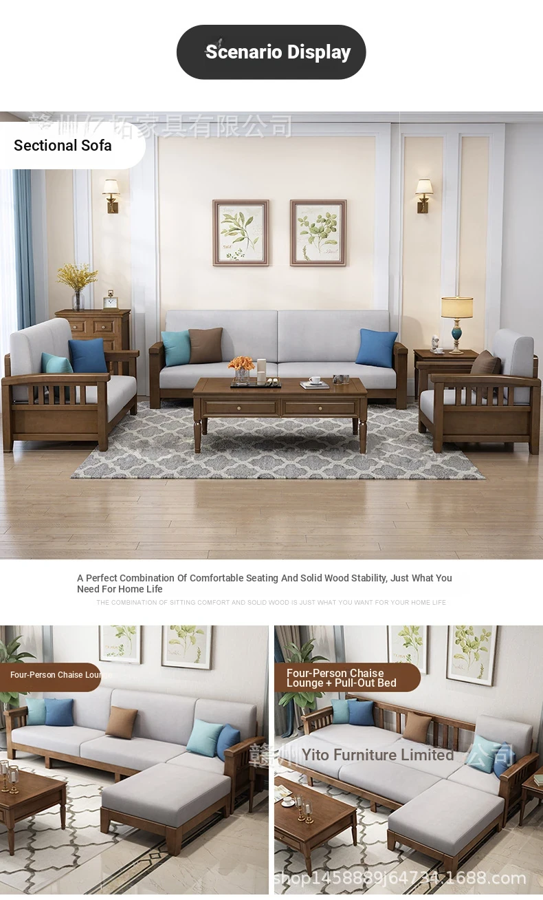 Modern American Solid Wood Sofa Set - Stylish Fabric Corner Chaise Lounge for Small Spaces - Perfect Minimalist Furniture for Your Living Room