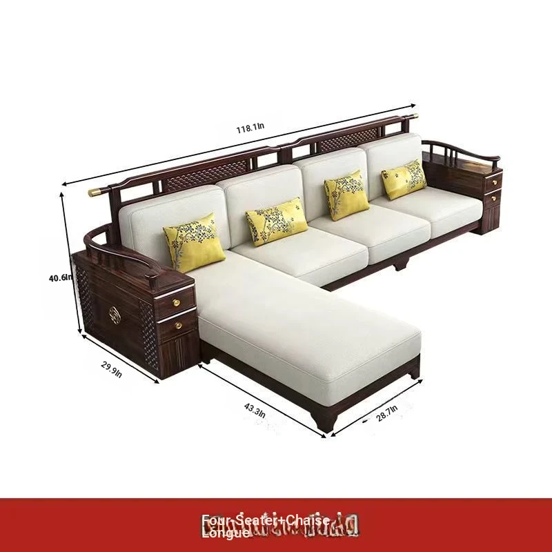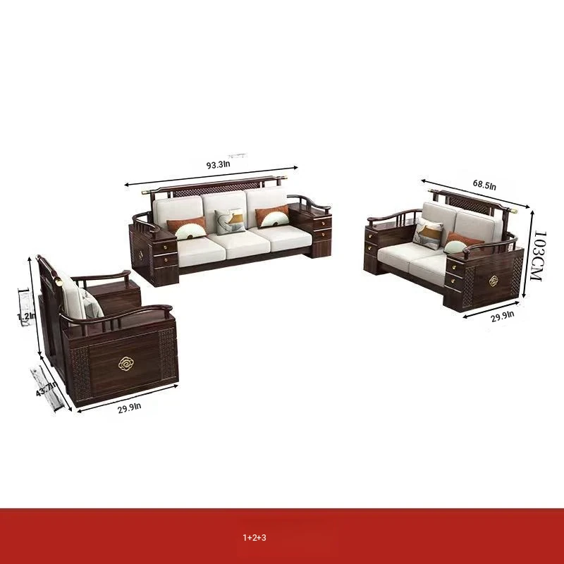 Modern Chinese Minimalist Solid Blackwood Sofa Set - Elegant Zen Living Room Furniture for All Sizes