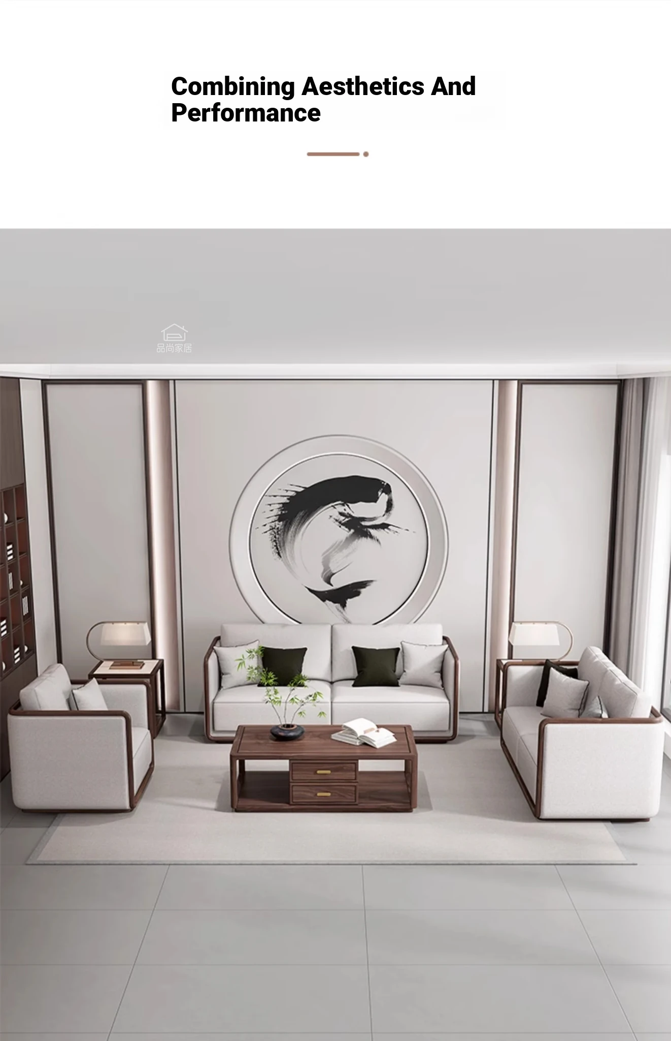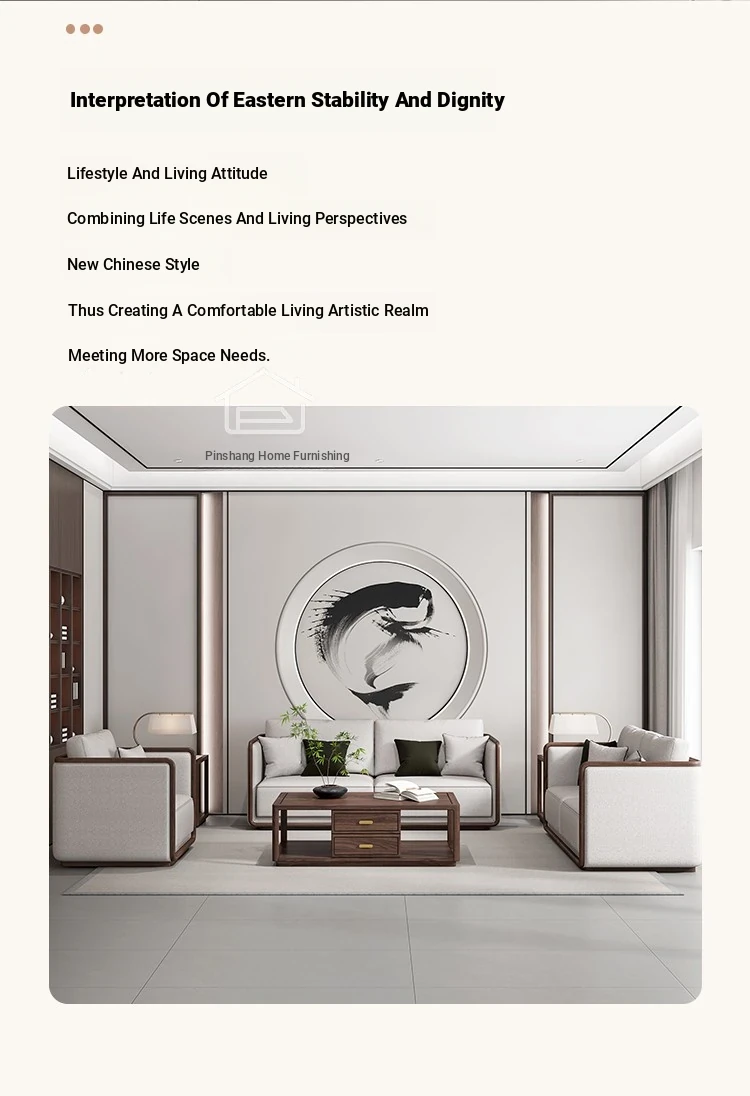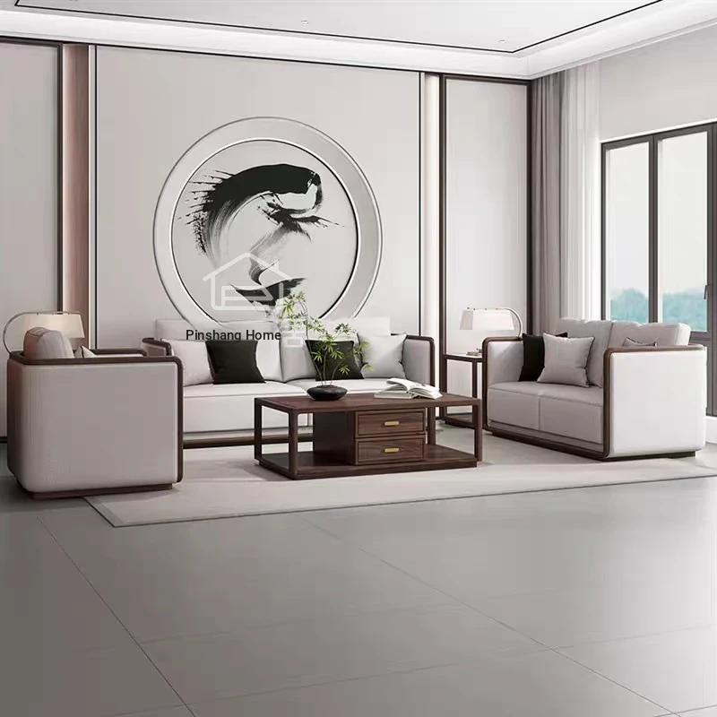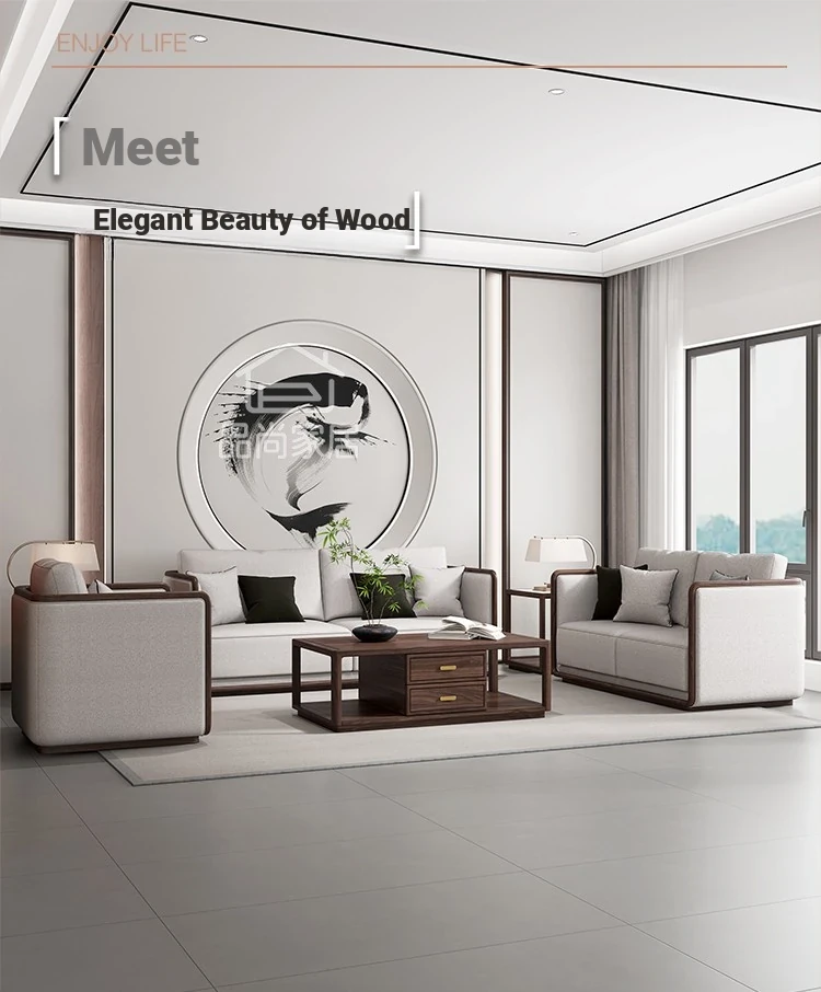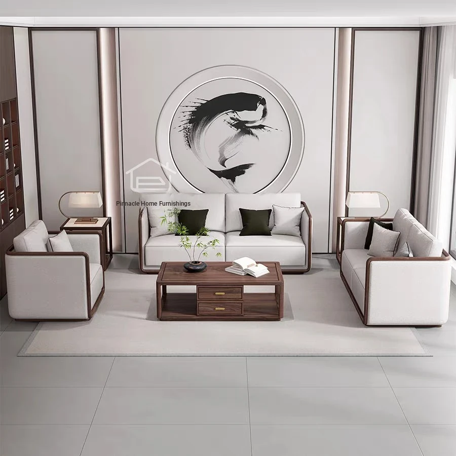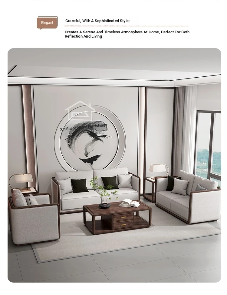 Modern Chinese Style Office Sofa Set - Elegant Solid Wood and Fabric Combination for Hotel and Villa Living Rooms - Minimalist Guest Lounge Furniture