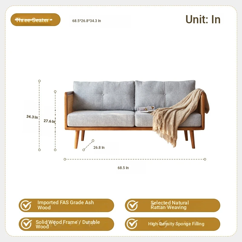 Modern Chinese Style Rattan Backrest Sofa - Versatile Summer & Winter Use, Solid Wood Three-Seater for Living Room and Balcony, Ideal for Guesthouses and Homes in Foshan