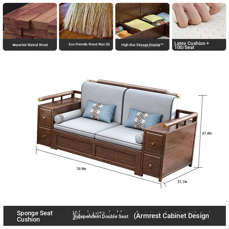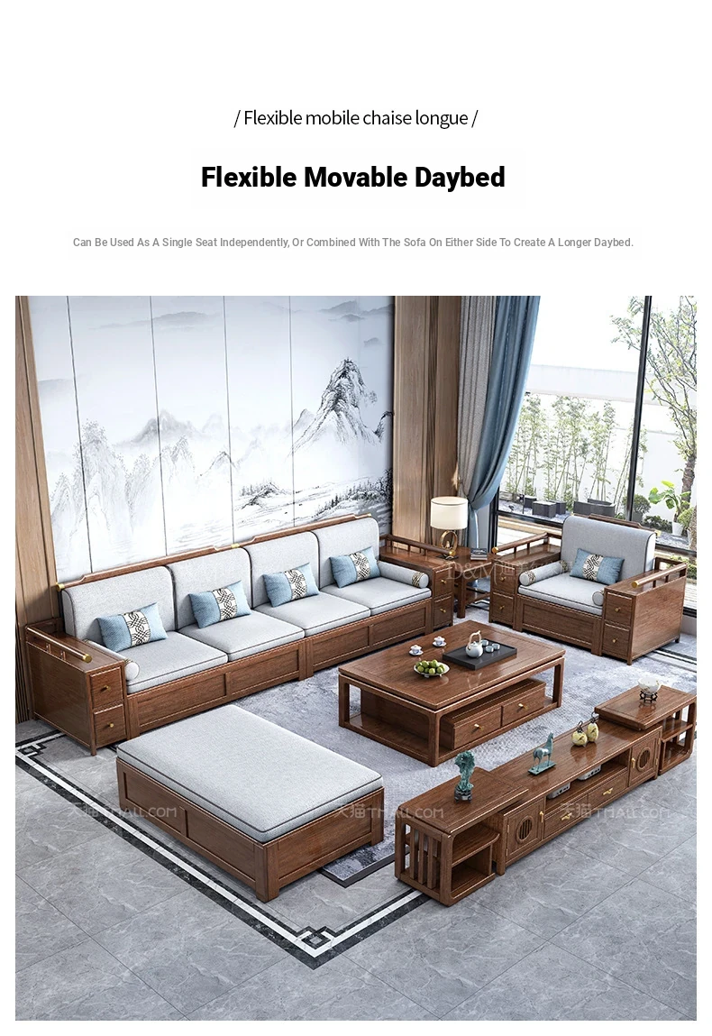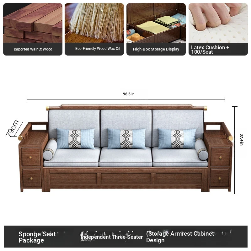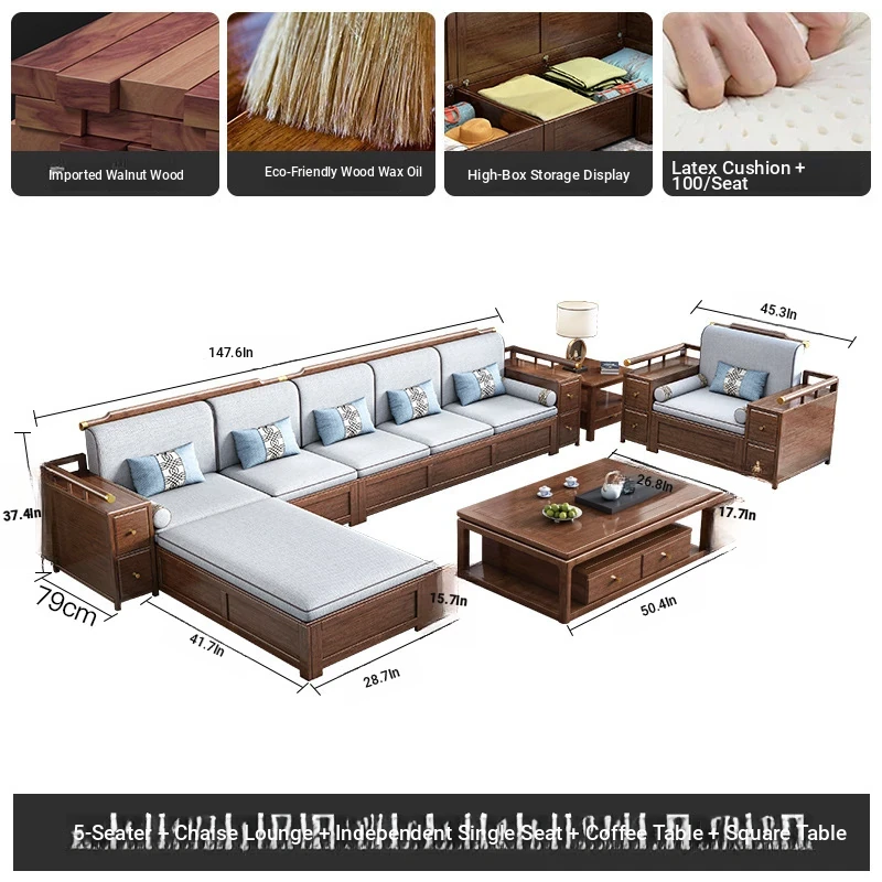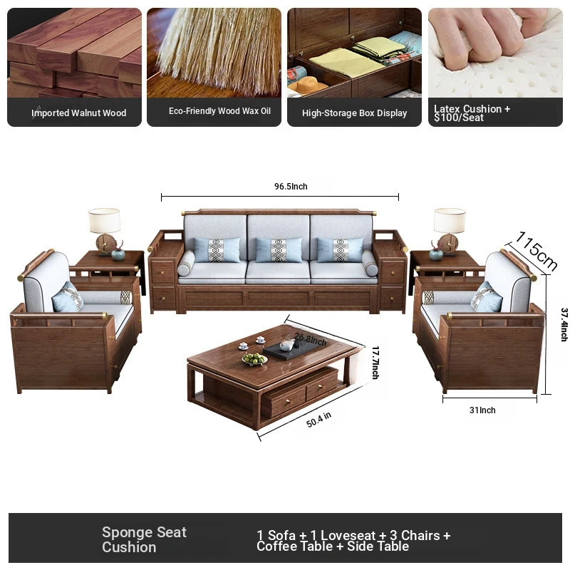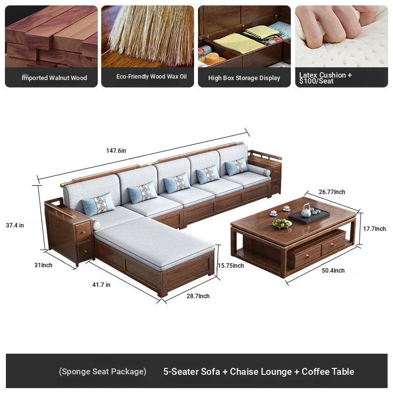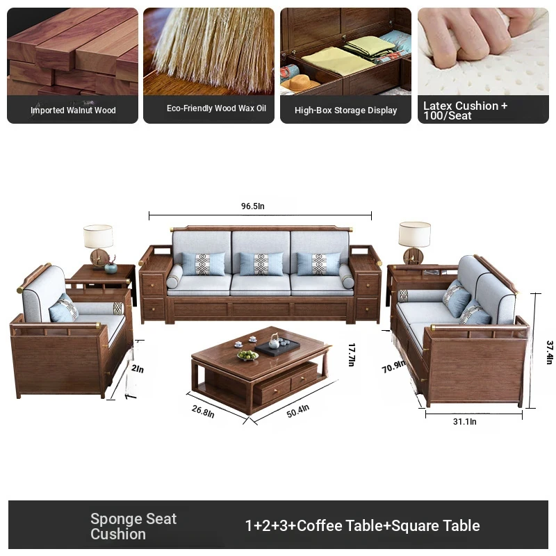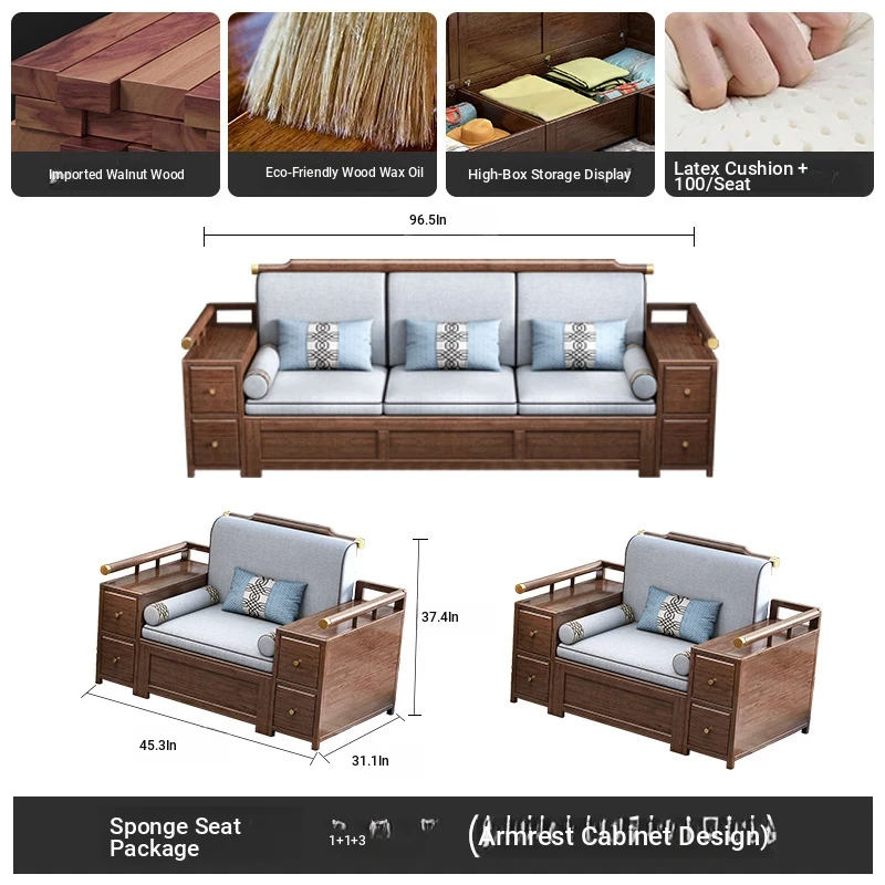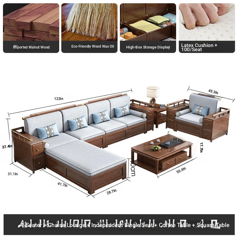 [Sponge Seat Bag] Three-person Seat + Imperial Concubine Collapse + Tea Table + Square Table (Design of Storage Armrest Cabinet)