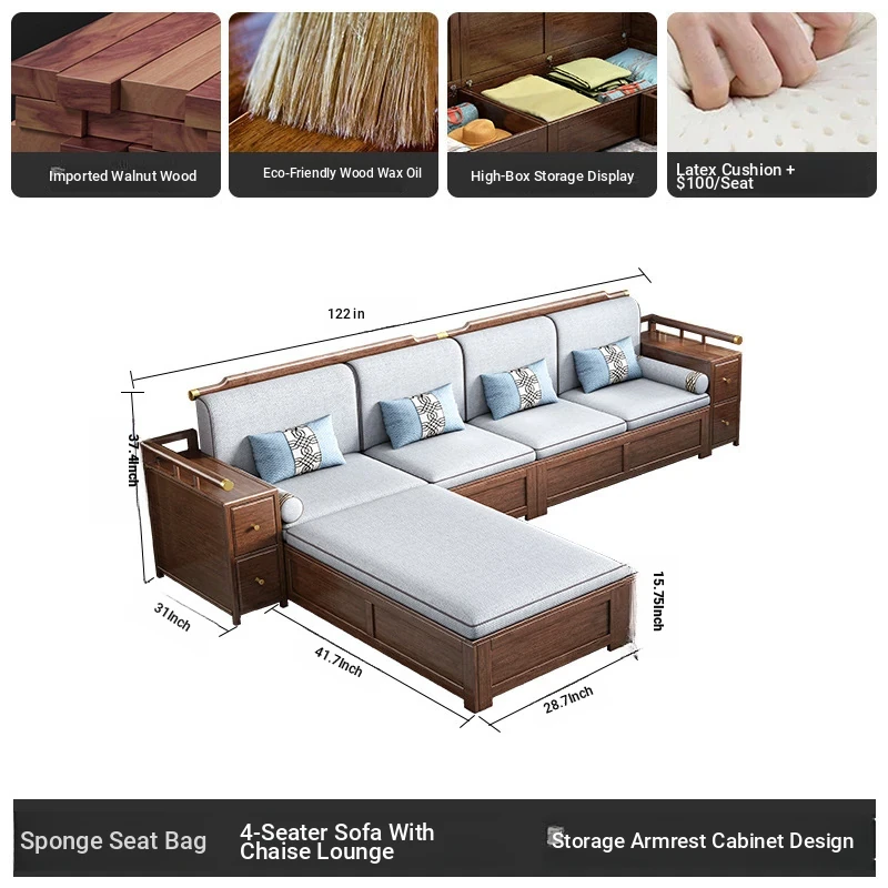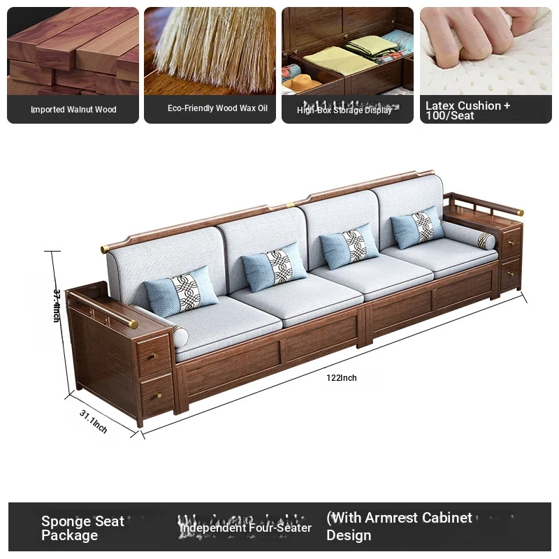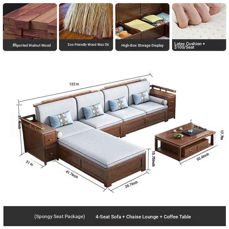 [Sponge Seat Bag] Four Persons + Imperial Concubine Collapse + Tea Table + Square Table (Design of Storage Armrest Cabinet)