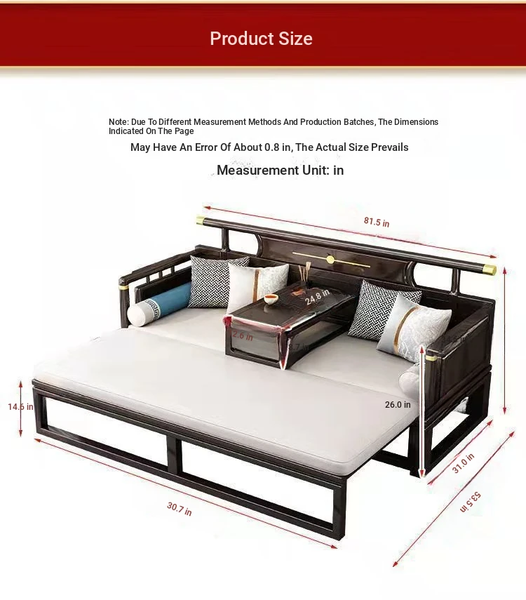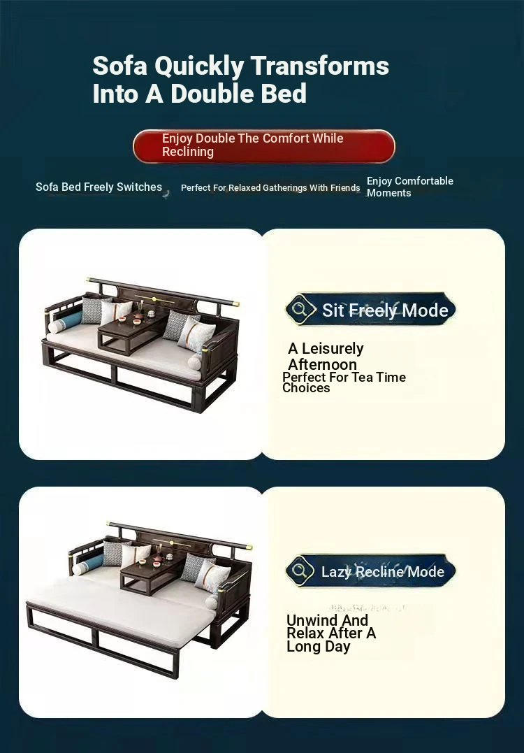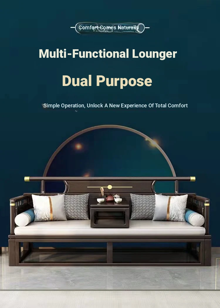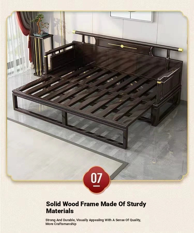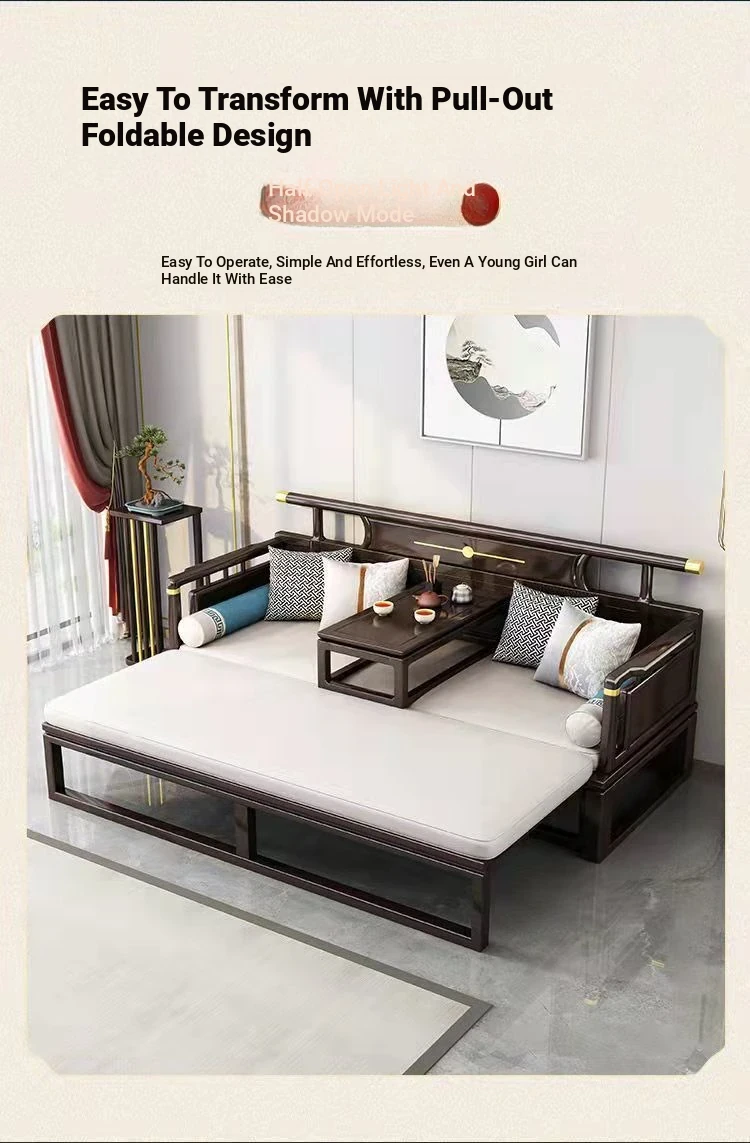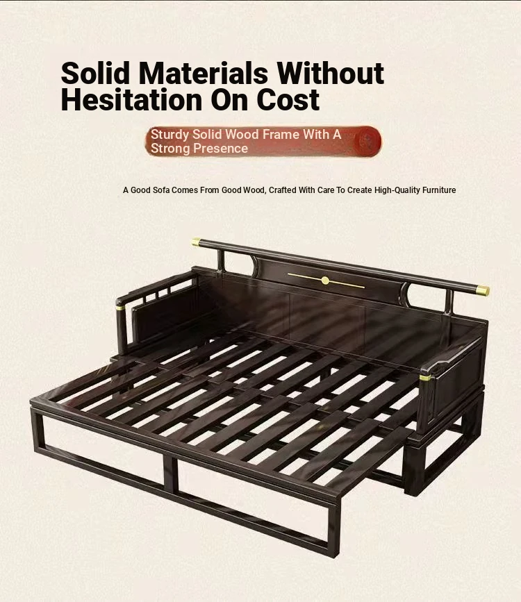 Modern Chinese Style Solid Wood Luohan Bed - Versatile Sofa Bed for Living Room, Ideal for Small and Large Spaces, Minimalist Design with Expandable and Pull-Out Features