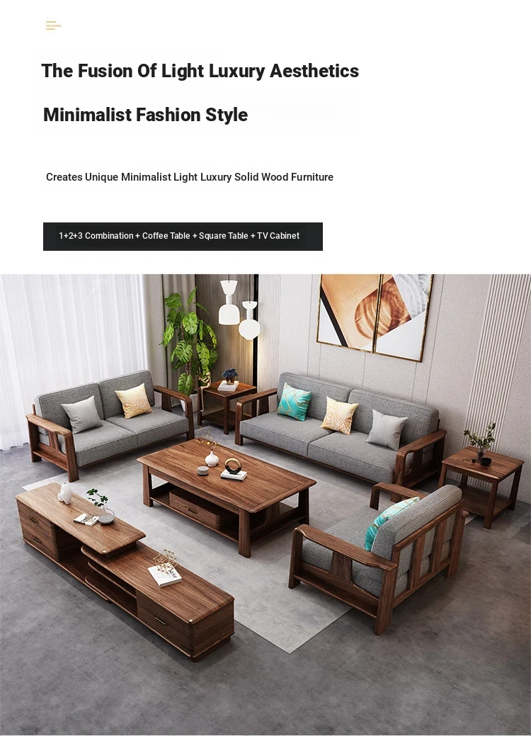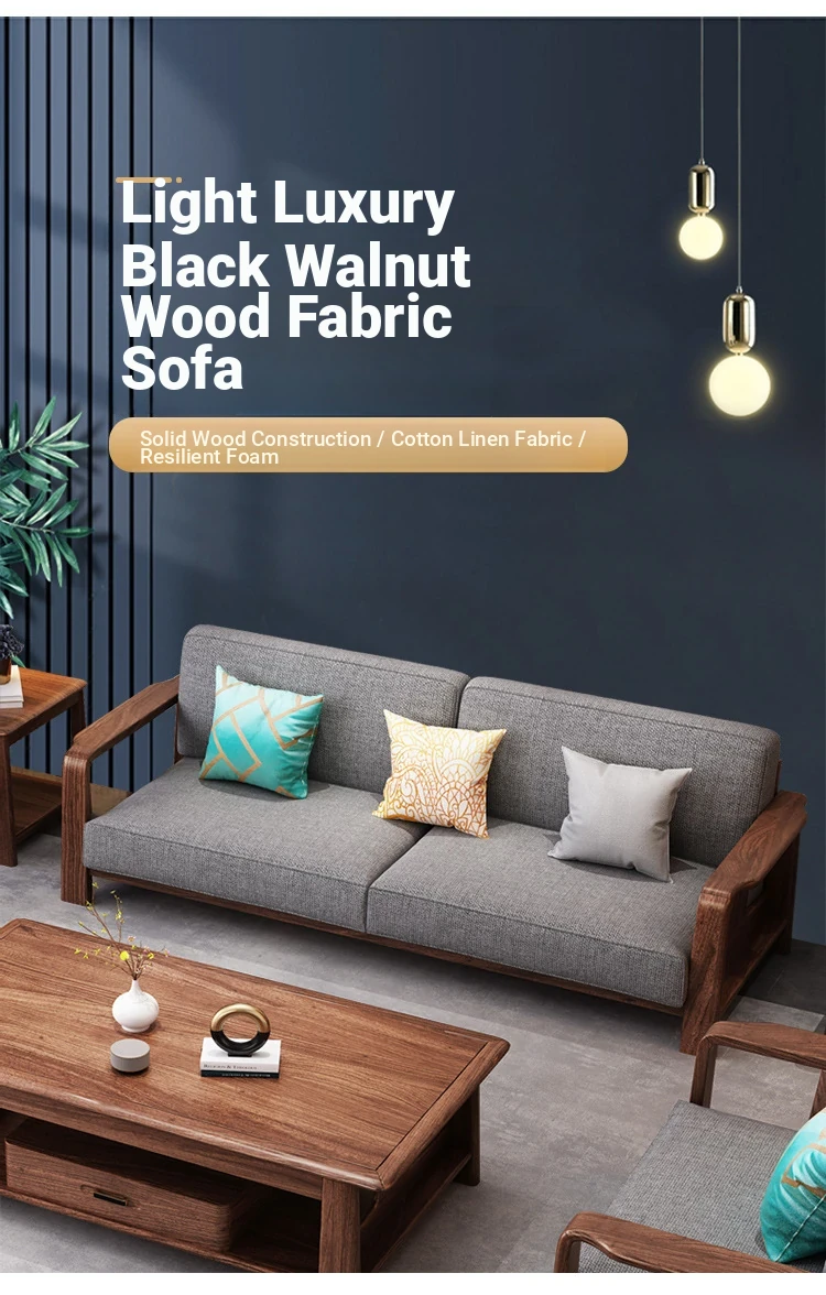Modern Chinese Style Solid Wood Sofa Set - 1+2+3 Configuration, Elegant Wu Jin Wood and Fabric Design for Living Room Furniture, Perfect Blend of Tradition and Comfort