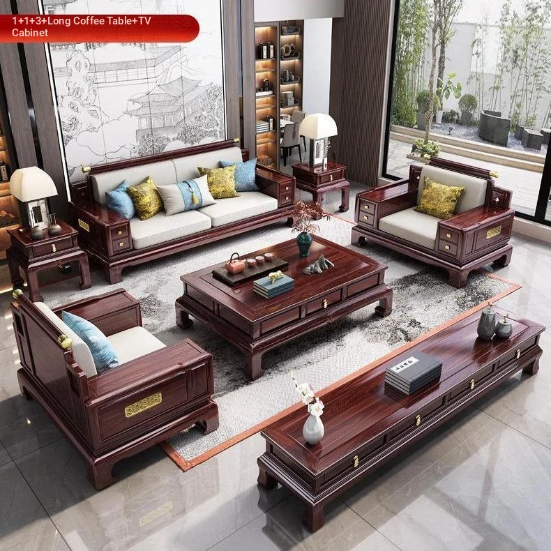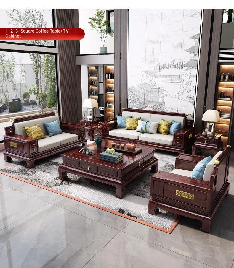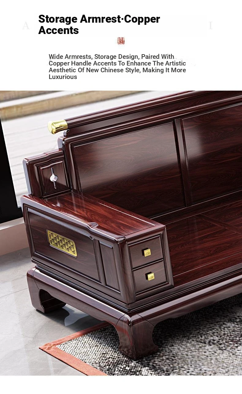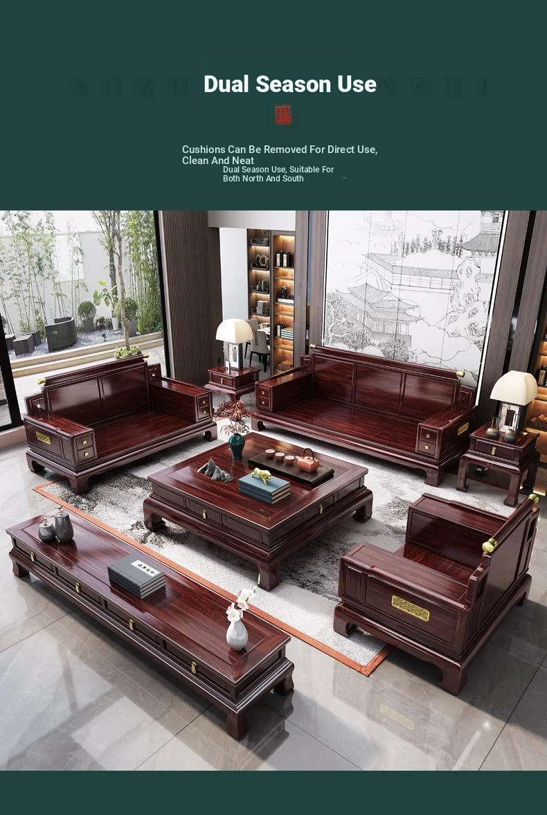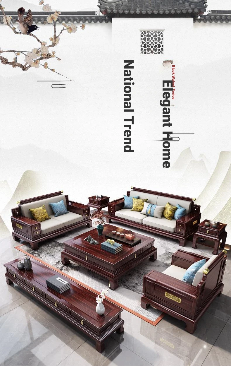 Modern Chinese-Style Blackwood Sofa – Elegant New Classical Design for Spacious Living Rooms and Villas, Perfect for Year-Round Comfort, Crafted from Solid Wood.
