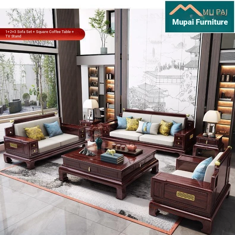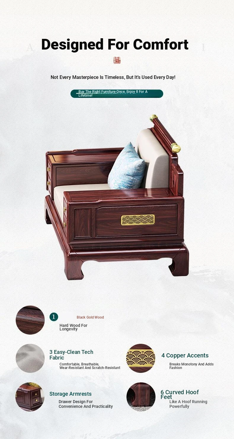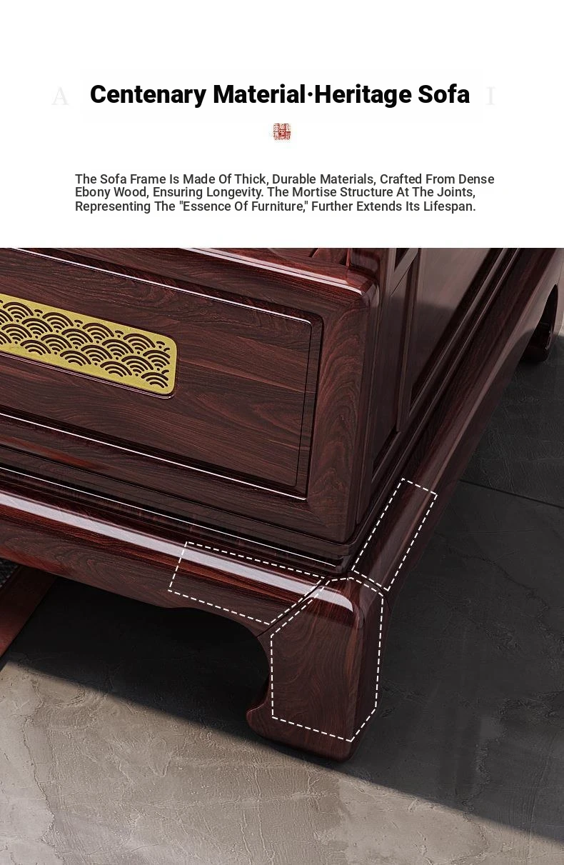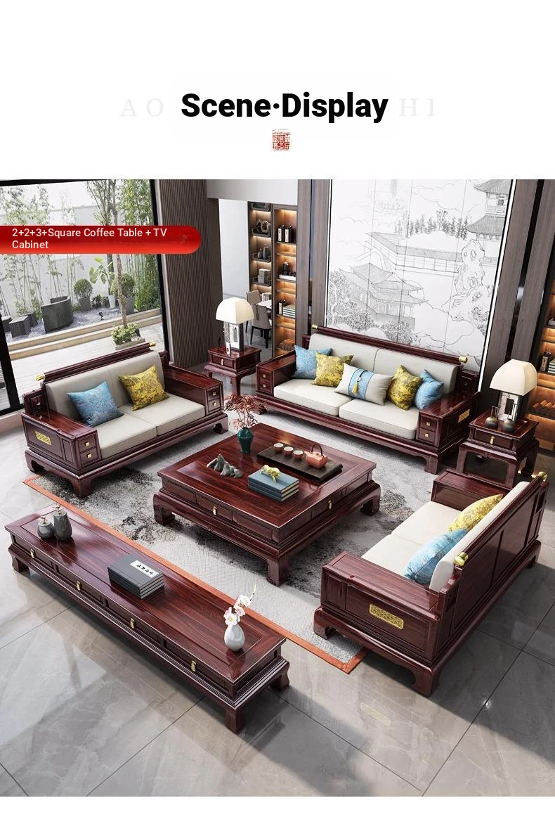 Modern Chinese-Style Blackwood Sofa – Elegant New Classical Design for Spacious Living Rooms and Villas, Perfect for Year-Round Comfort, Crafted from Solid Wood.