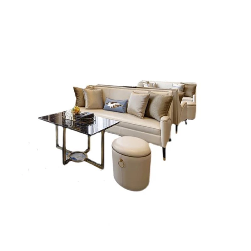 Modern Light Luxury Reception Sofa for Real Estate Sales Office – Minimalist Client Meeting Lounge Set with Signing Booth Table and Chairs – In Stock for Immediate Delivery