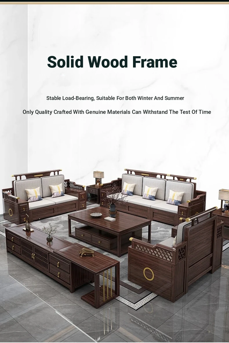 Modern Minimalist Blackwood Solid Wood Sofa - Versatile 3-Seater for Small Spaces, Ideal for Year-Round Use with Storage Features, Perfect for Contemporary Living Rooms.