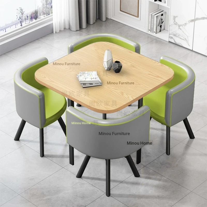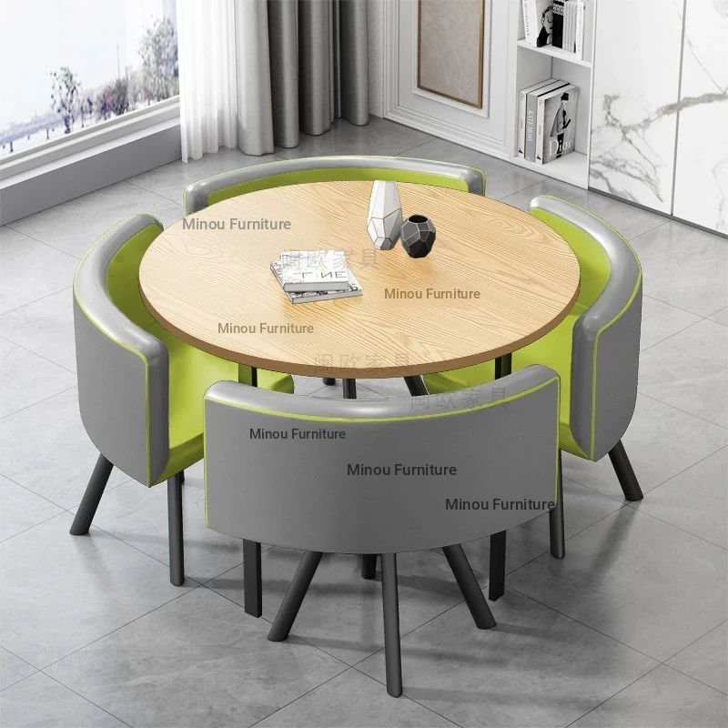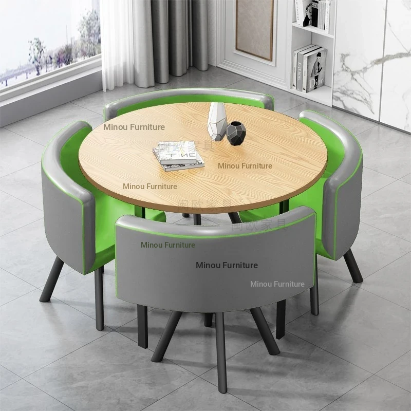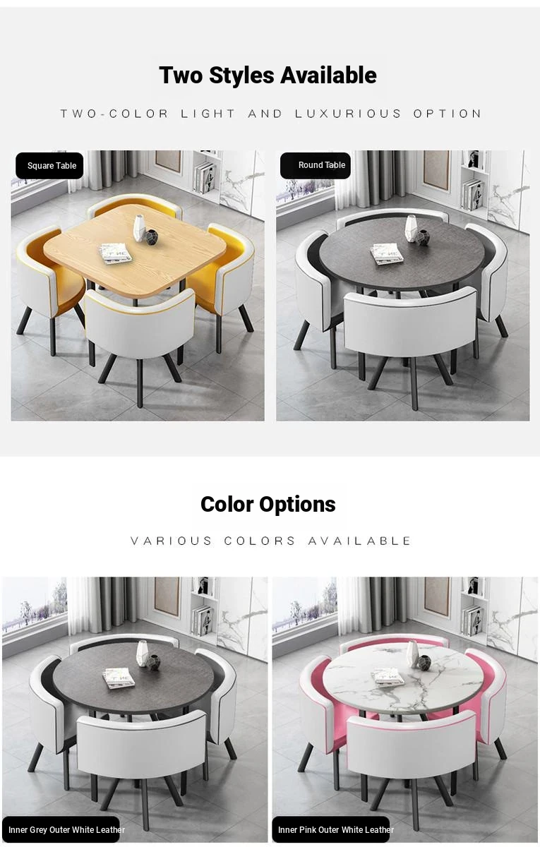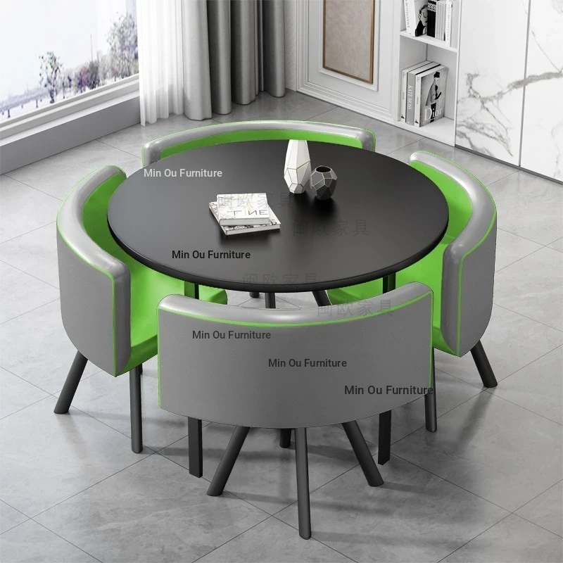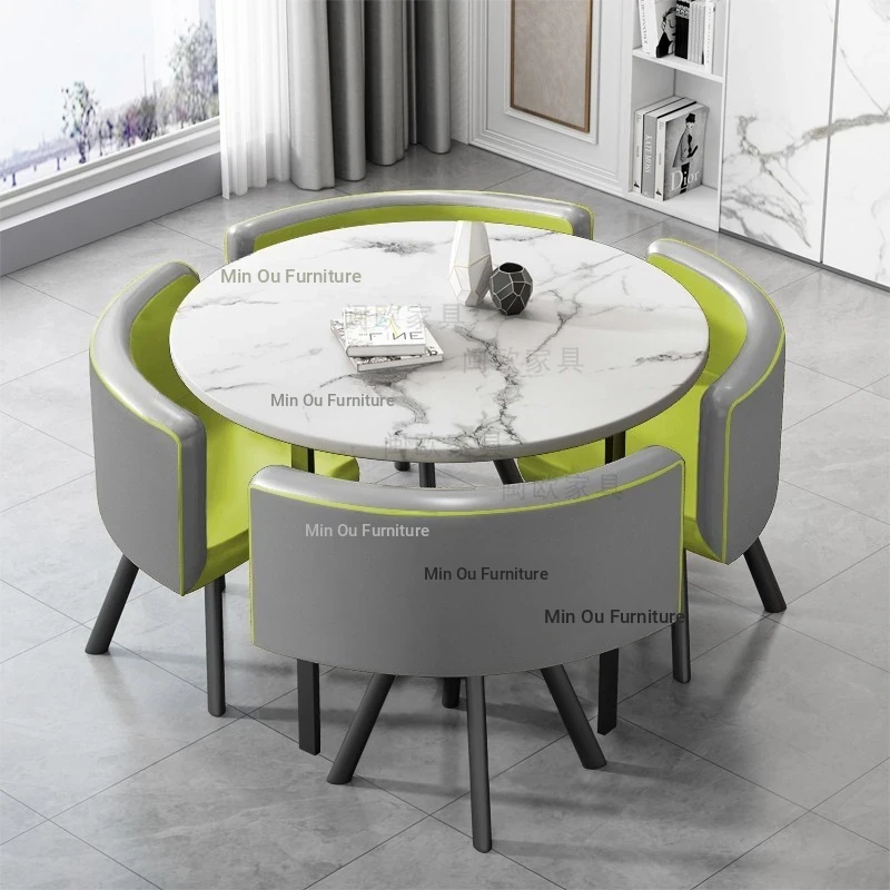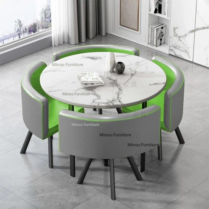 Inside light green Outside Grey Leather Chair Stone-like White Round Table