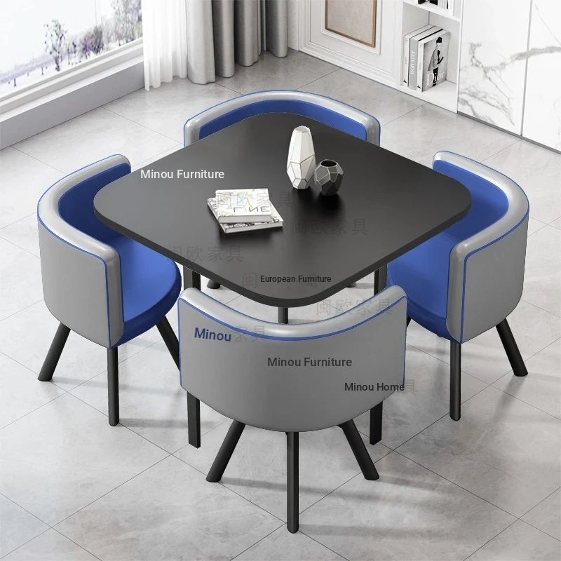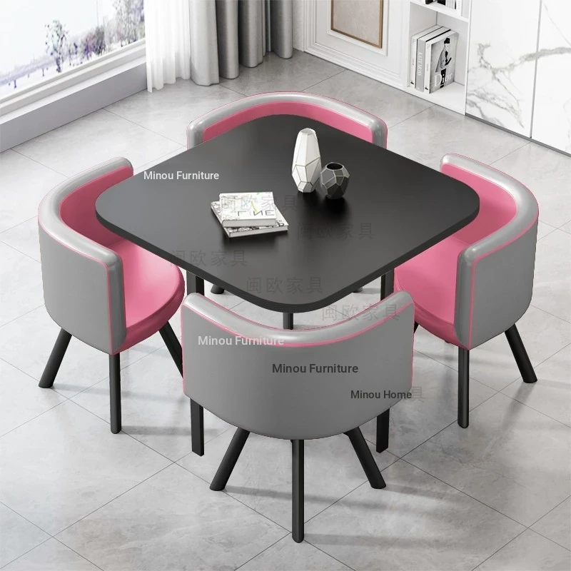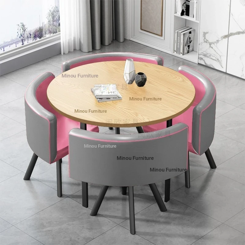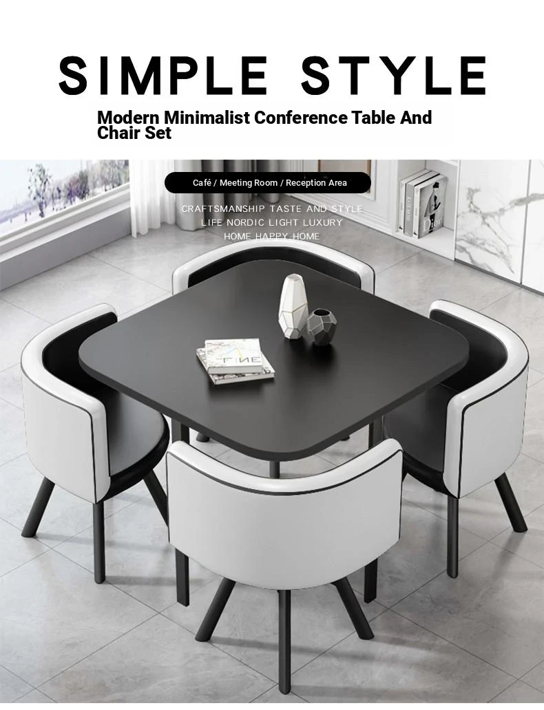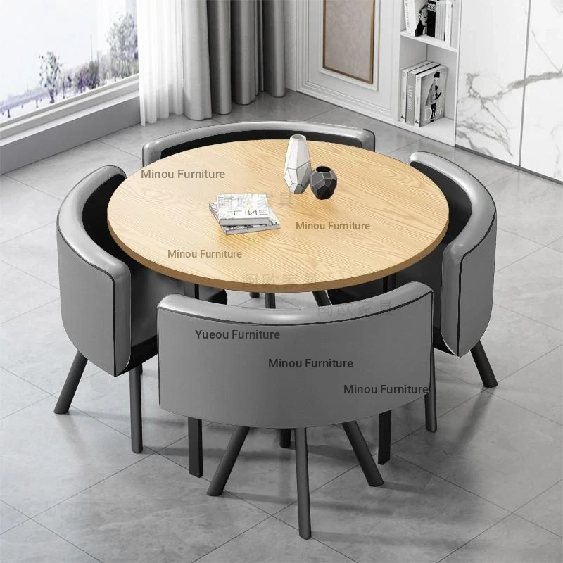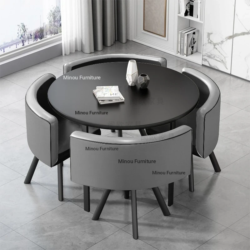Black Inner Outer Grey Leather Chair Imitation Stone White Round Table