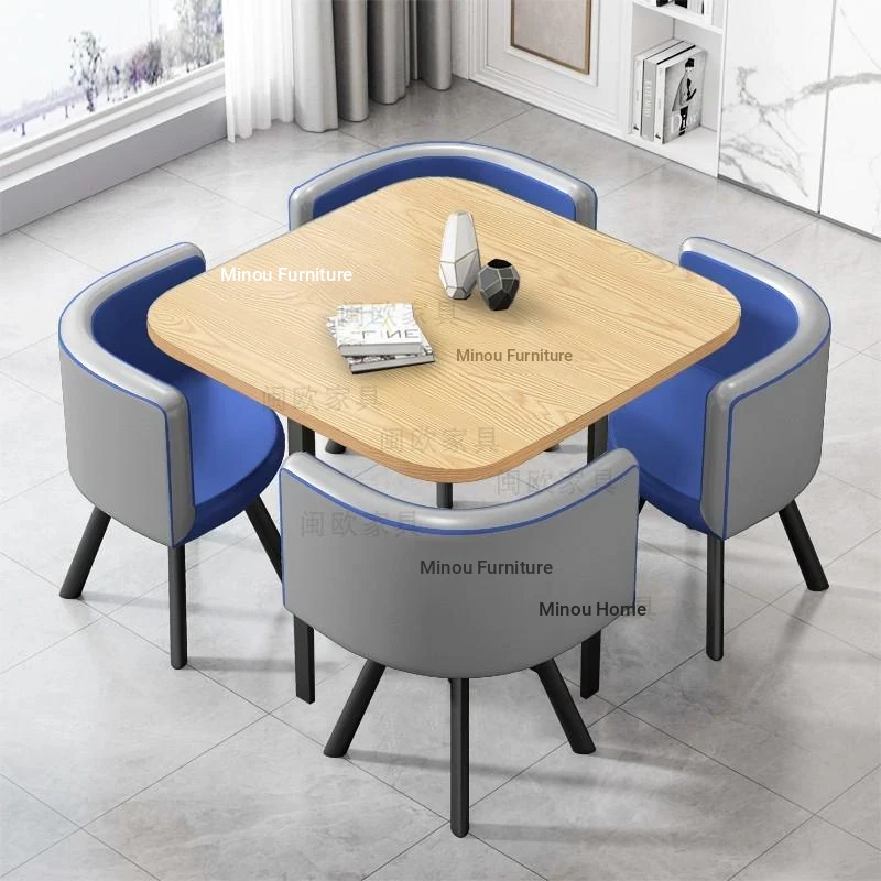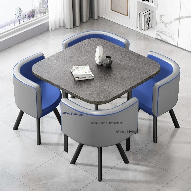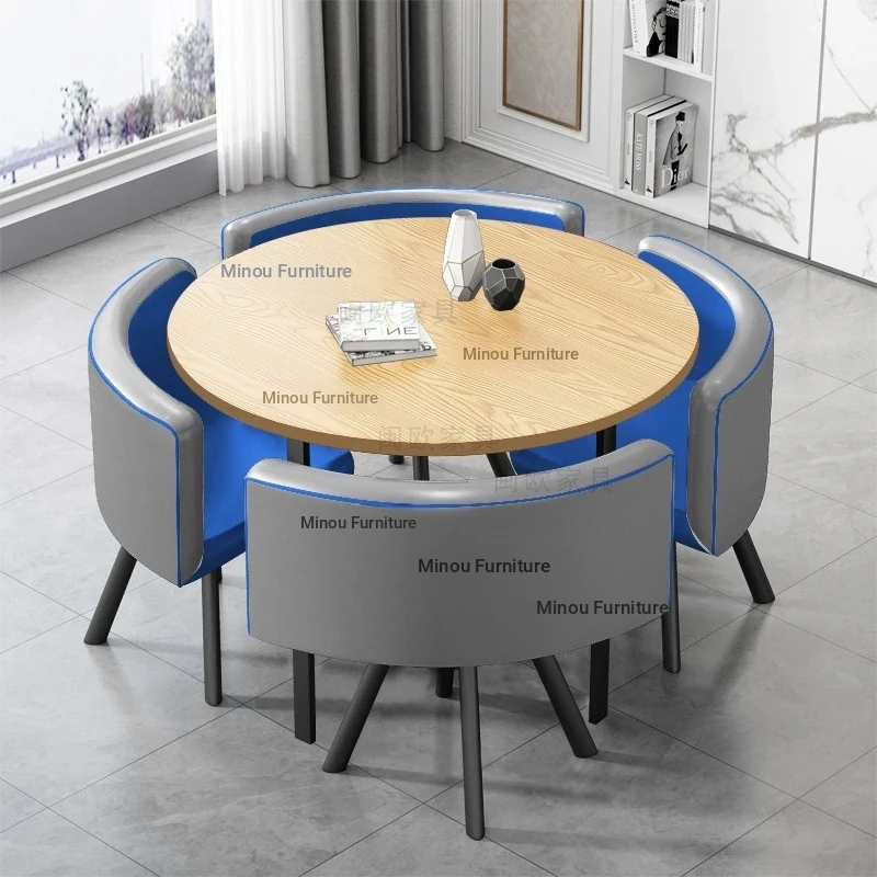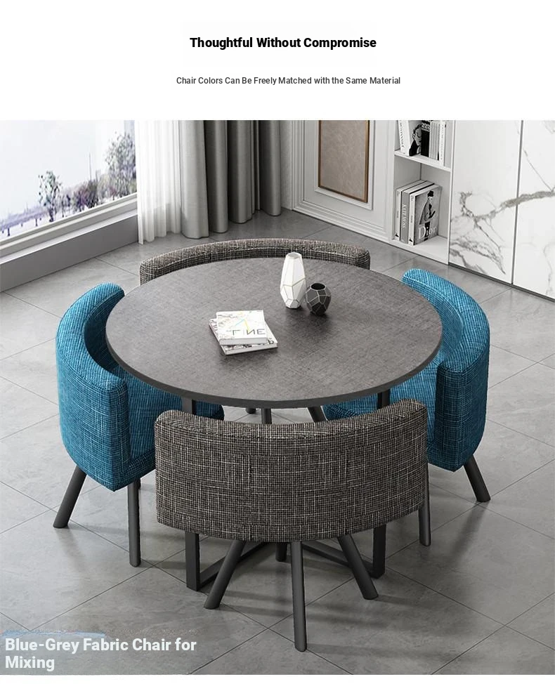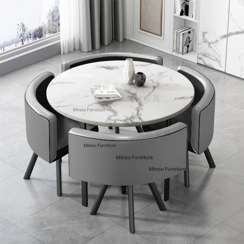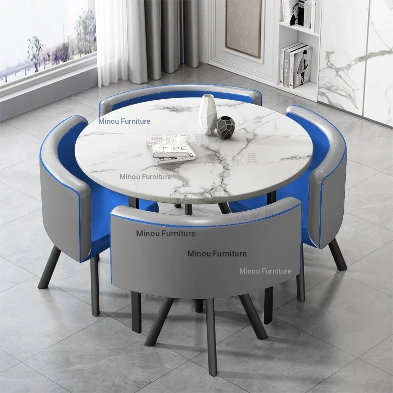 Inside light blue Outside Grey Leather Chair Stone-like White Round Table