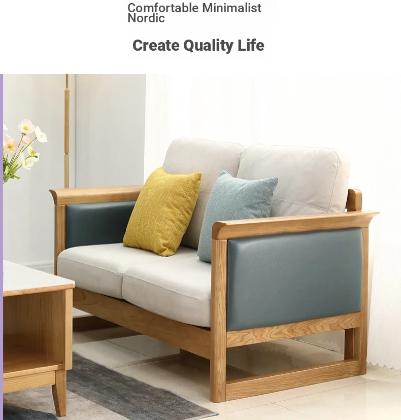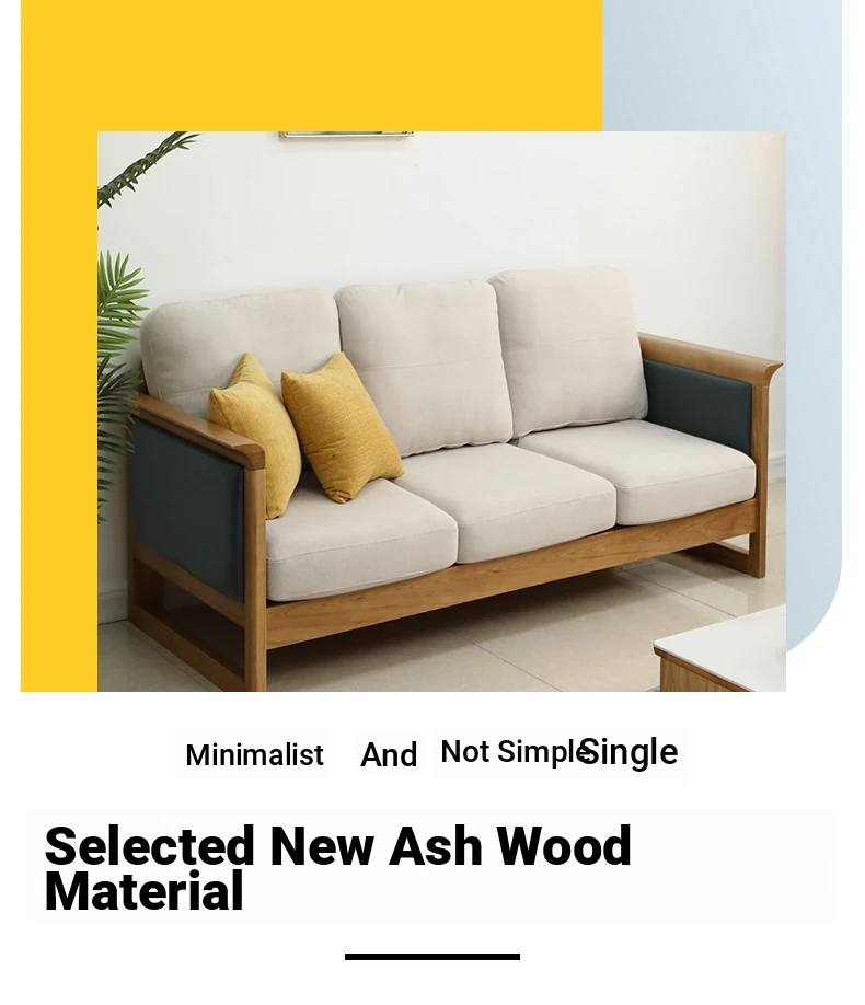 Modern Minimalist Solid Ash Wood Sofa for Small Living Rooms - Perfect for Hotels and Offices, Versatile Seating Solution for Relaxation and Style.