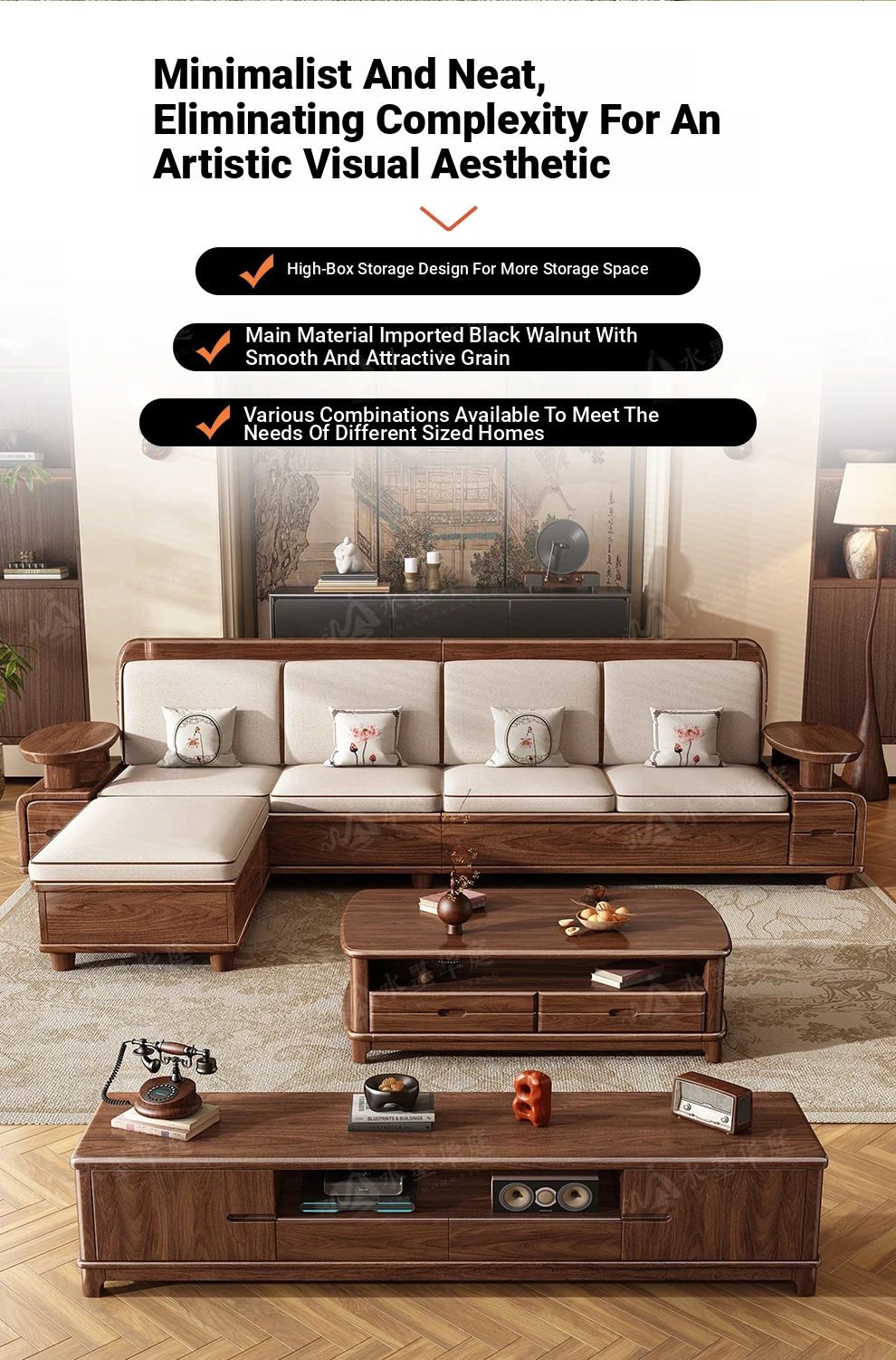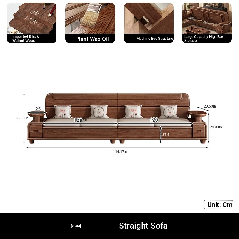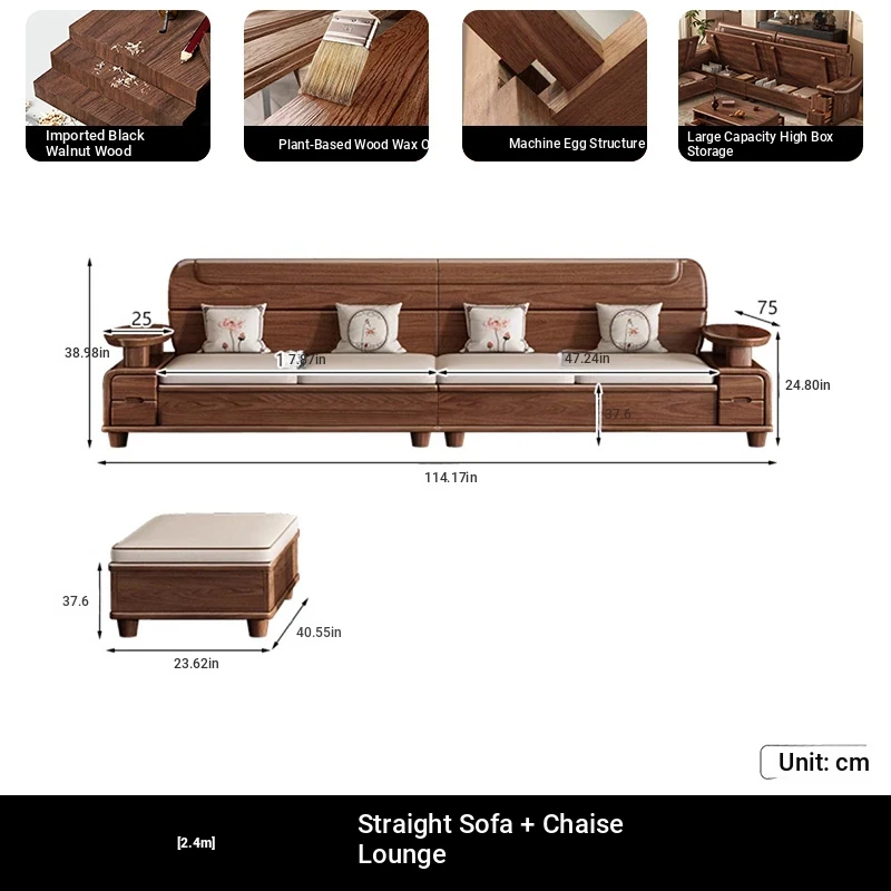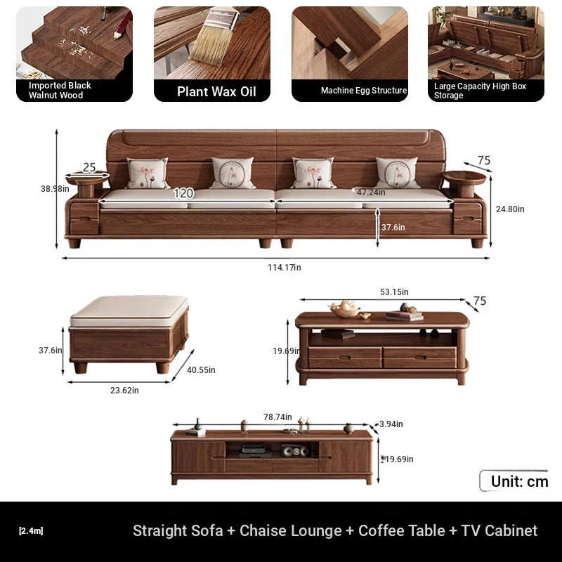 [94.49in] Straight Sofa + Imperial Couch + Tea Table + TV Cabinet