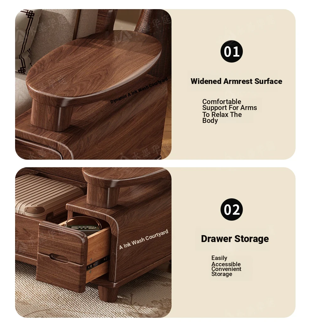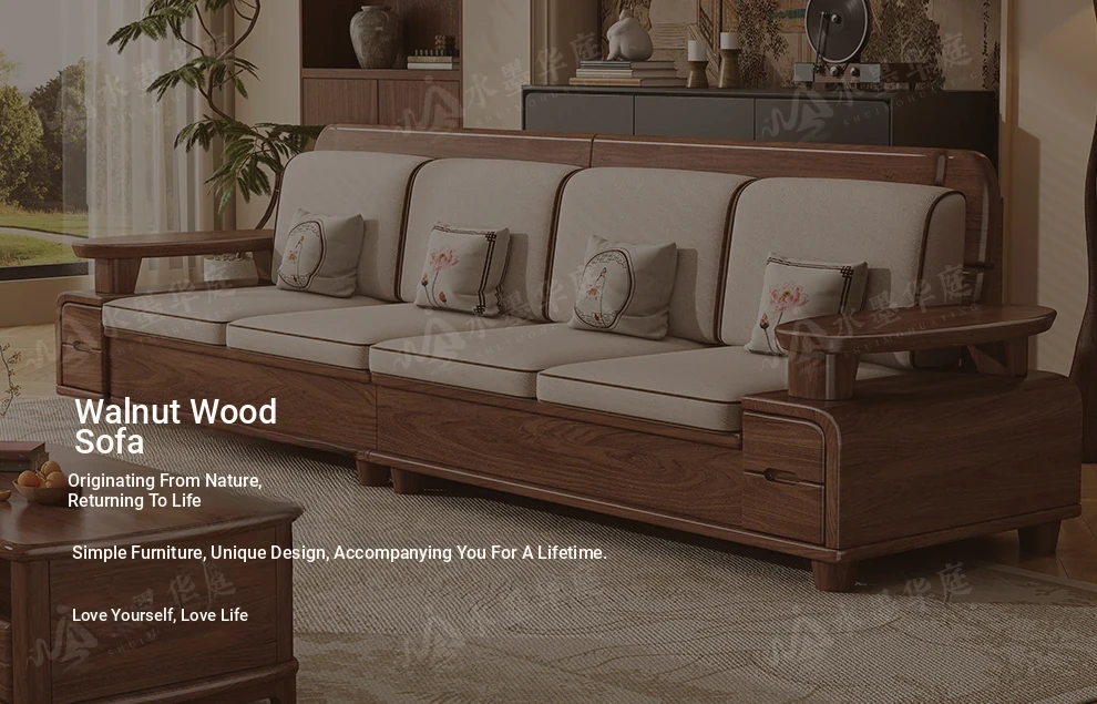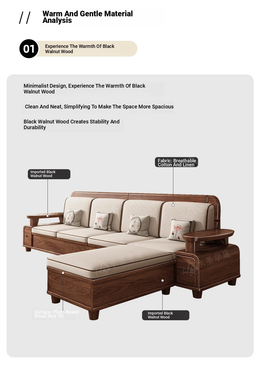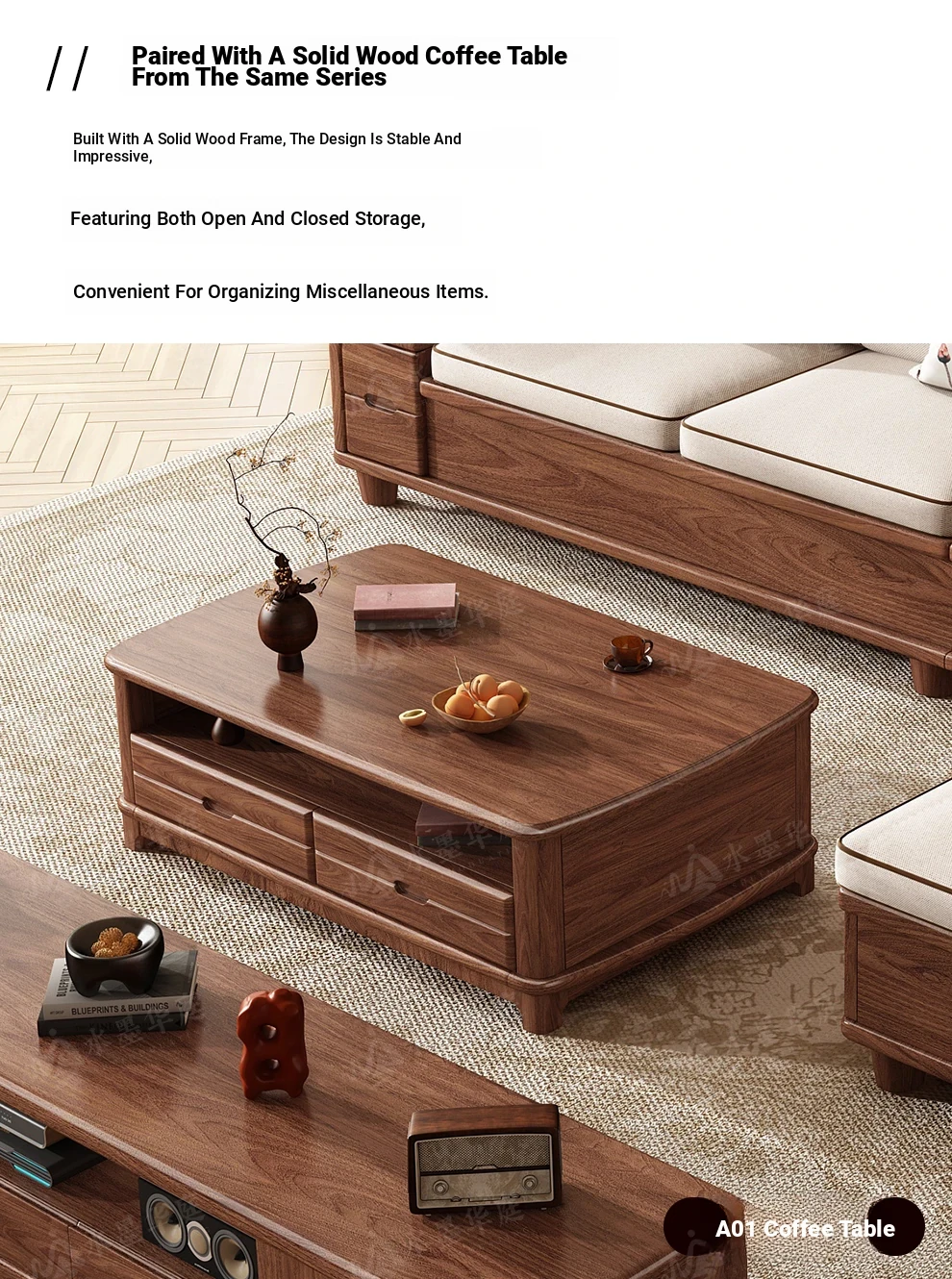 [94.49in] Straight Sofa + Imperial Couch + Tea Table + TV Cabinet