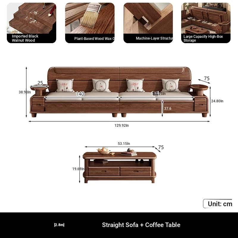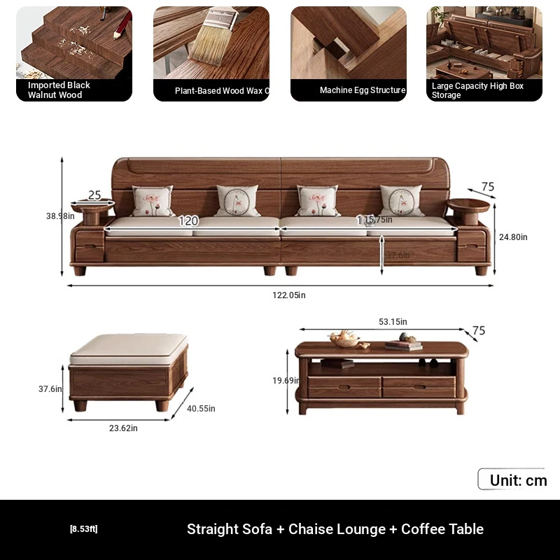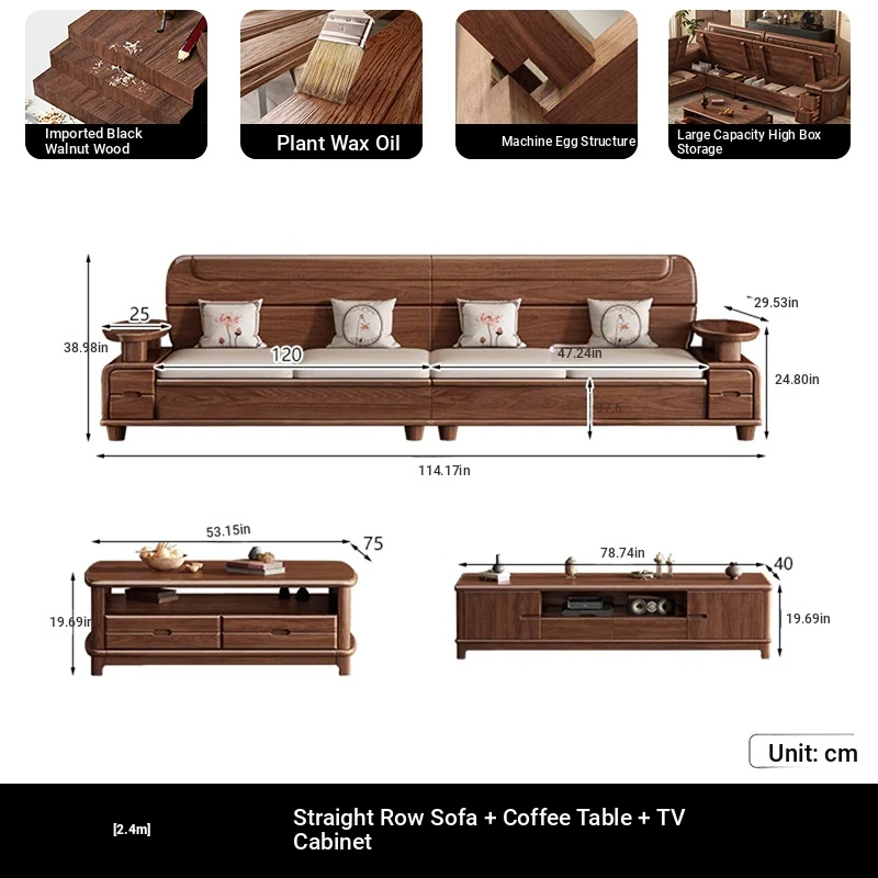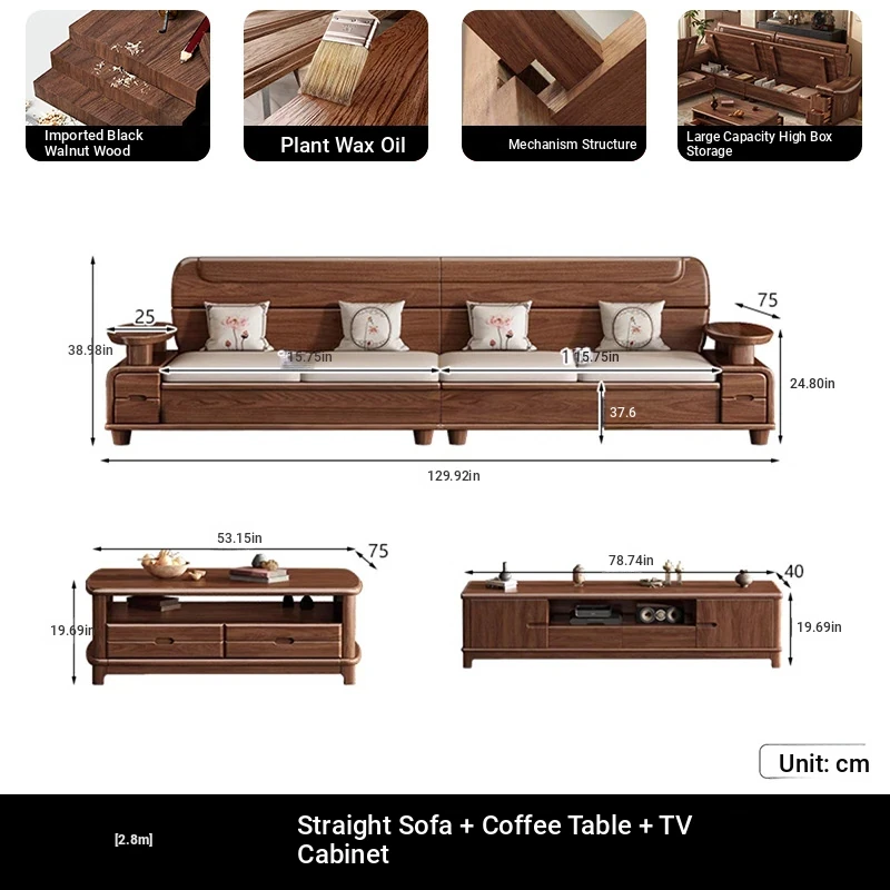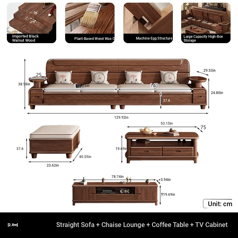 [110.24in] Straight Sofa + Imperial Couch + Tea Table + TV Cabinet