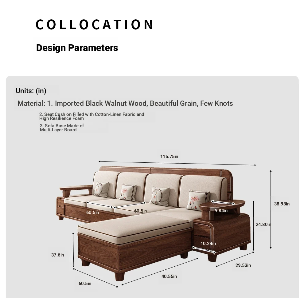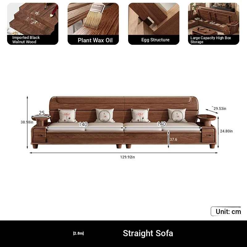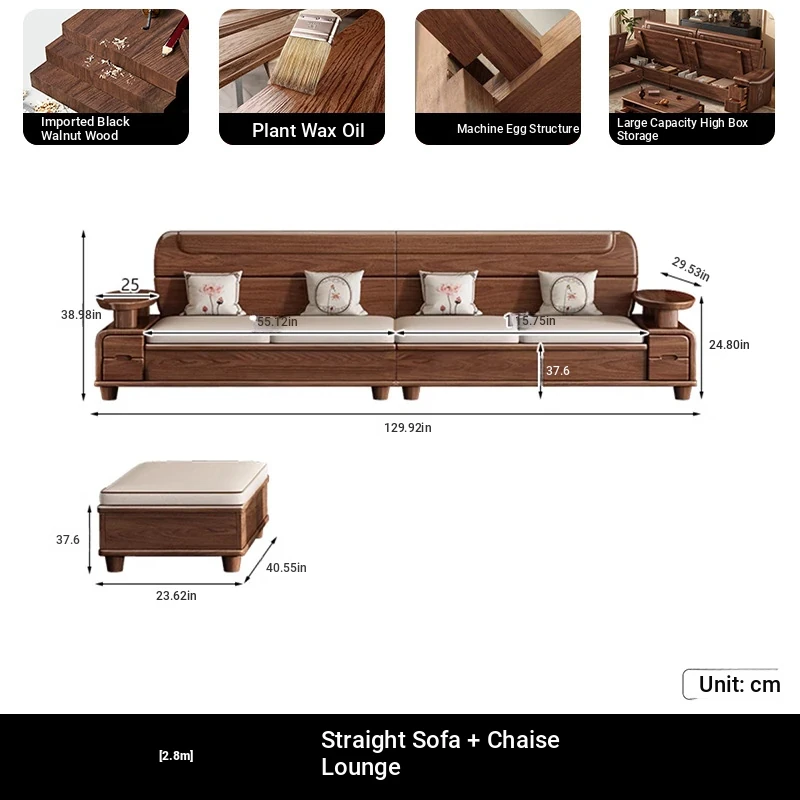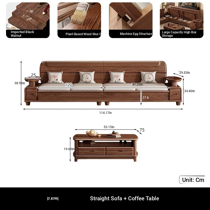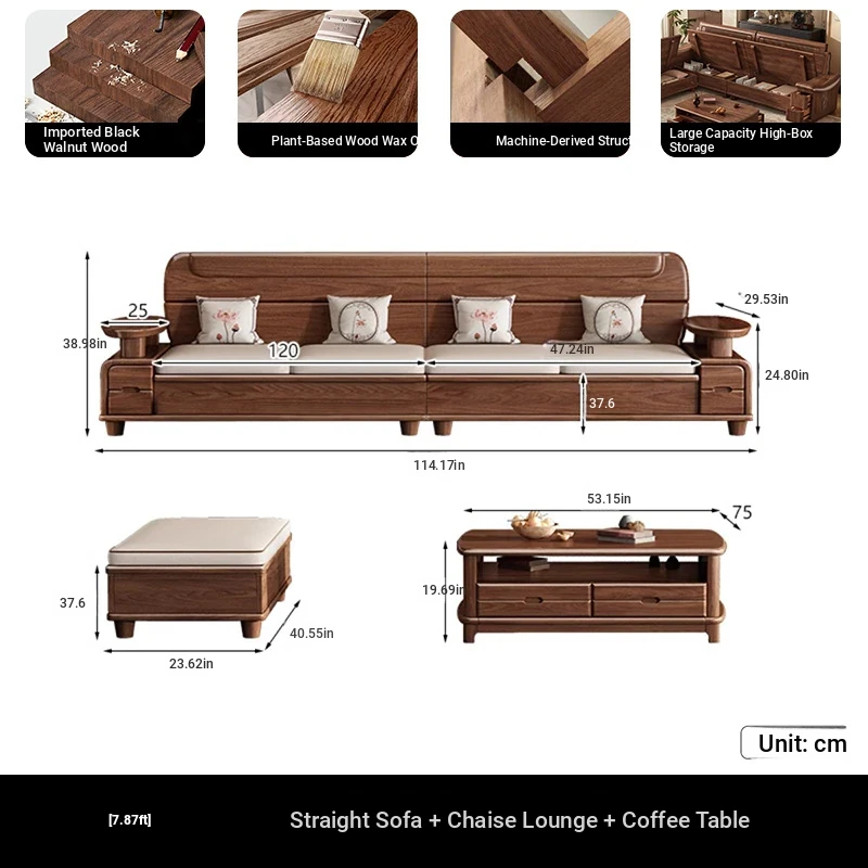 [110.24in] Straight Sofa + Imperial Couch + Tea Table + TV Cabinet