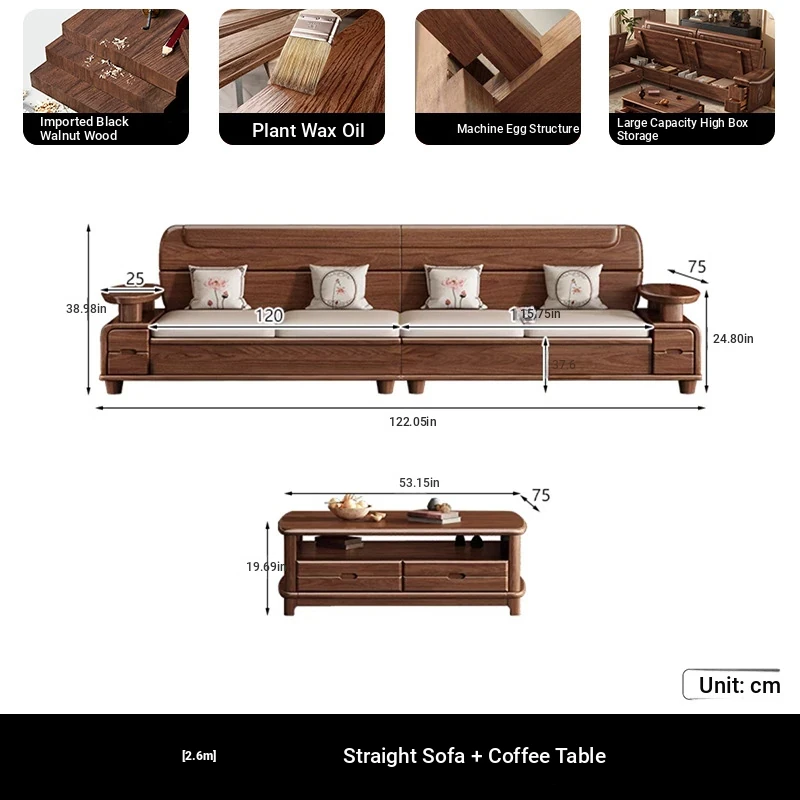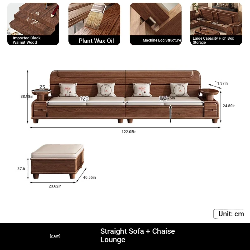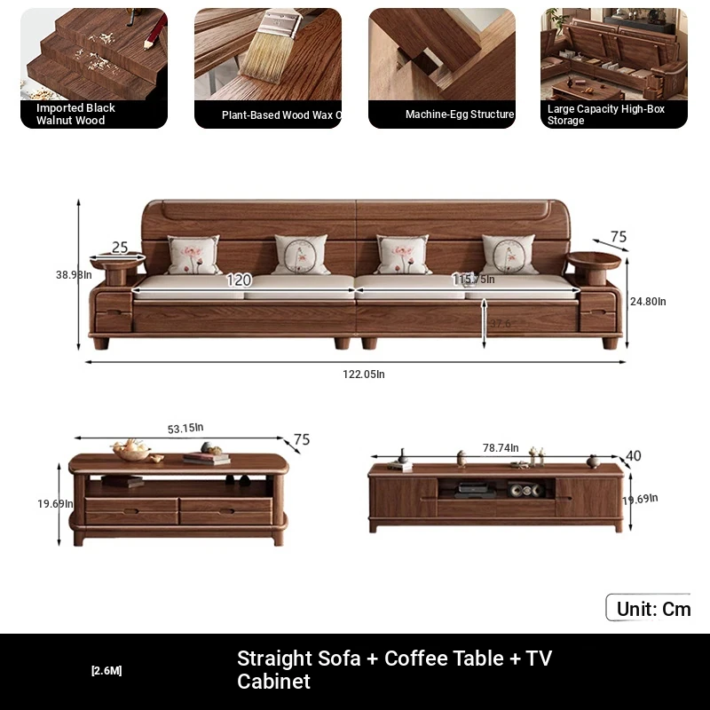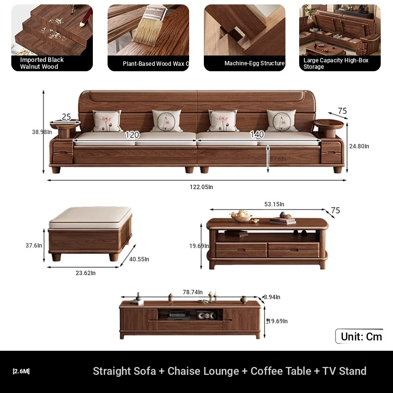 [102.36in] Straight Sofa + Imperial Couch + Tea Table + TV Cabinet