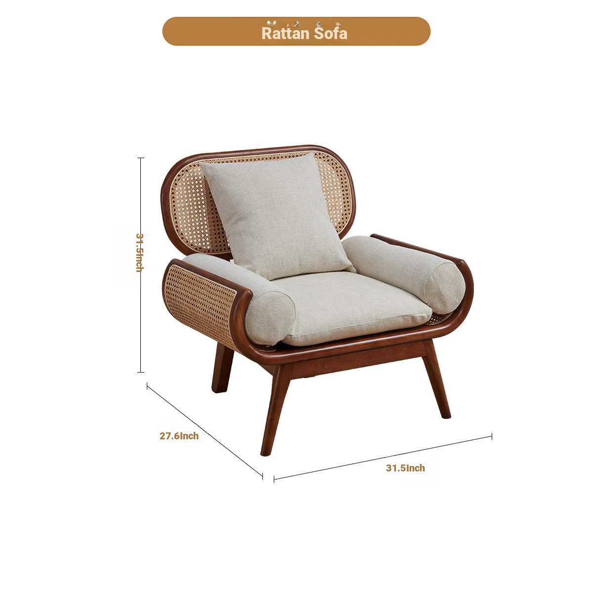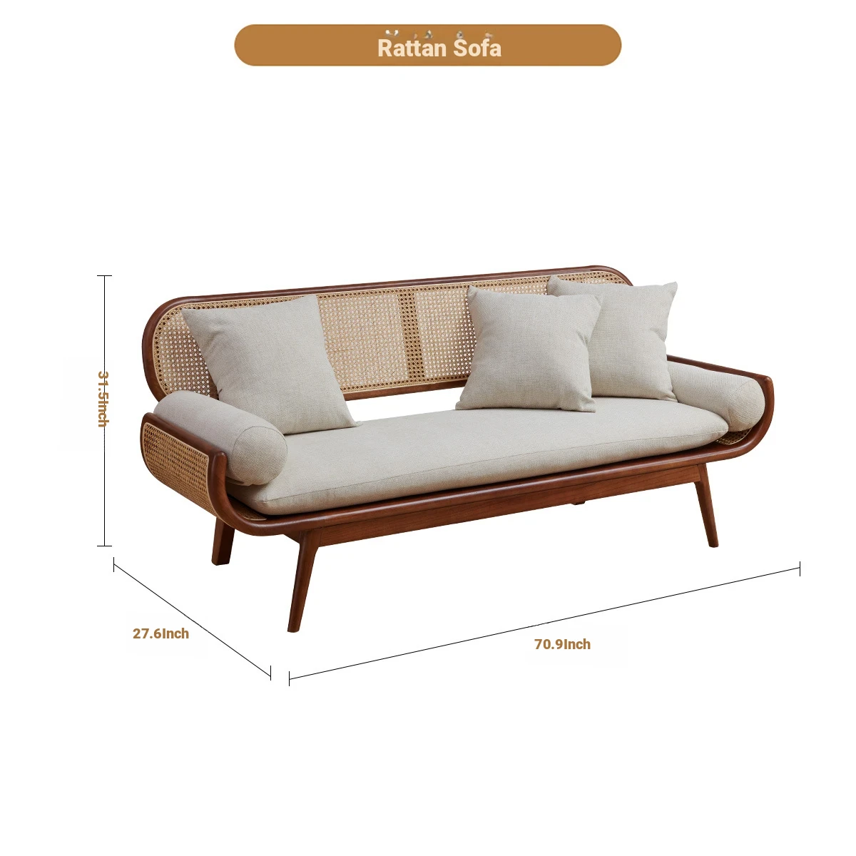 Modern Wooden Sofa with Rattan Backrest – Stylish and Compact Design for Small Living Rooms, Perfect for Year-Round Comfort in Your Home or Airbnb. Ideal for Relaxing and Entertaining!
