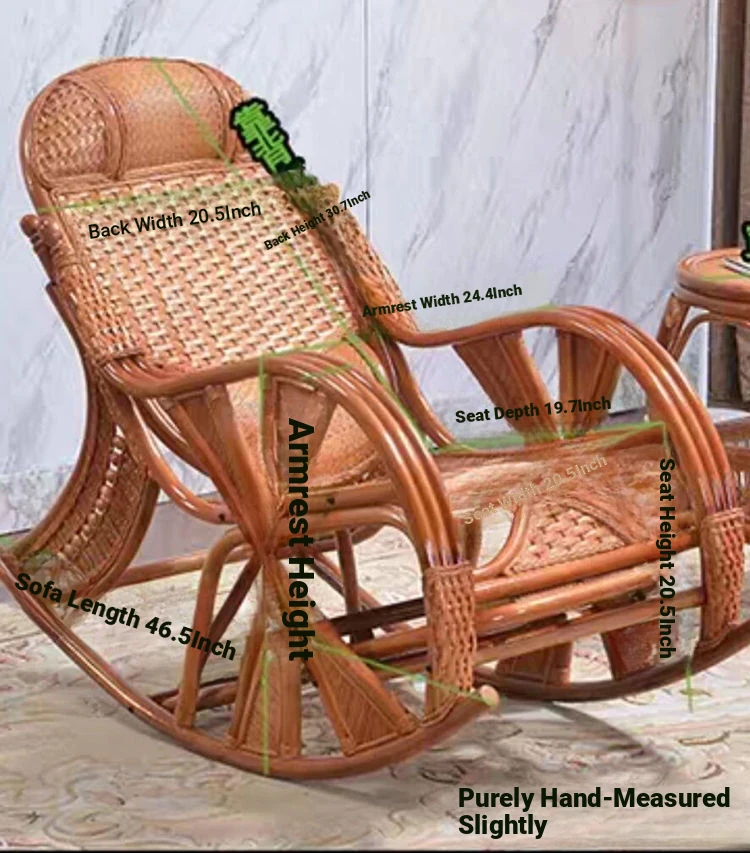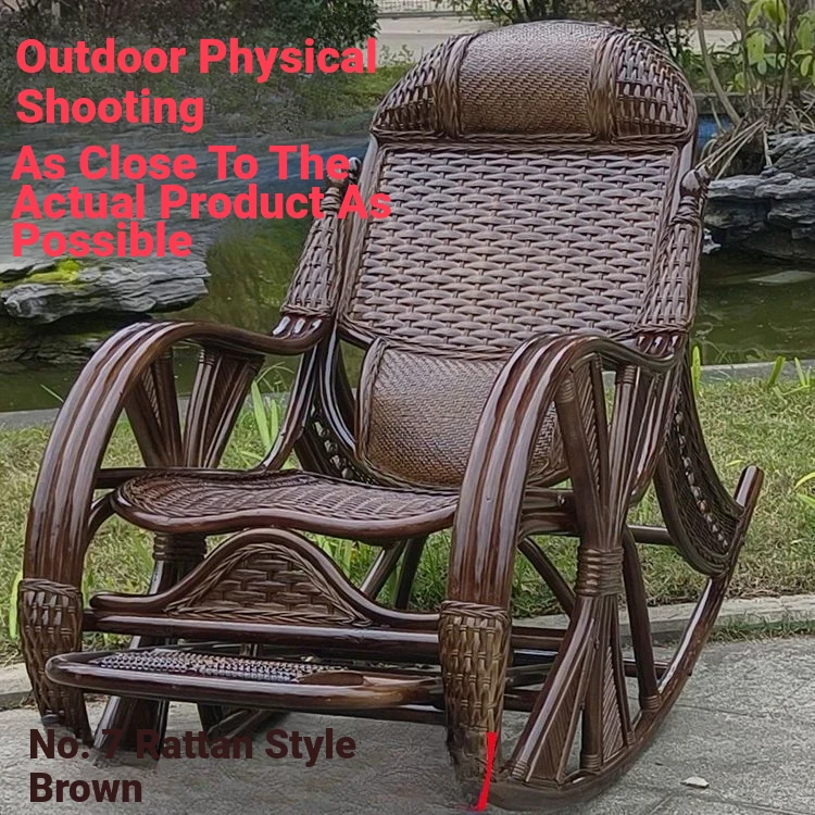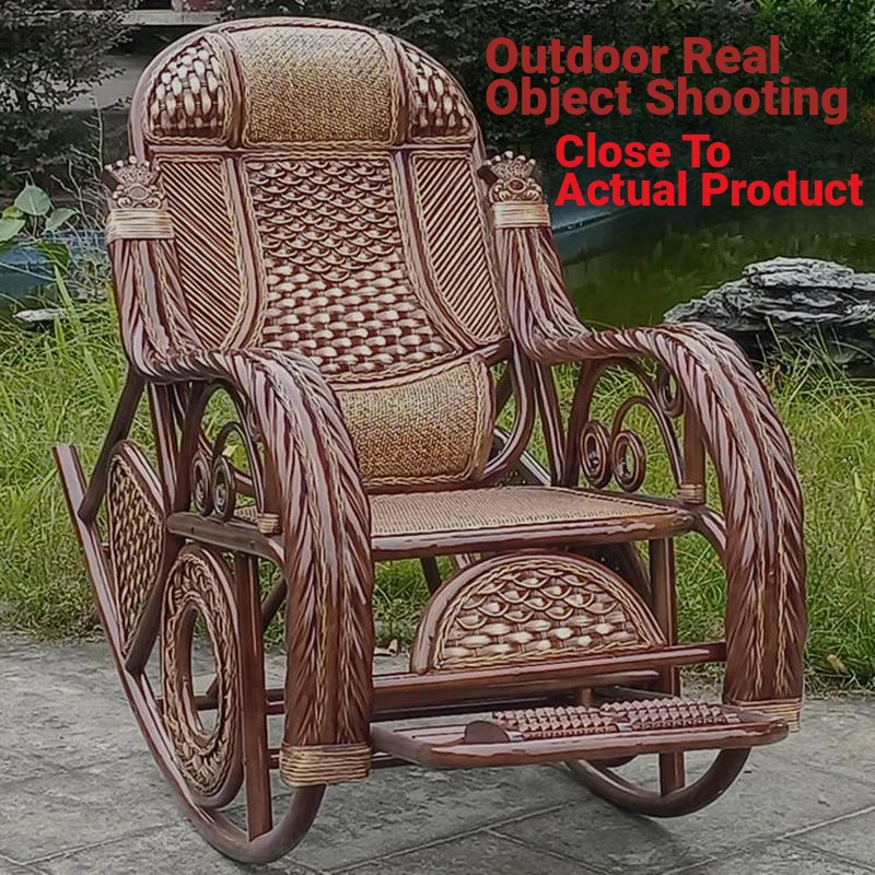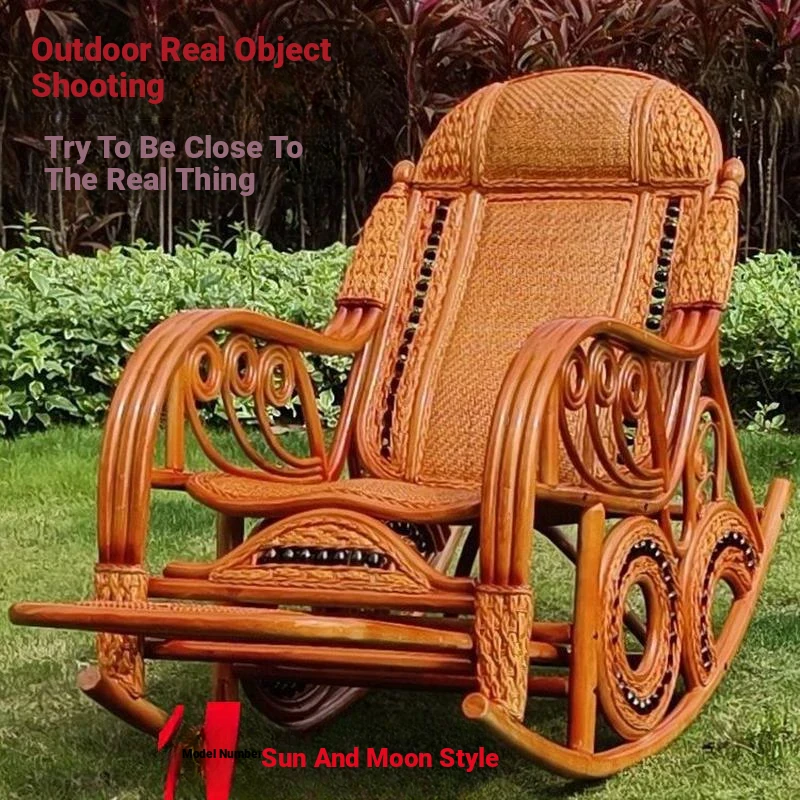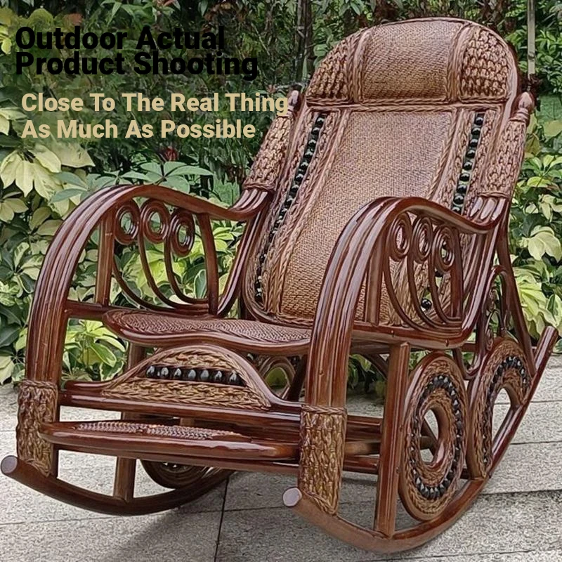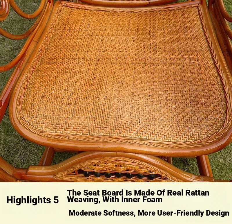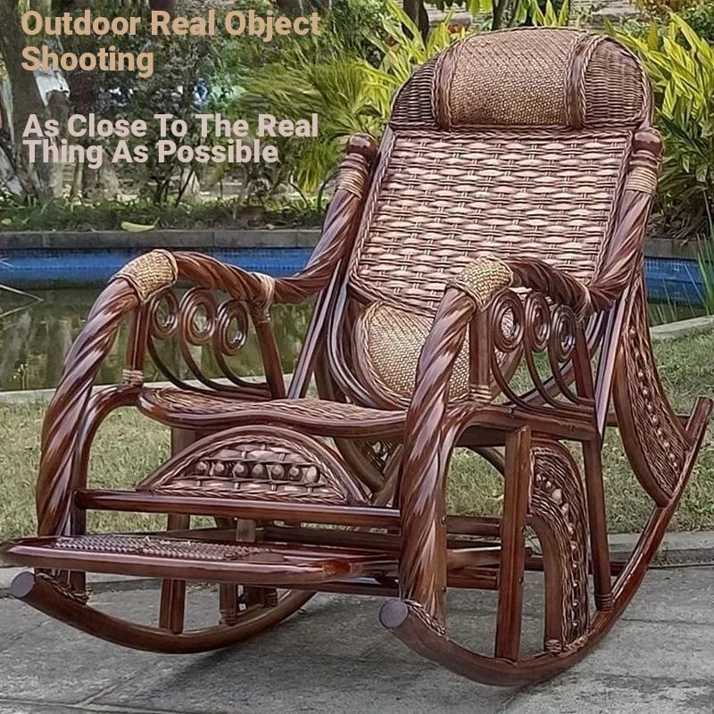 Natural Rattan Rocking Recliner for Seniors - Comfortable Lounge Chair for Balcony, Living Room, and Indoor Relaxation - Perfect for Leisure and Afternoon Naps