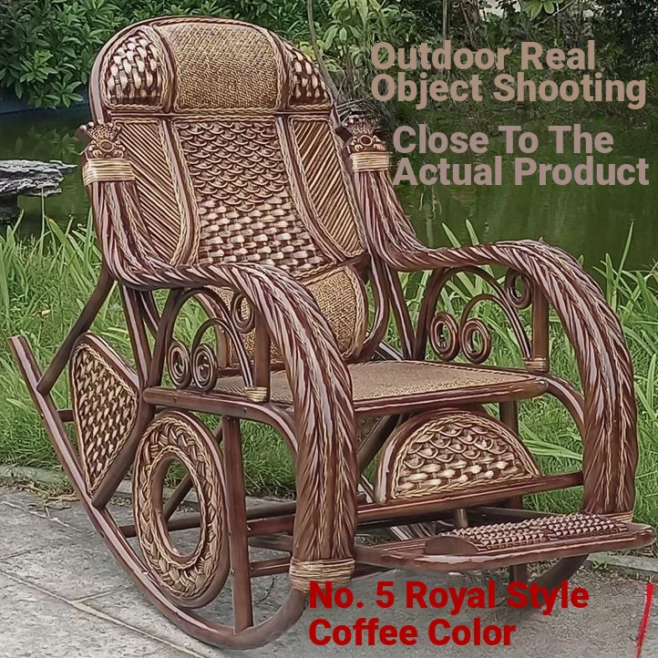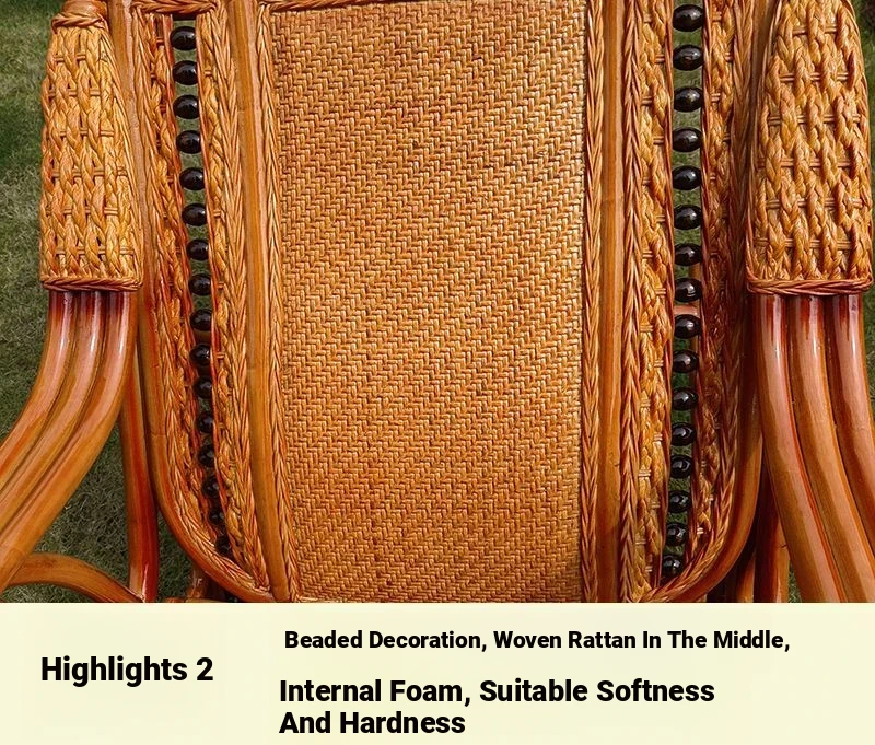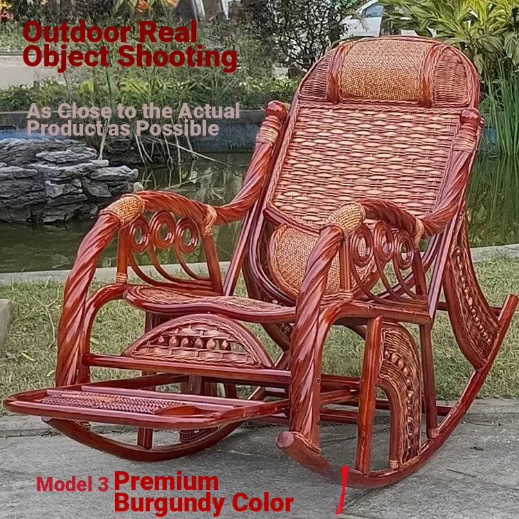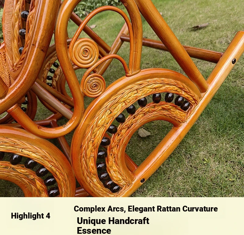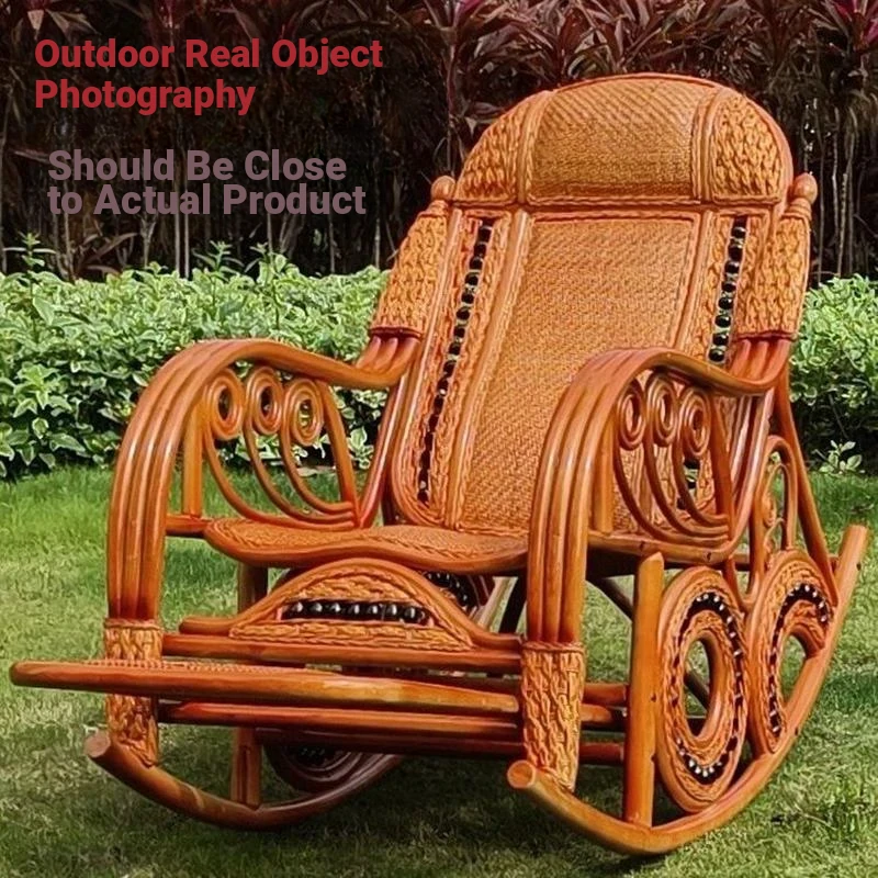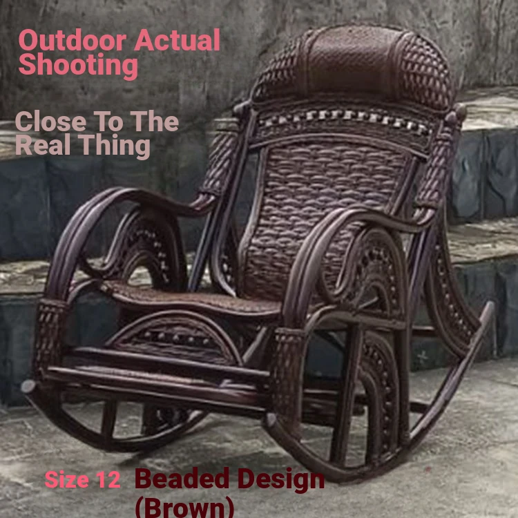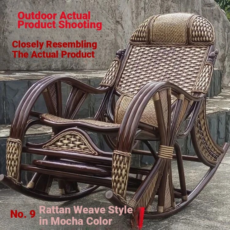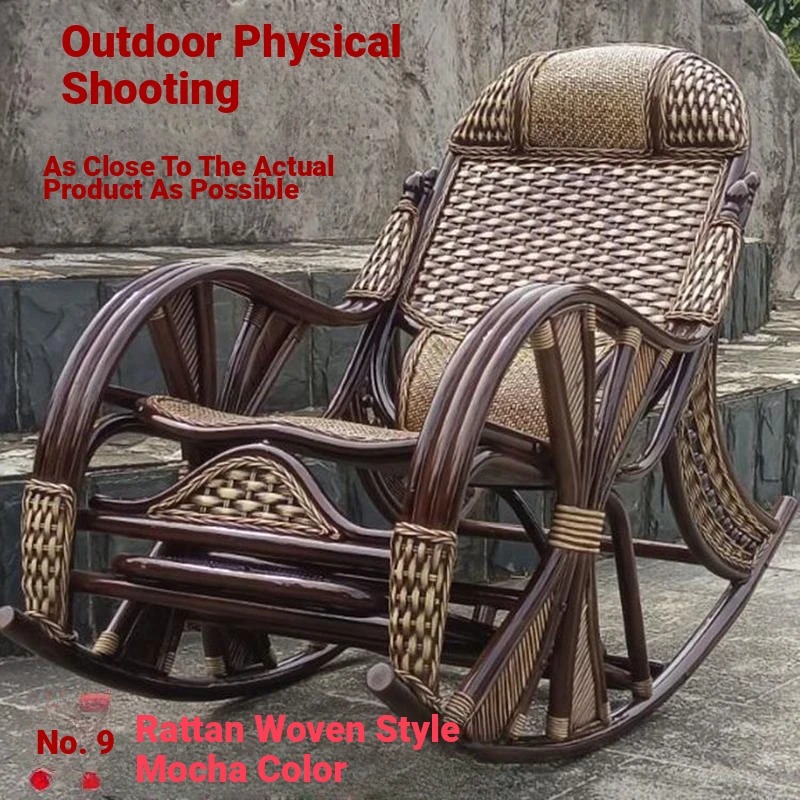 Natural Rattan Rocking Recliner for Seniors - Comfortable Lounge Chair for Balcony, Living Room, and Indoor Relaxation - Perfect for Leisure and Afternoon Naps