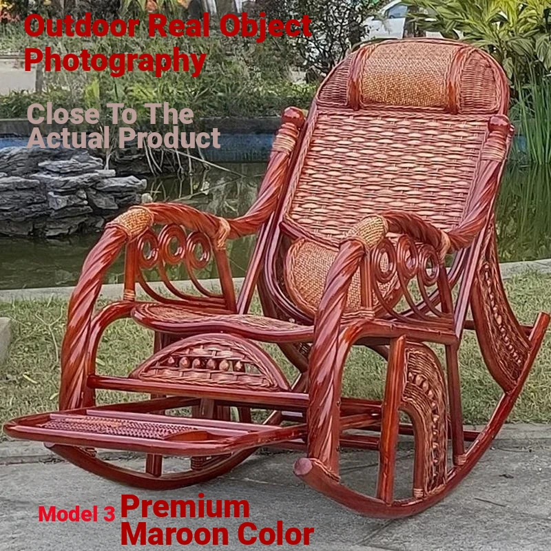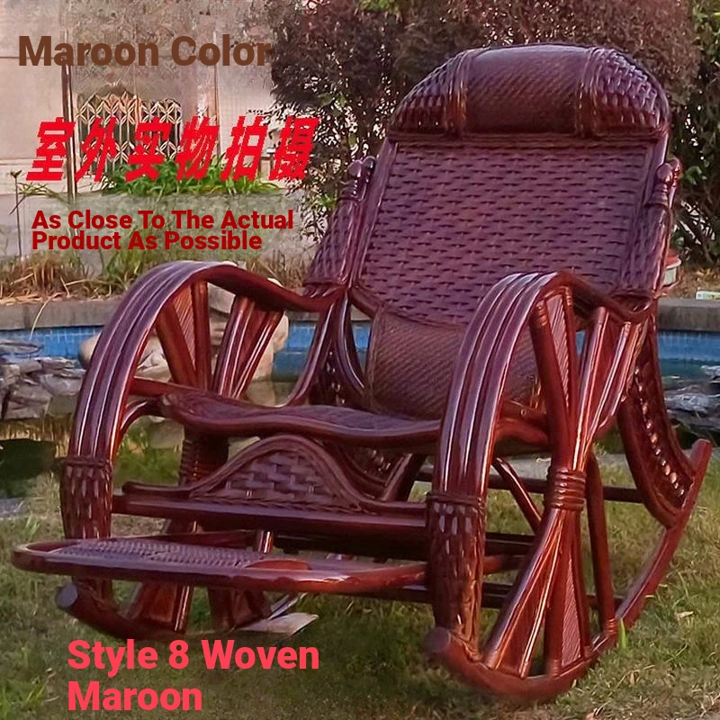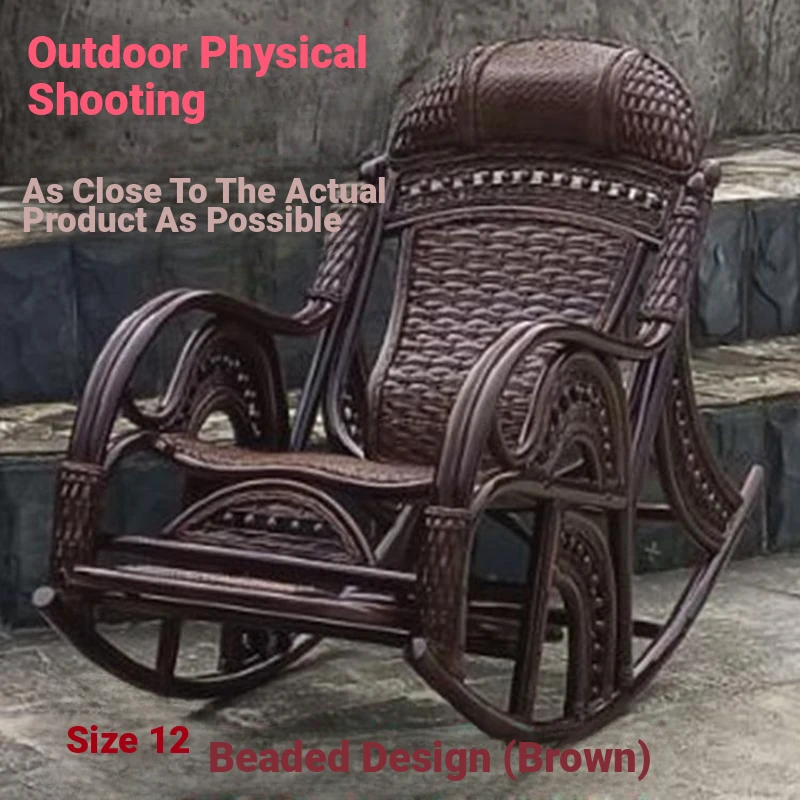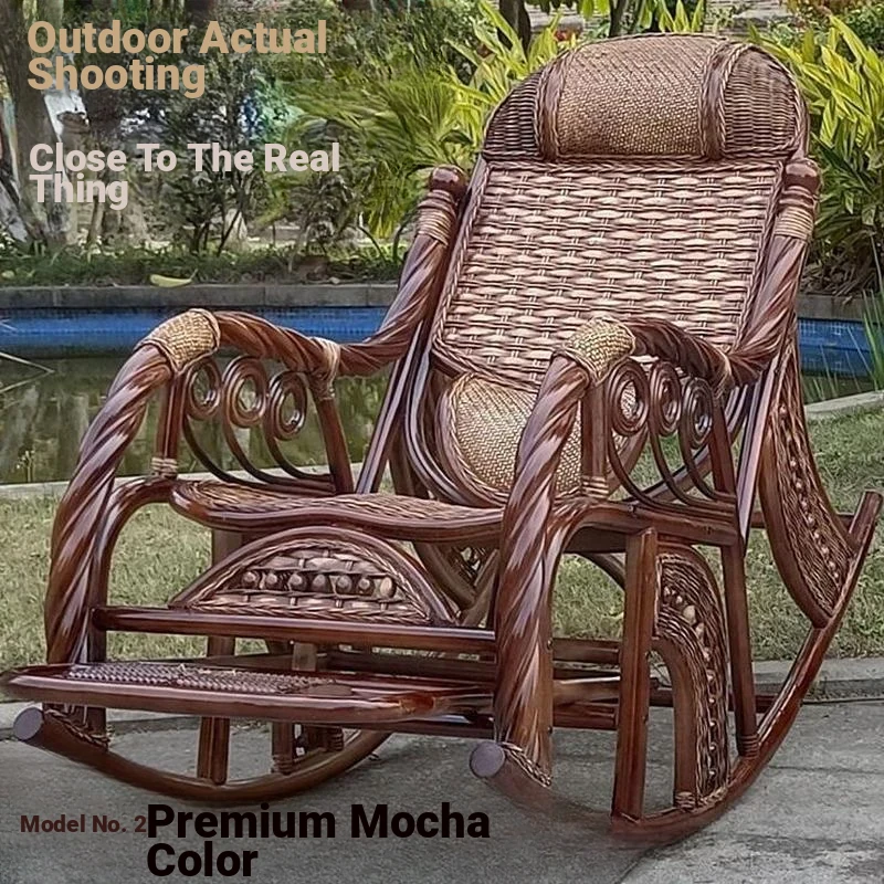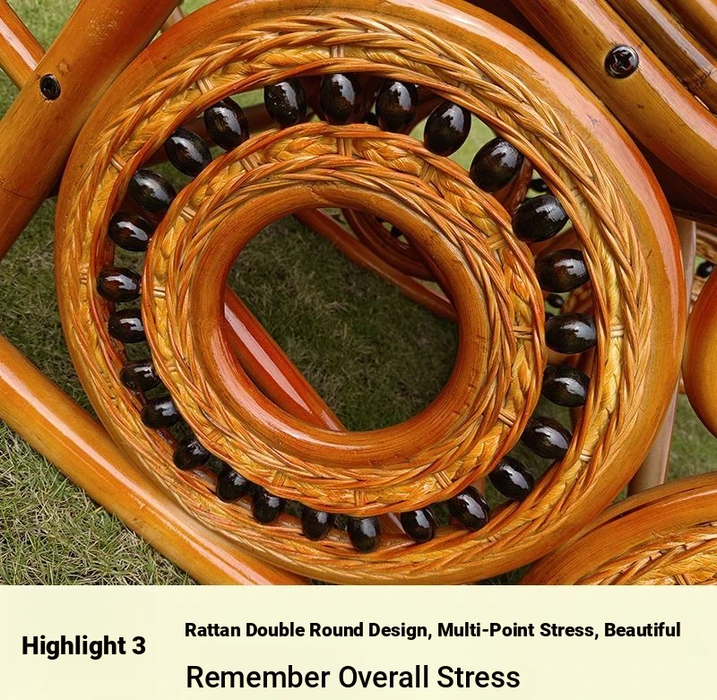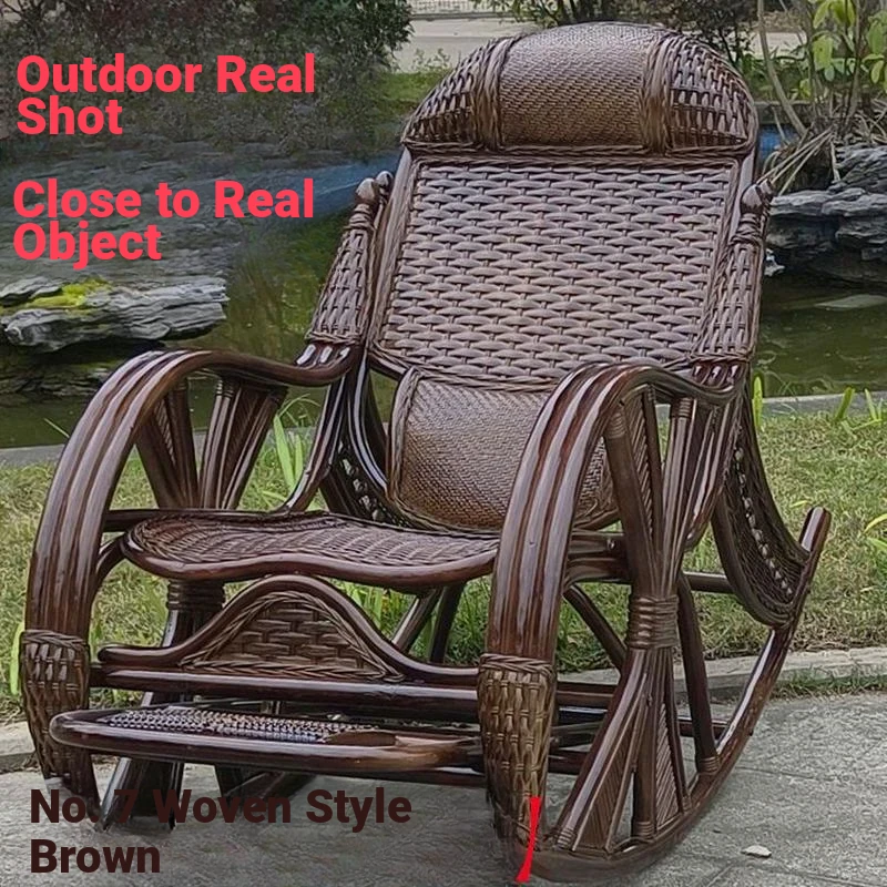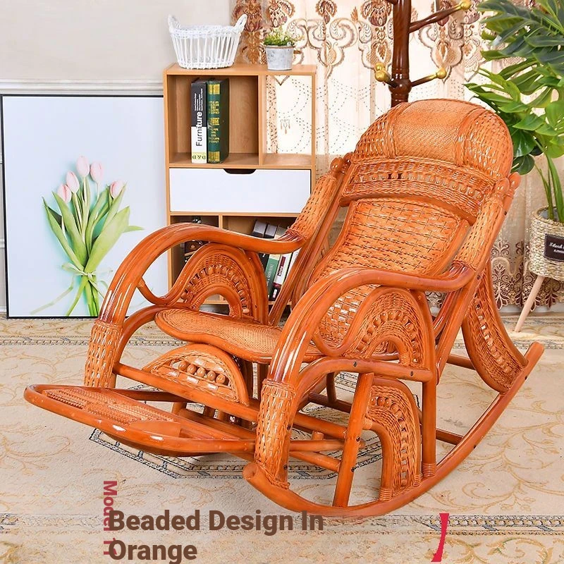 Natural Rattan Rocking Recliner for Seniors - Comfortable Lounge Chair for Balcony, Living Room, and Indoor Relaxation - Perfect for Leisure and Afternoon Naps