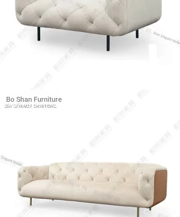 Nordic Minimalist Luxury Leather and Fabric Sofa Set - Modern Port Style Stainless Steel Reception Sofa for Sales Office and Living Room