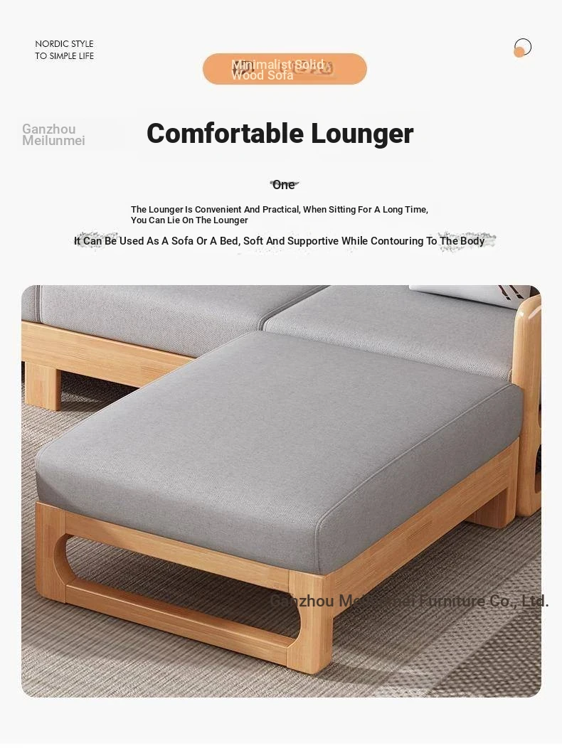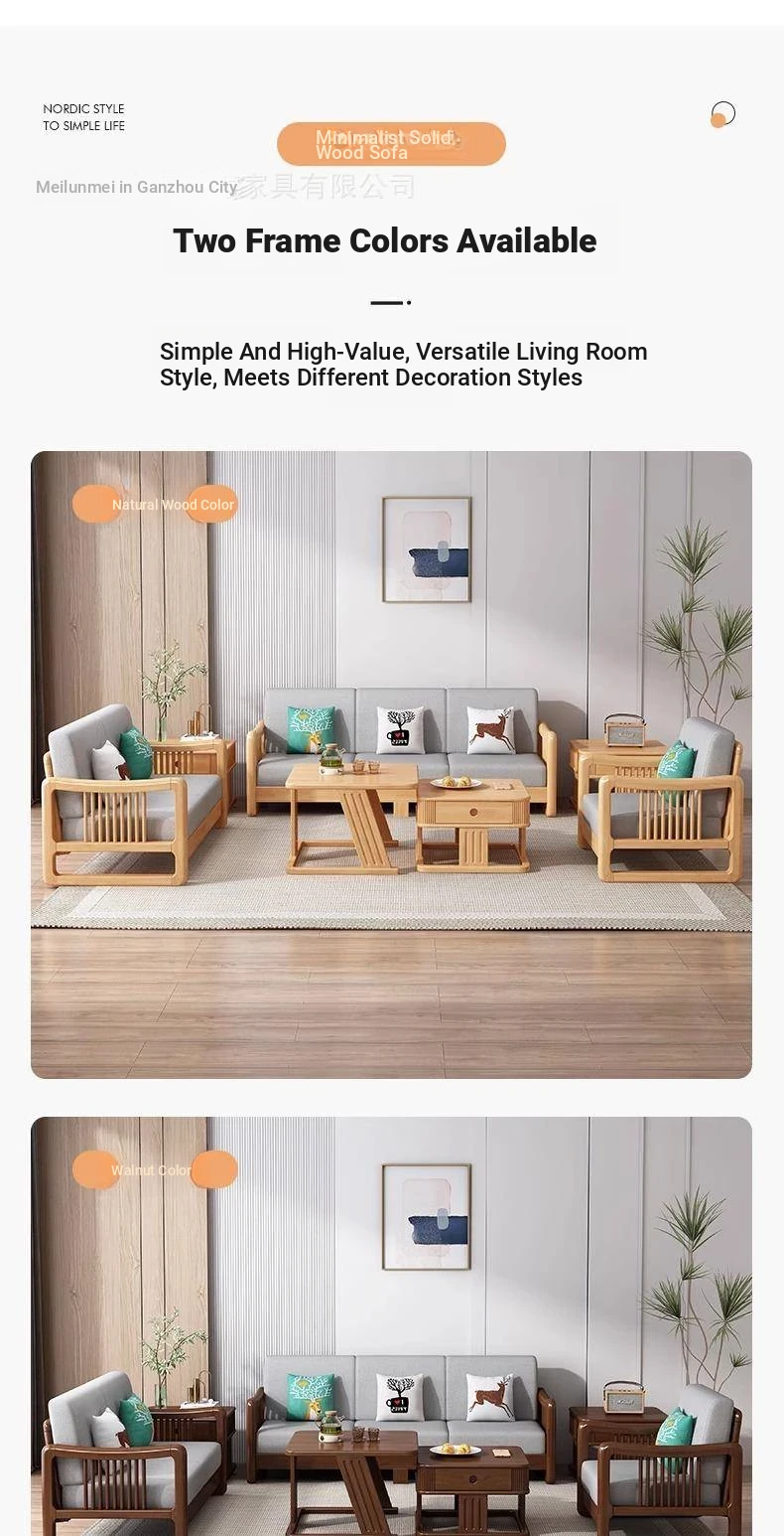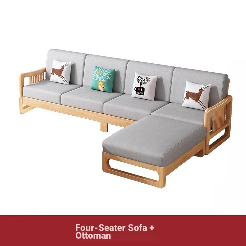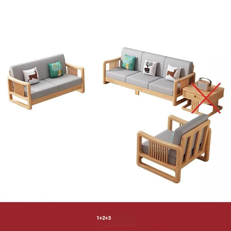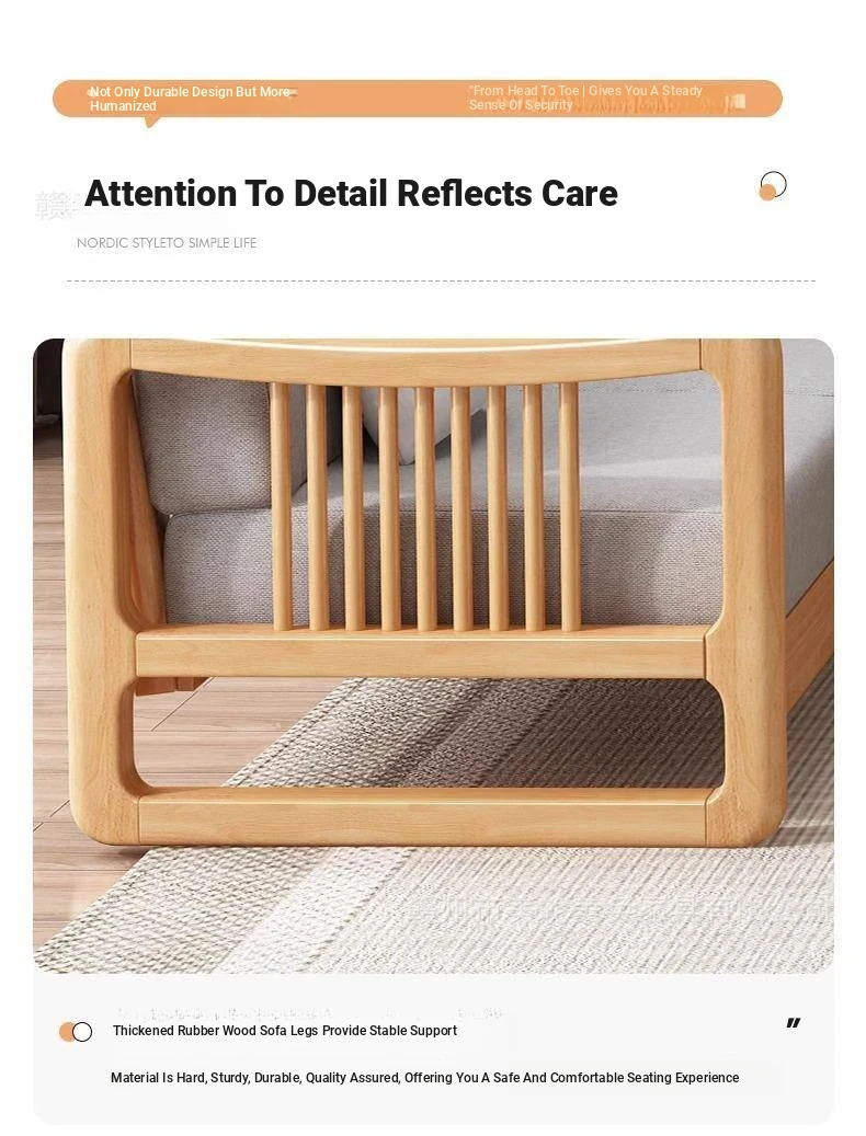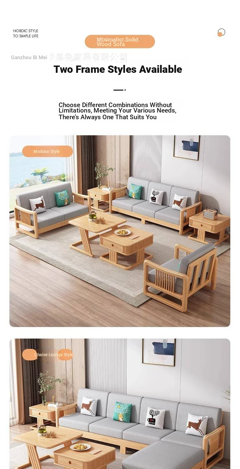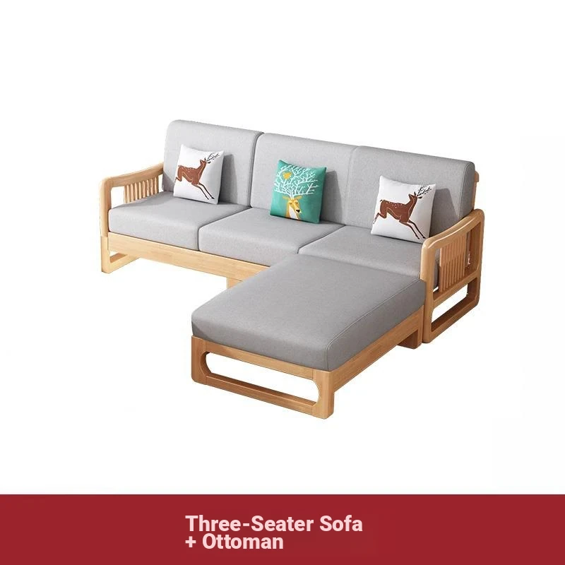 Nordic Minimalist Modern Solid Wood Fabric Sofa Set - Compact Chaise Lounge Sectional Sofa for Small Spaces, 3-Seater Living Room Furniture