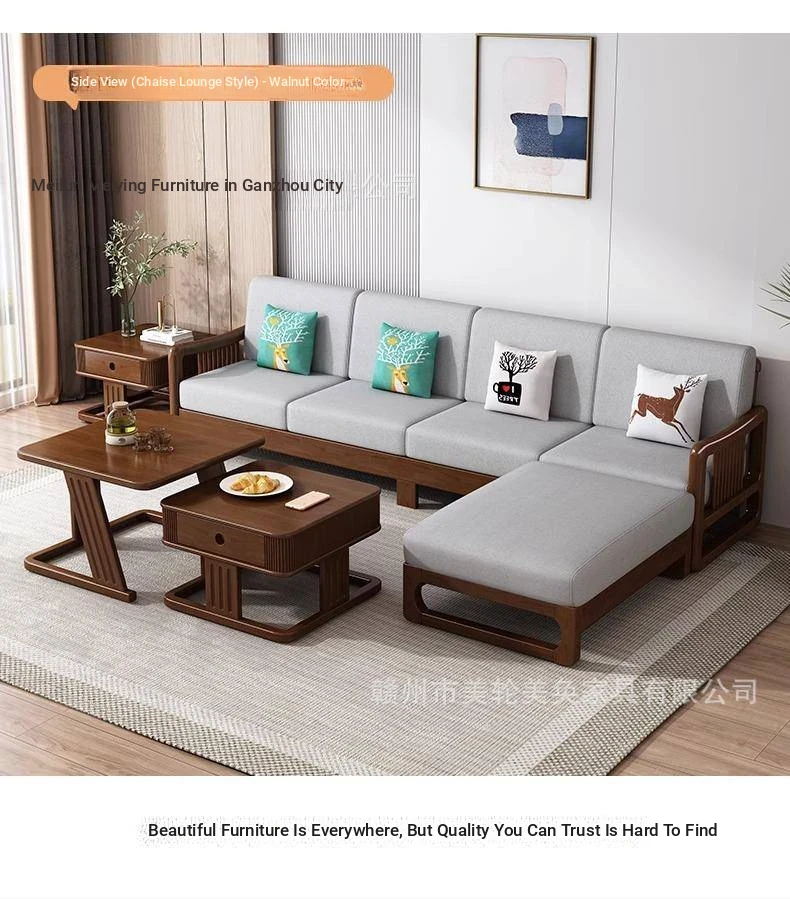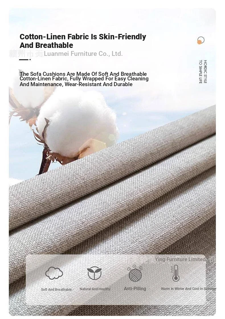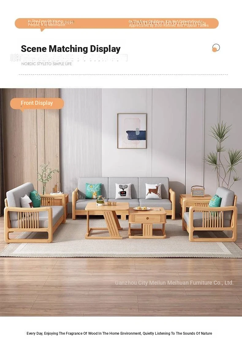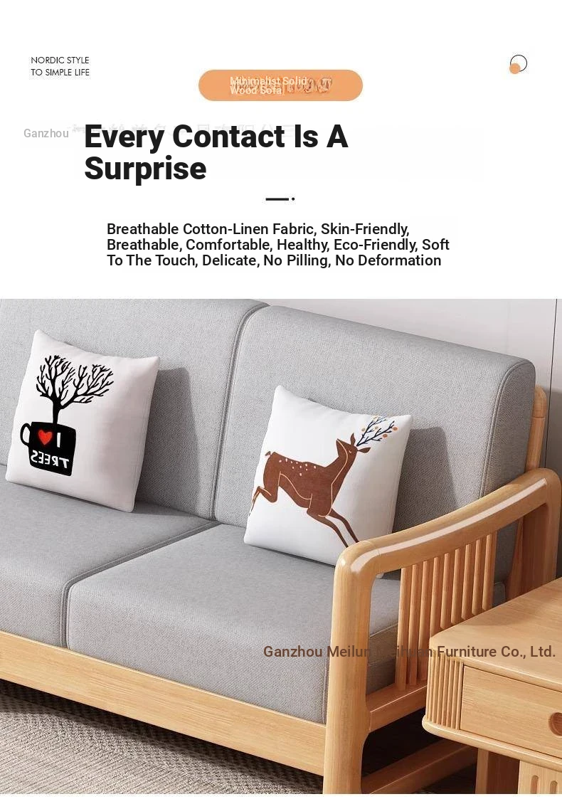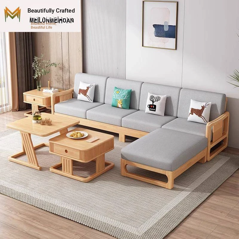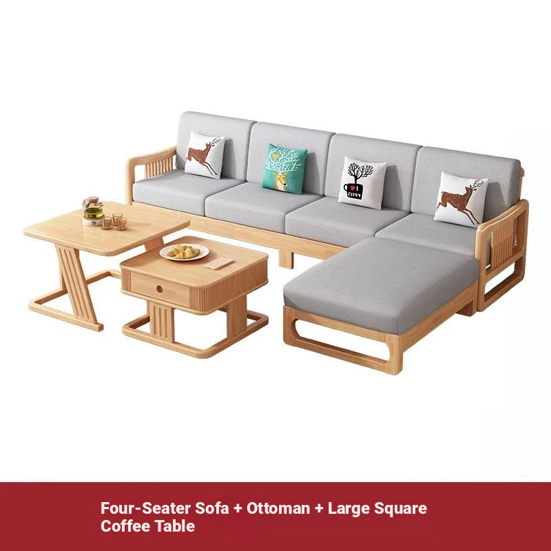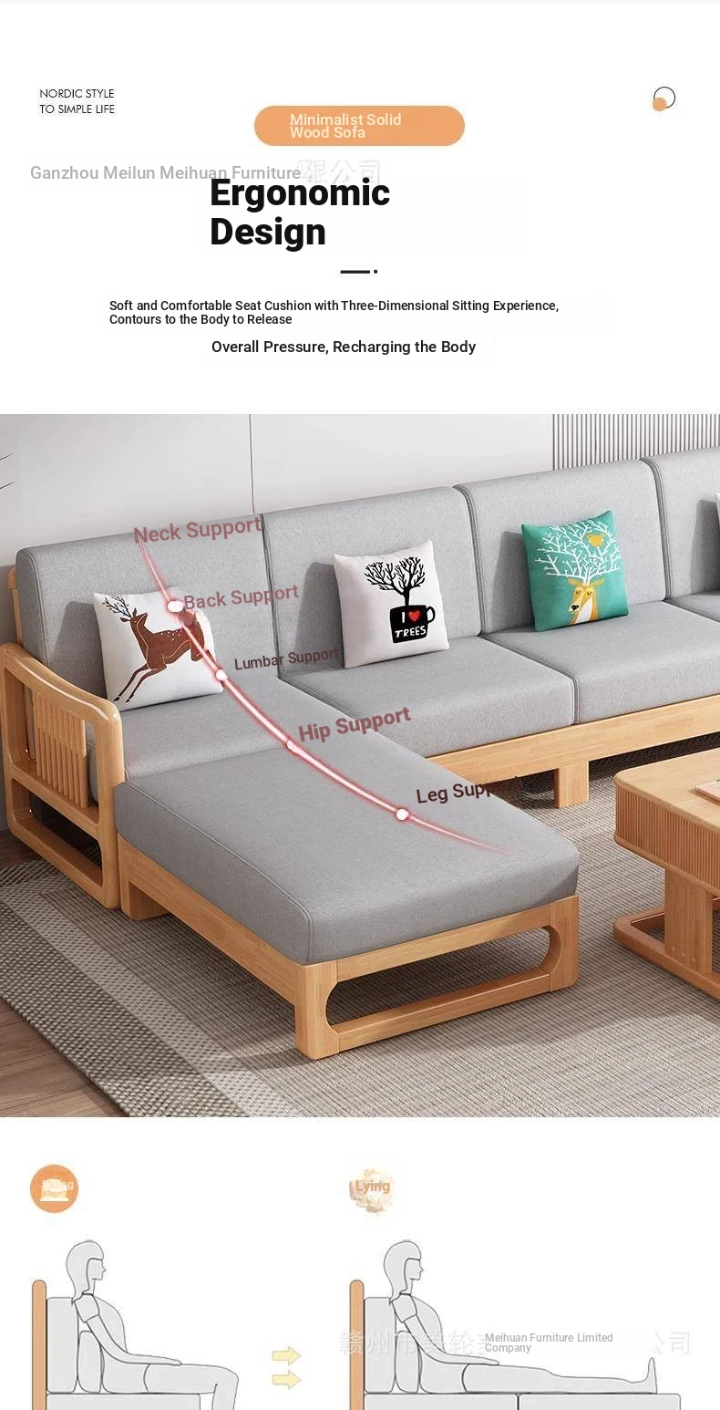 Nordic Minimalist Modern Solid Wood Fabric Sofa Set - Compact Chaise Lounge Sectional Sofa for Small Spaces, 3-Seater Living Room Furniture