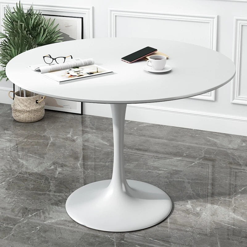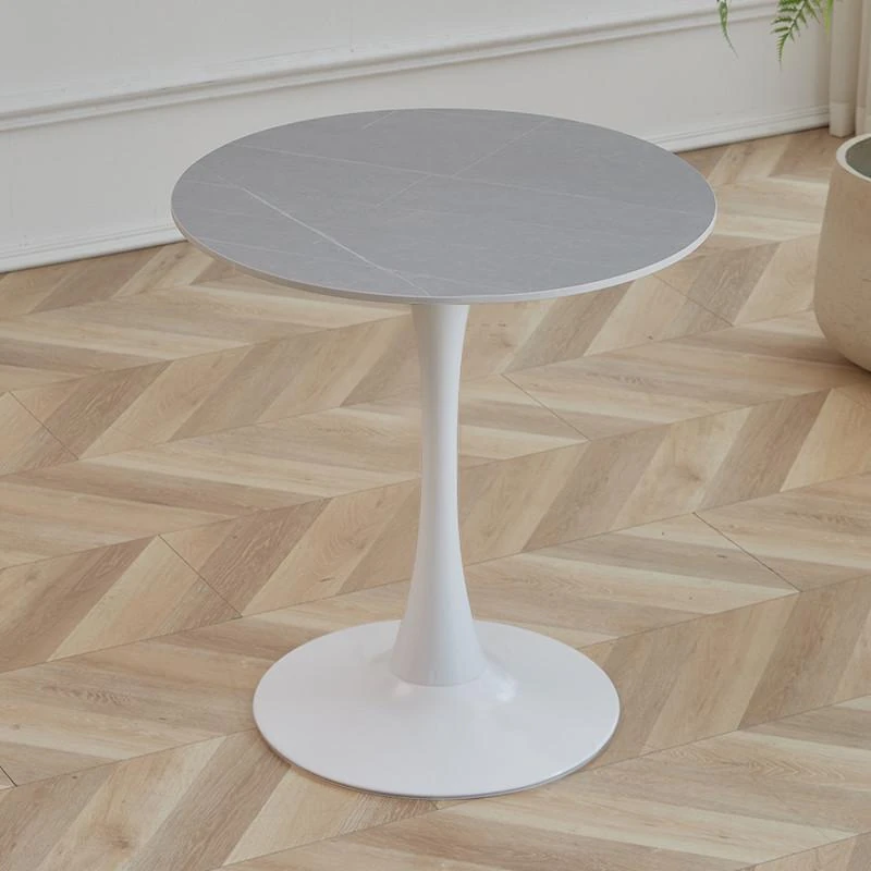 Diameter 27.56in Snow Mountain White Rock Board Desktop + White Base