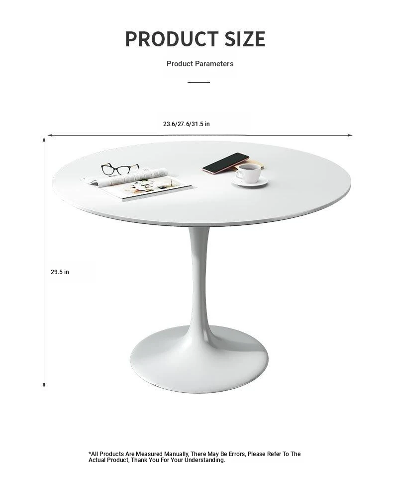 White round table with a diameter of 23.62in