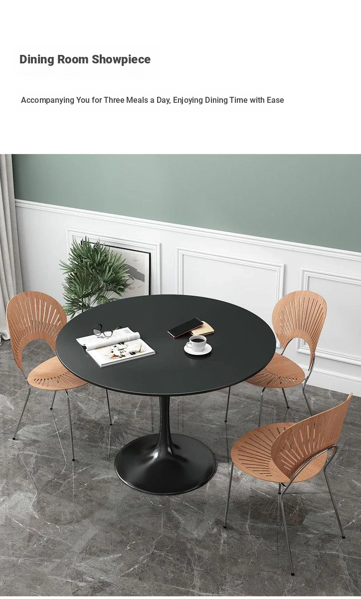 Diameter 27.56in Snow Mountain White Rock Board Desktop + Black Base