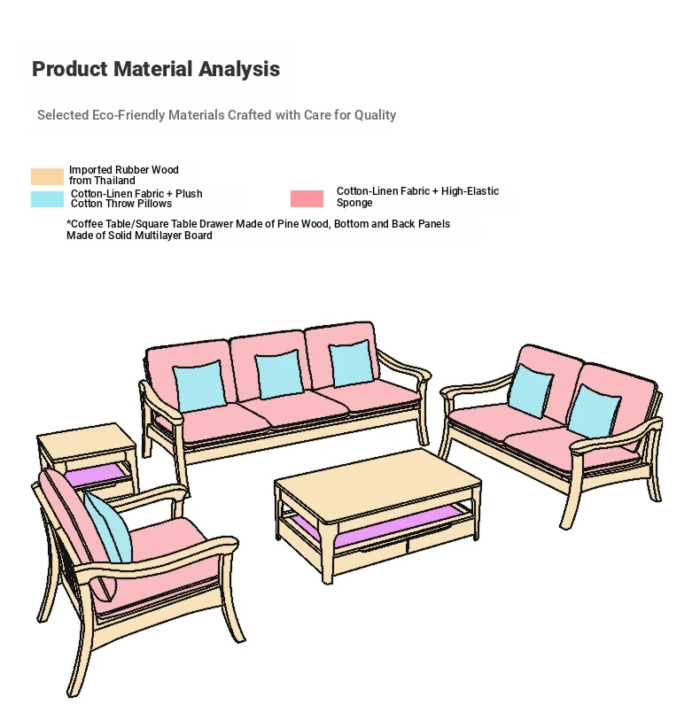 [Including cushion] 1+1+3 combination sofa + long tea table + square tea table