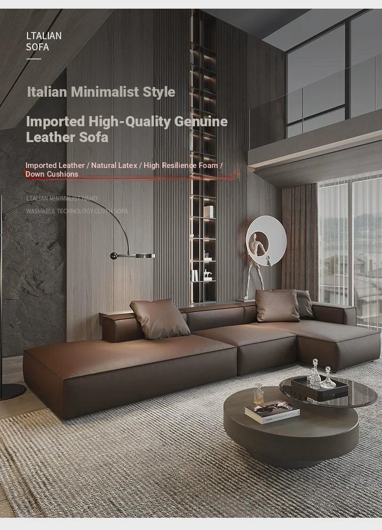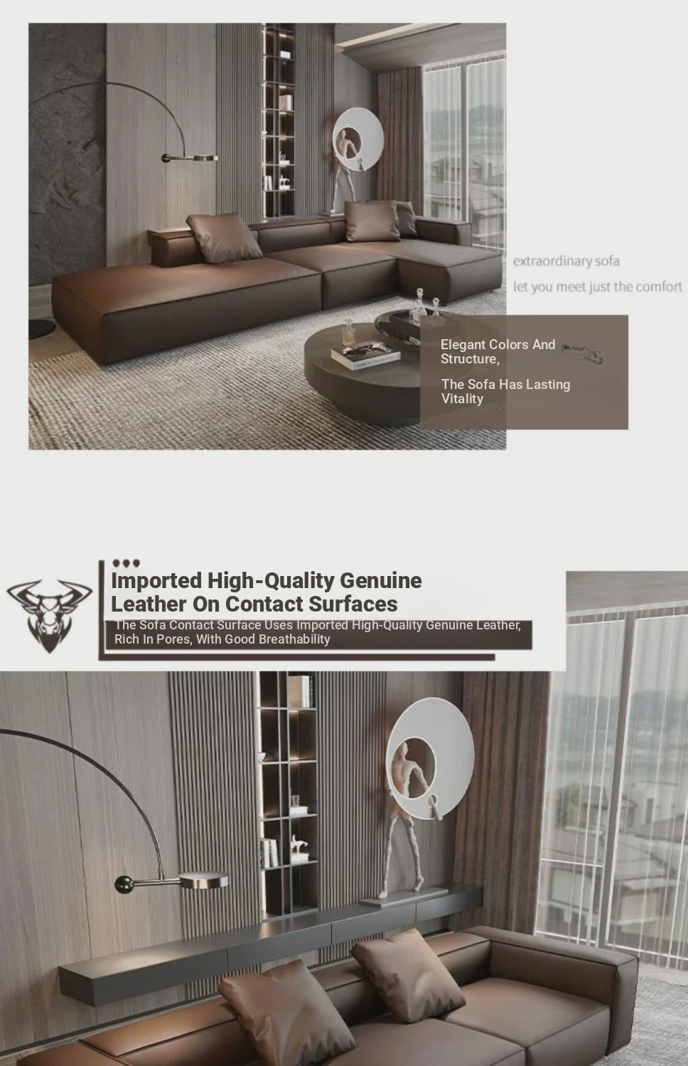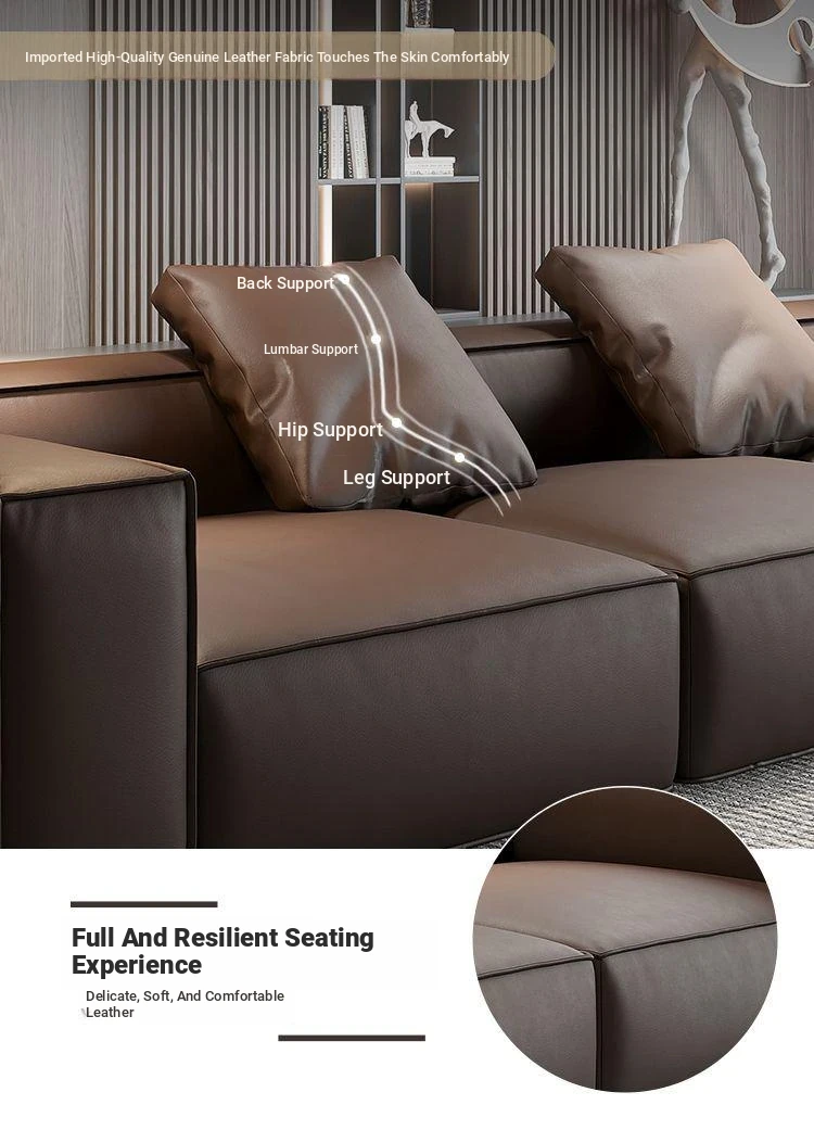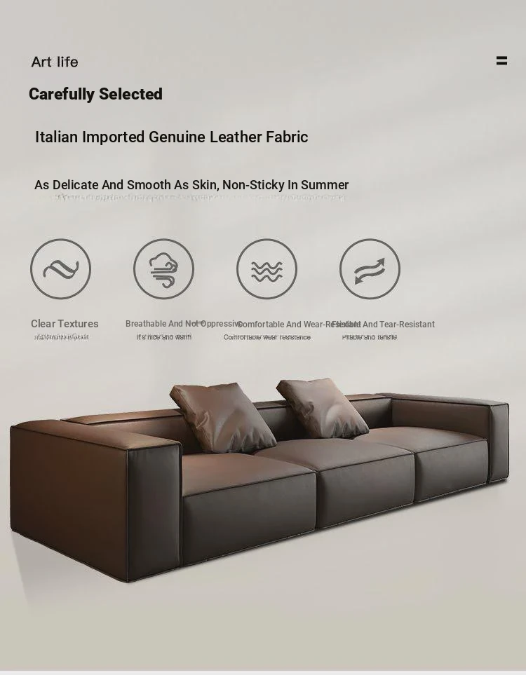 Official New Arrival Genuine Leather Sofa - Luxurious Top Grain Cowhide, Ideal for Living Rooms of All Sizes, Stylish Italian Minimalist Design for 3-4 Persons