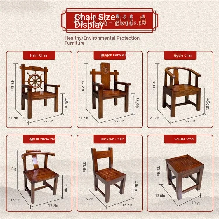 78.74 in chessboard tea table +4 backrest +1 carved dragon