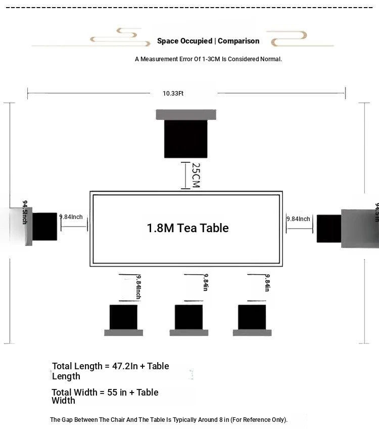 102.36 in chessboard tea table +6 backrest +1 rudder