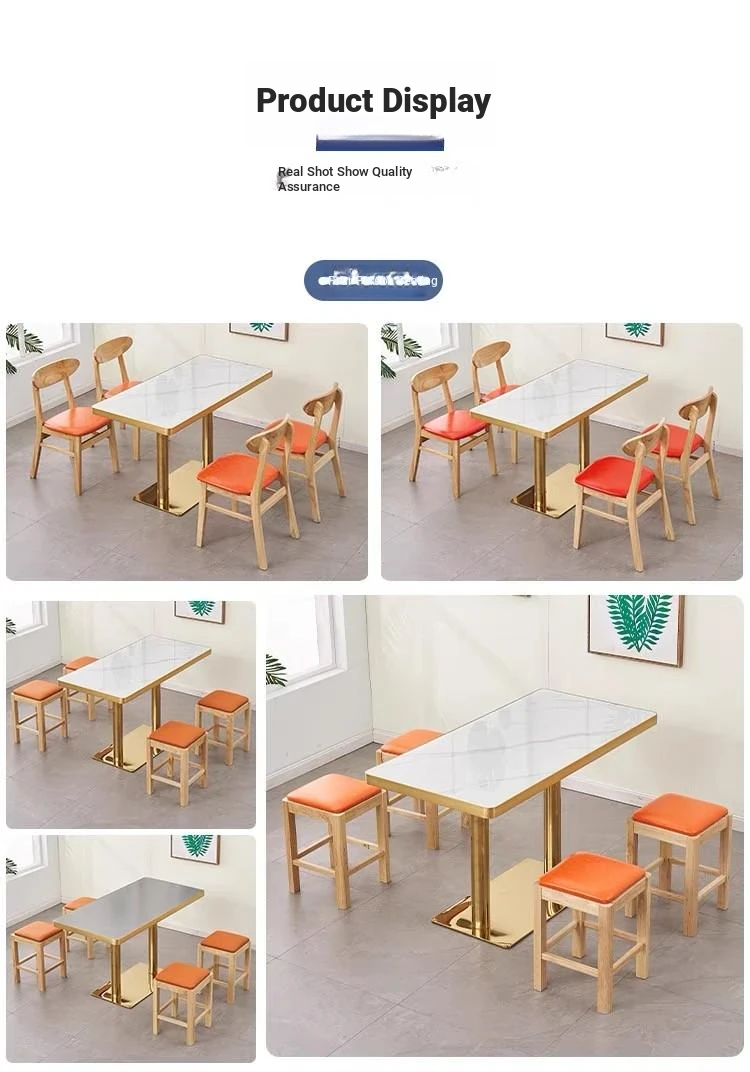 One Table and Four Chairs White Rock Board Desktop Solid Wood Stool Orange Pad