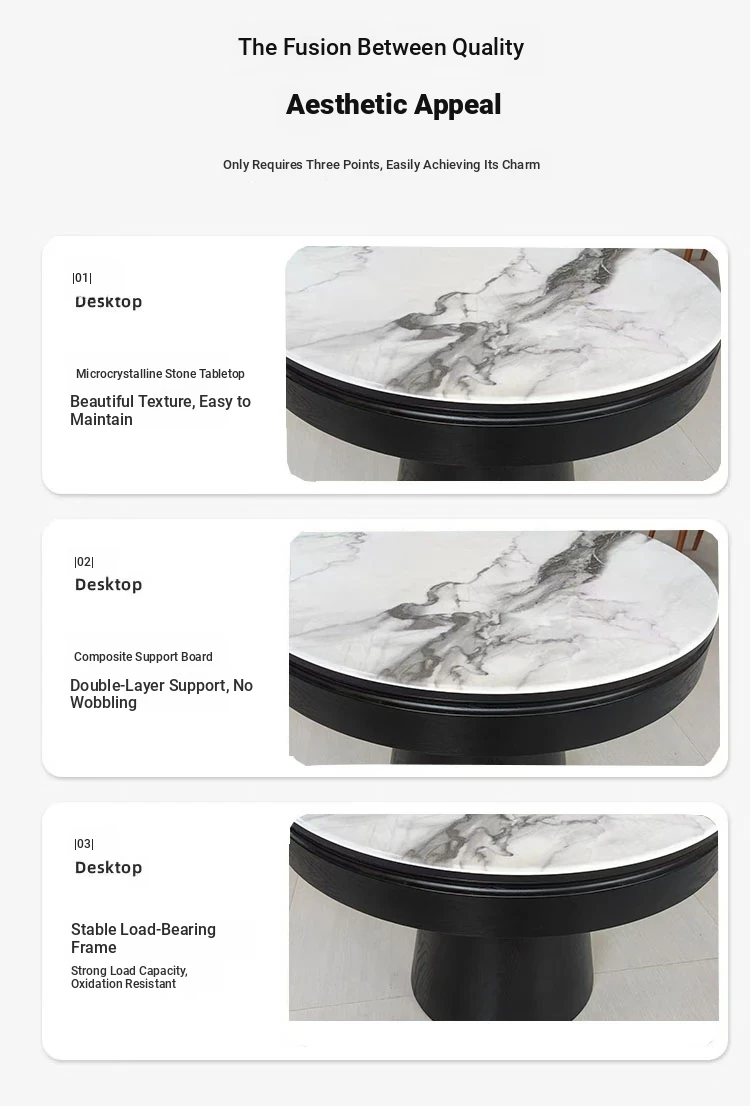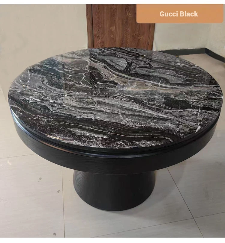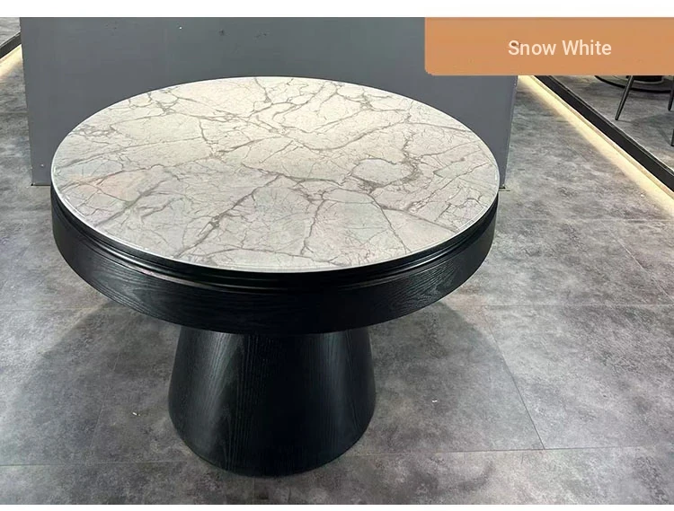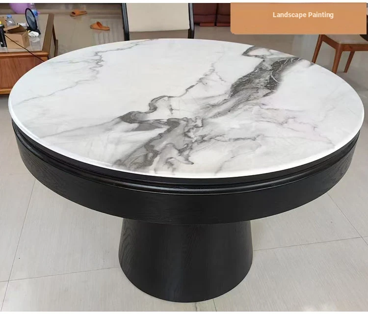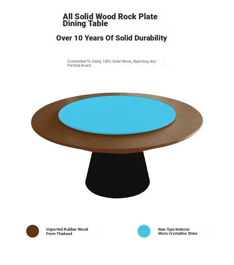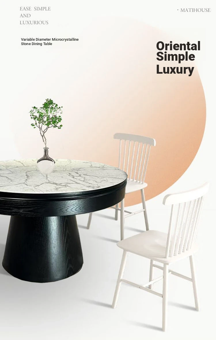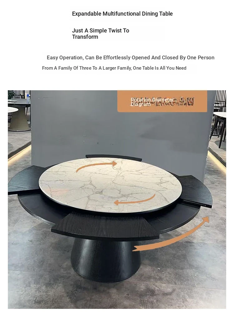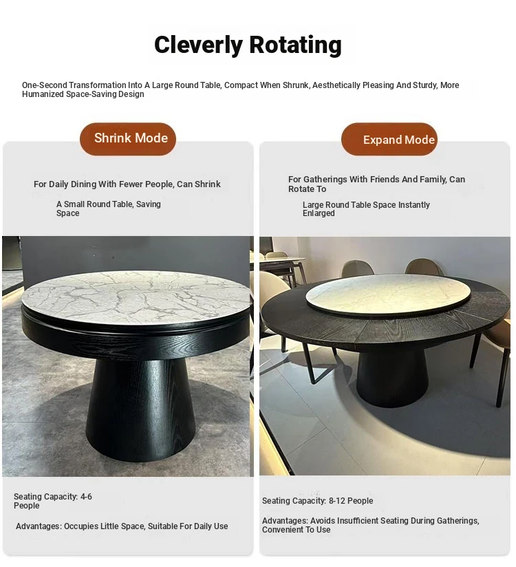 Stylish New Chinese Microcrystal Rotating Expandable Dining Table - Space-Saving Round Solid Wood Table with Turntable, Multi-Functional Adjustable Dining Experience