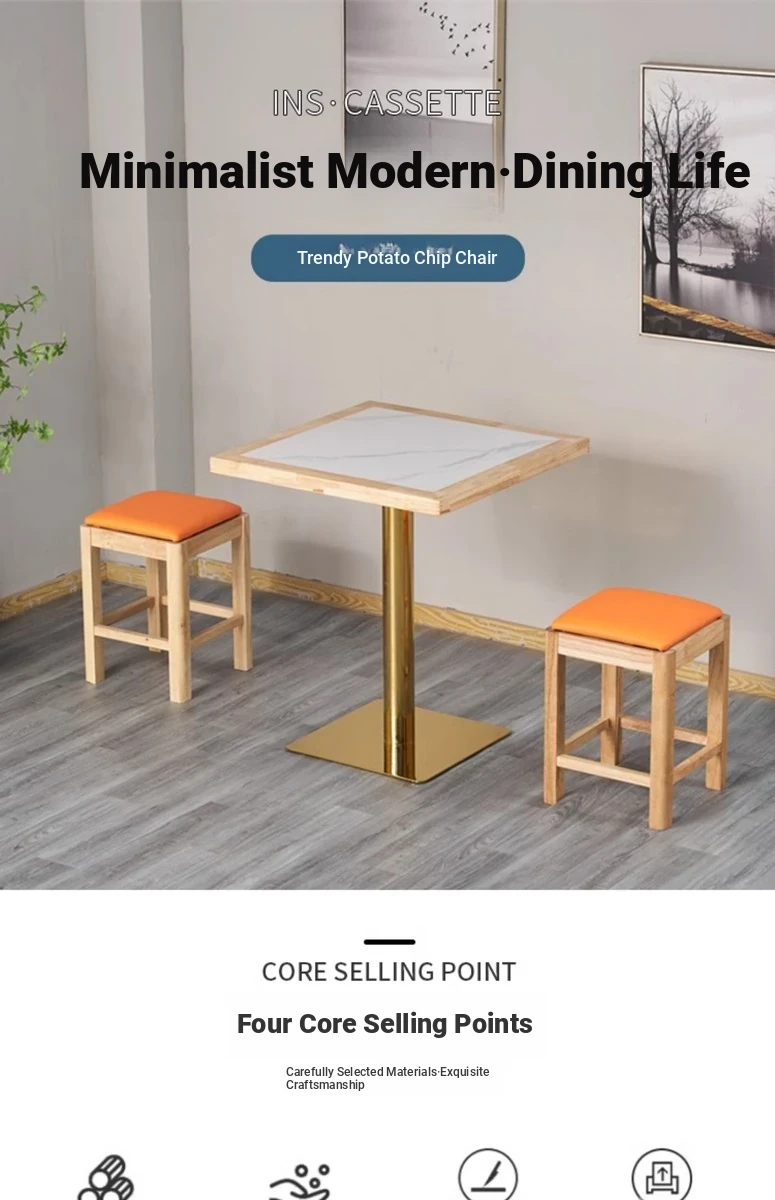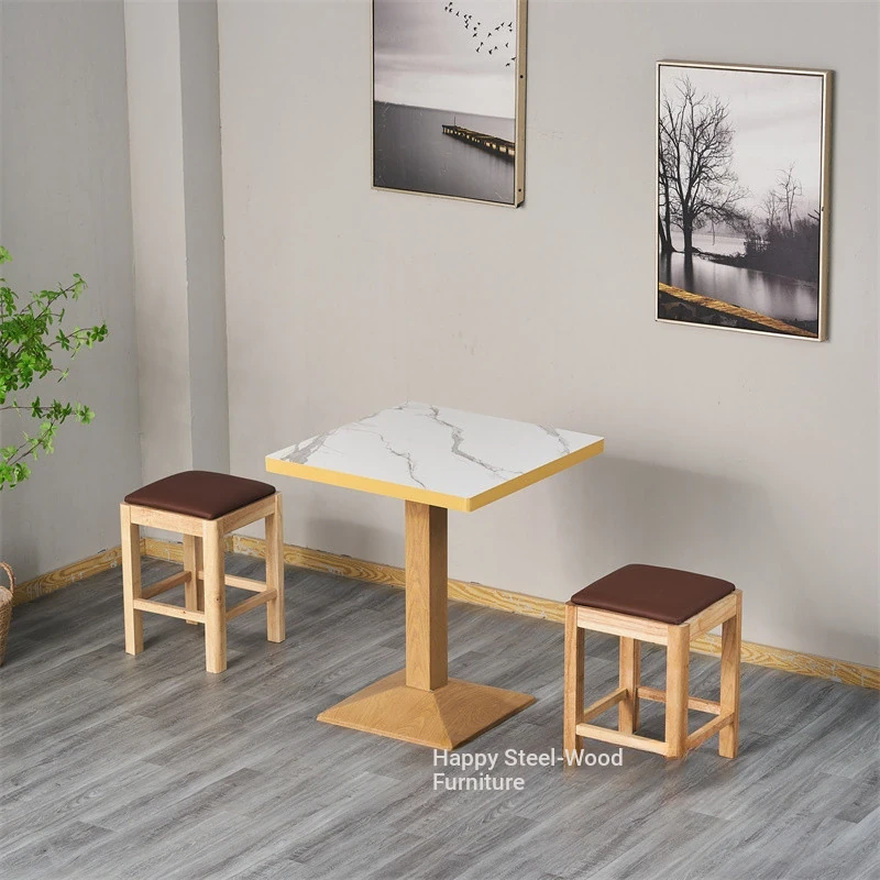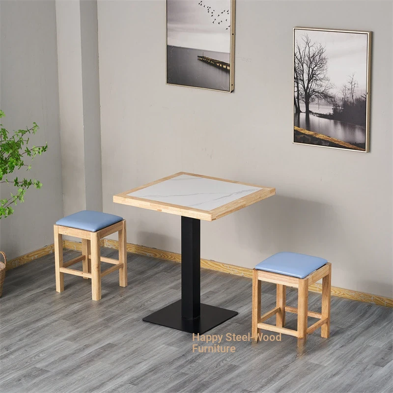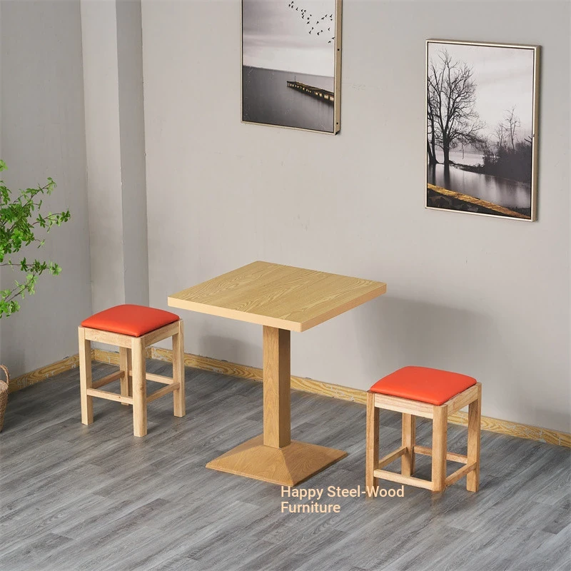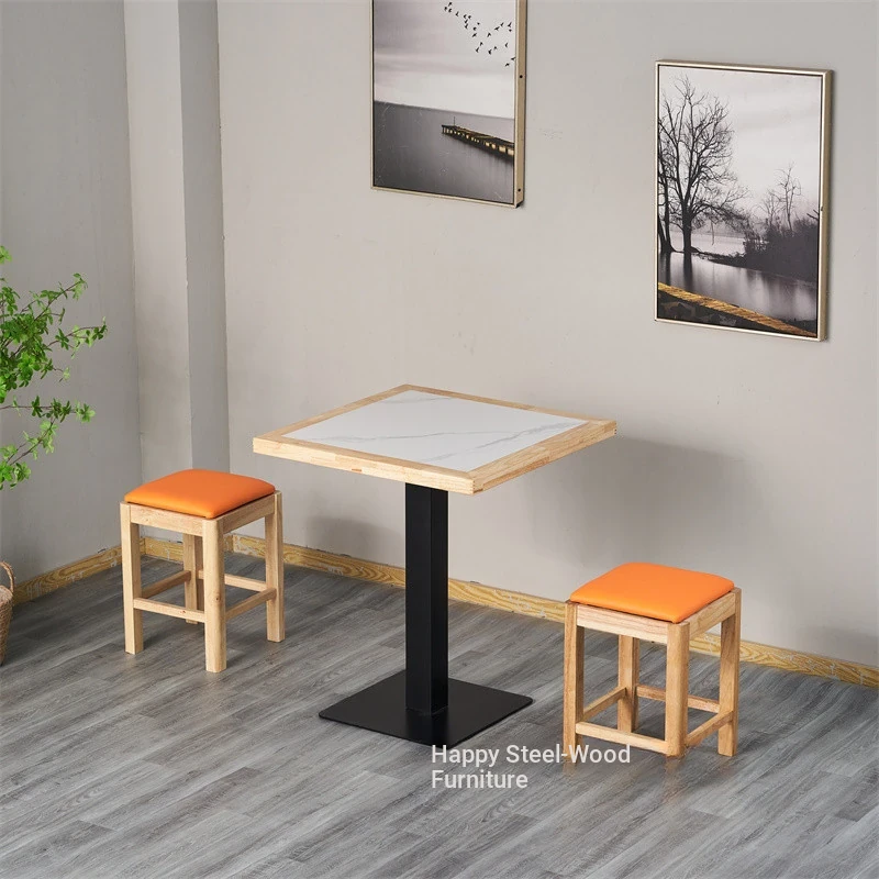 Trendy Spicy Hot Pot Fast Food Burger Sushi Dumpling Noodle Shop - Stylish Wooden Dining Table and Chair Set for Cozy Cafés and Tea Shops
