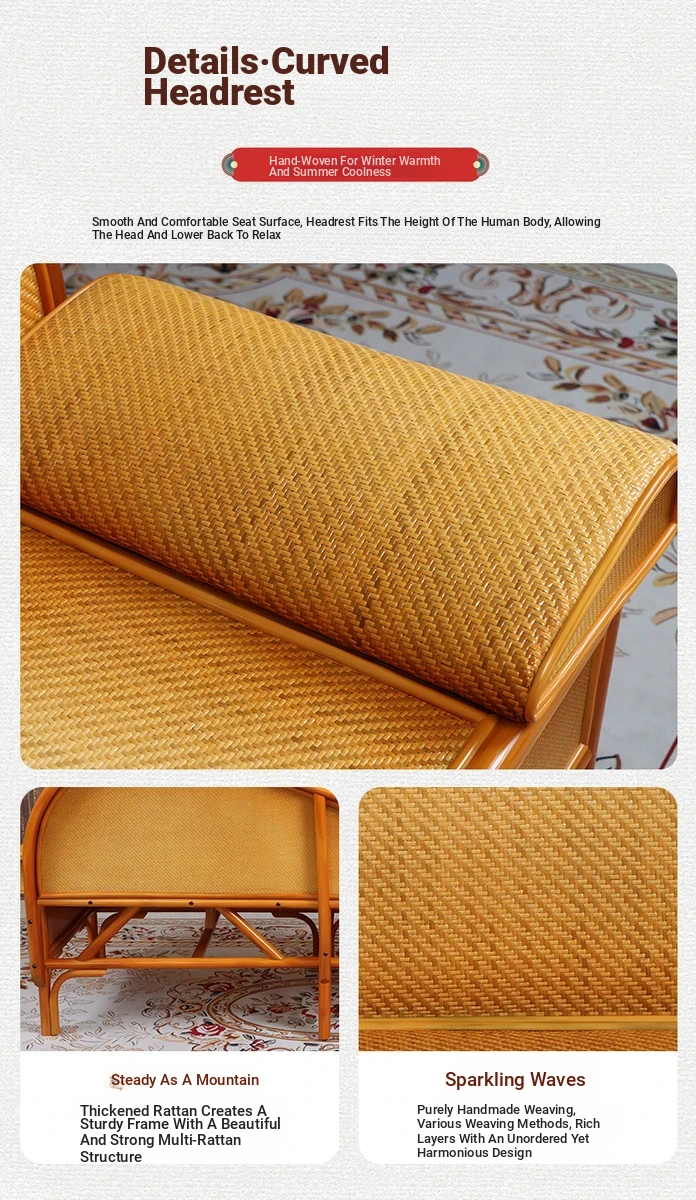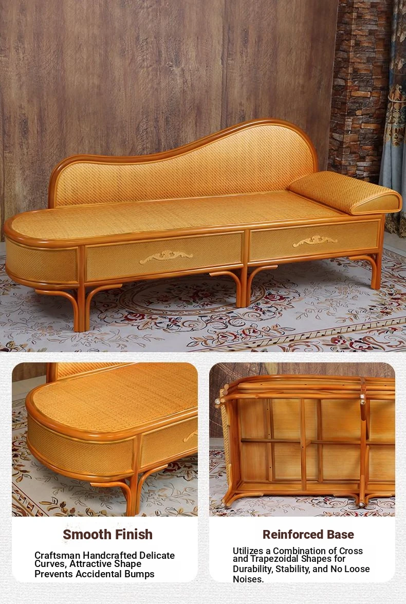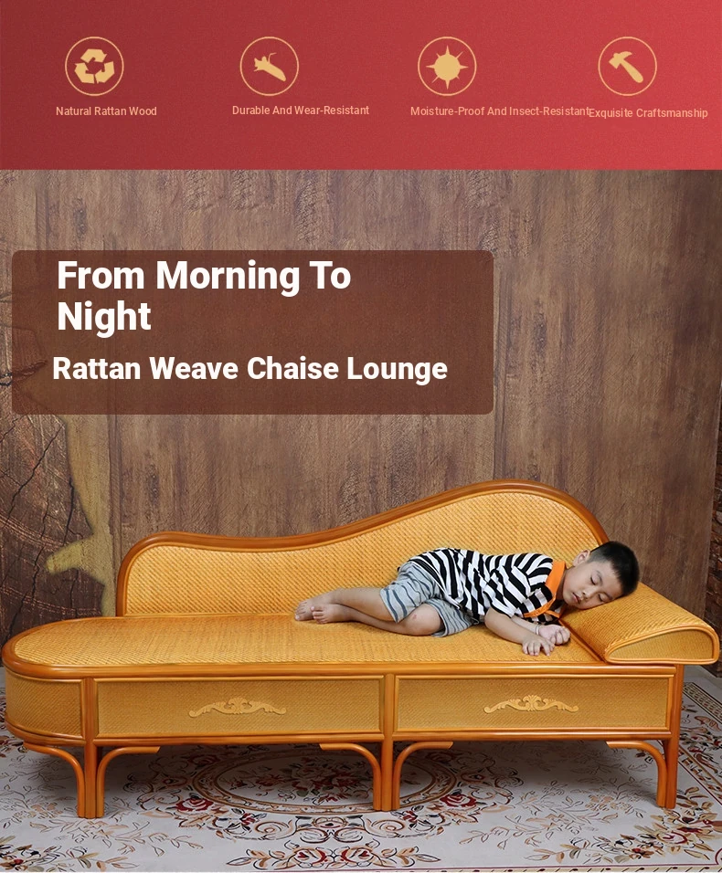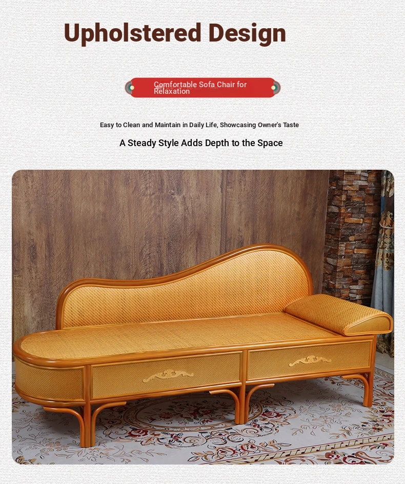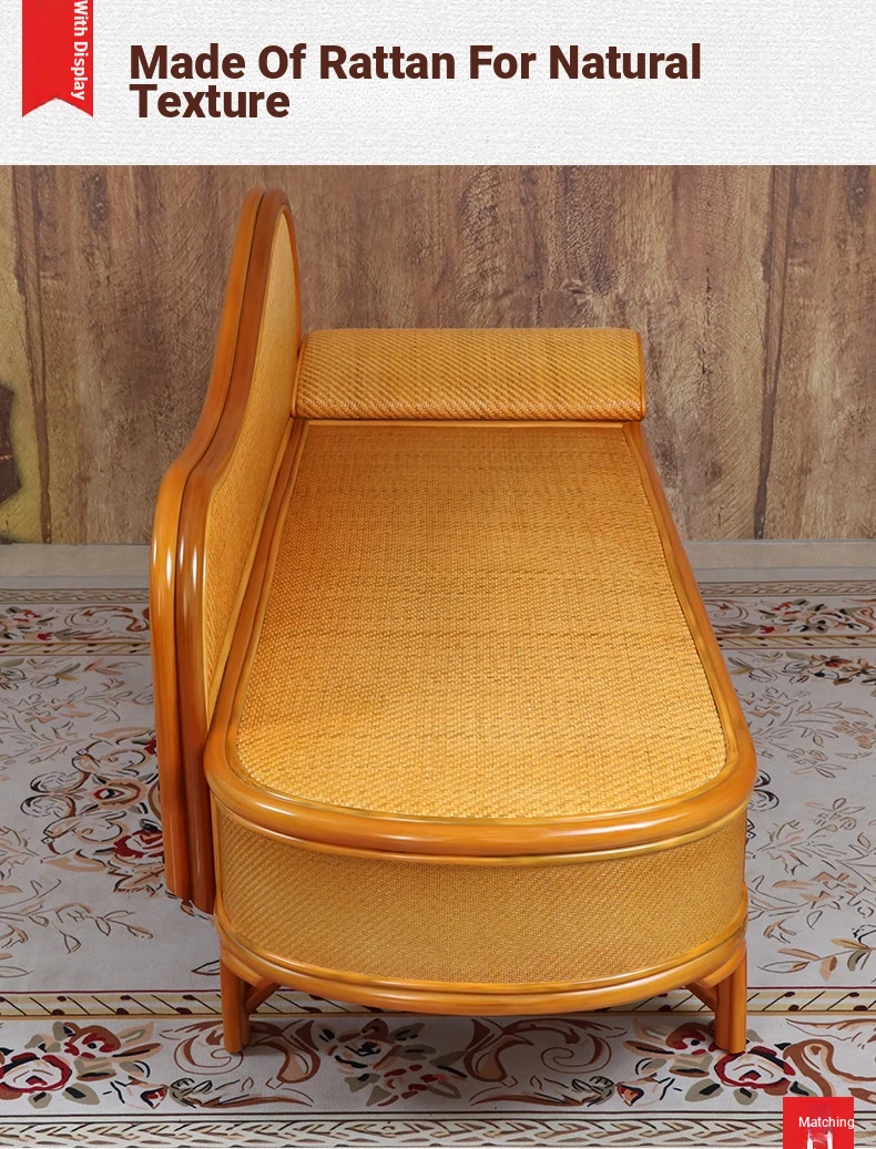 Wicker Rattan Chaise Lounge Chair - Stylish and Comfortable Daybed Sofa for Bedroom and Living Room, Perfect for Small Spaces, Elegant Design for Ultimate Relaxation